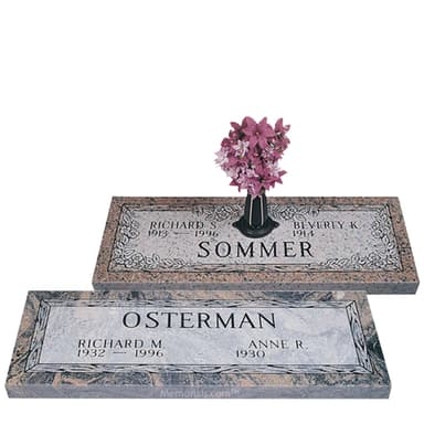 Memorials.com carries over 2,500 headstones and grave markers in bronze and granite โ one of the largest selections of gravestones available online. Choose from upright headstones, flat grave markers, slant gravestones, memorial benches, and mausoleums. Every grave stone is cemetery-approved, custom-designed to your specifications, and ships free with no hidden fees.