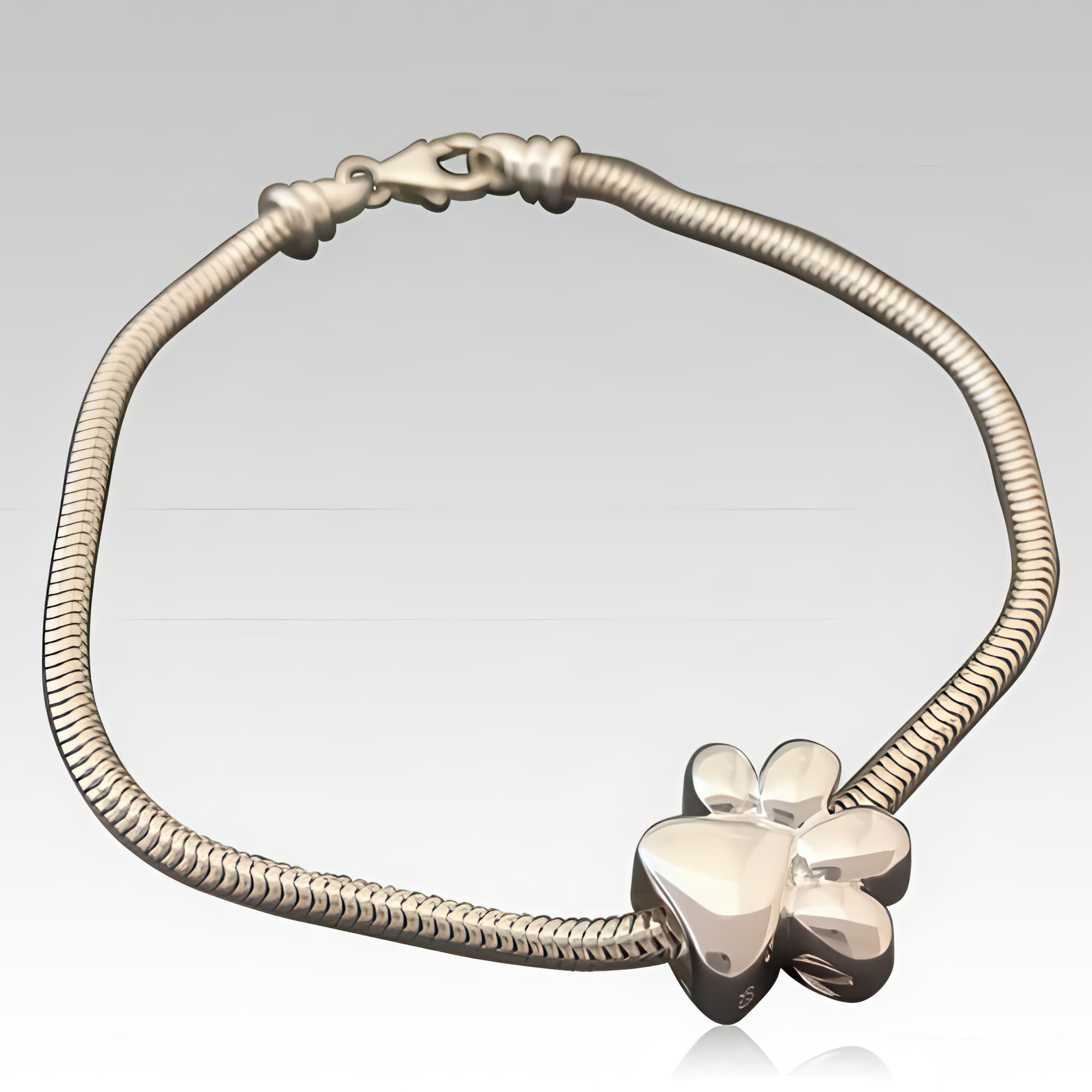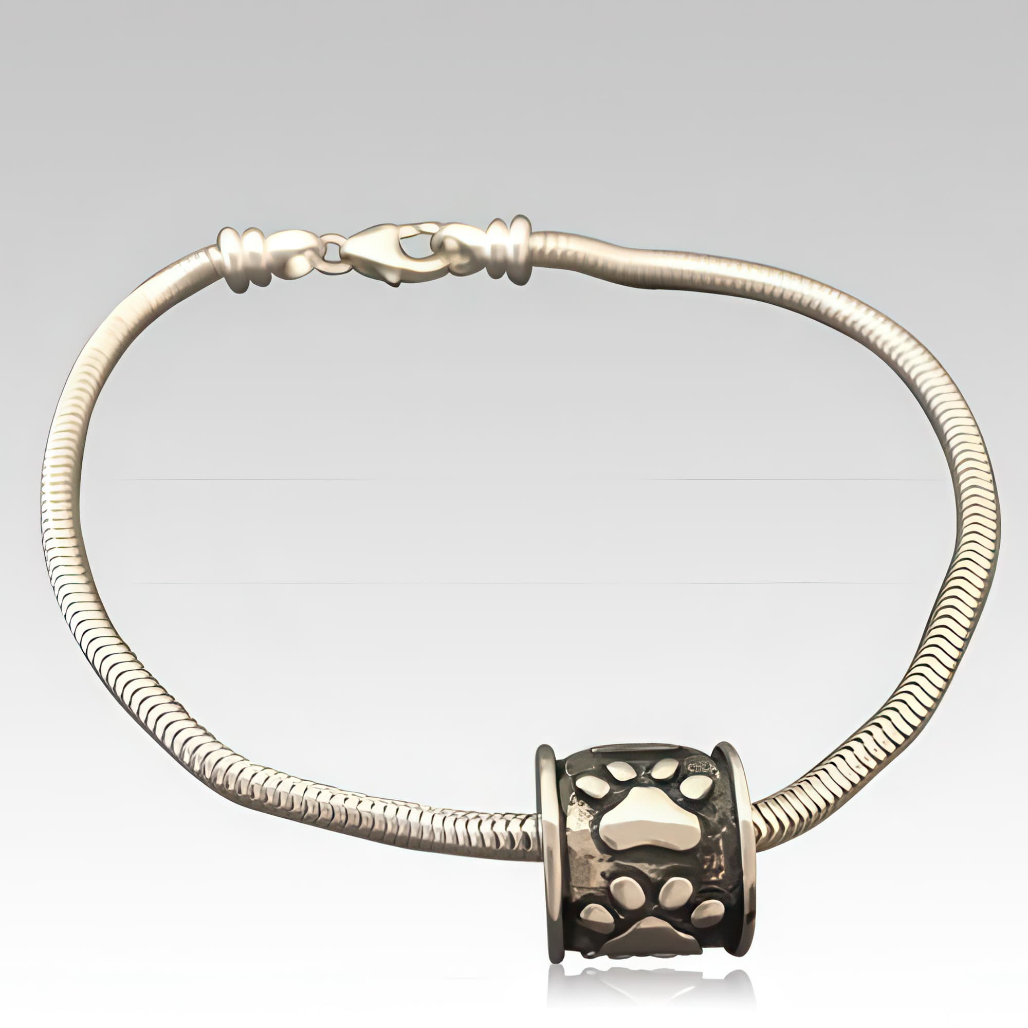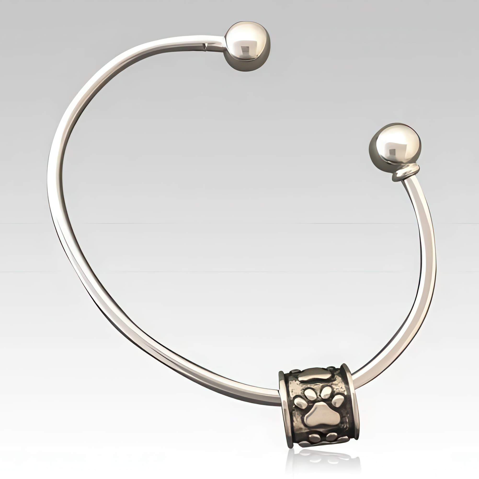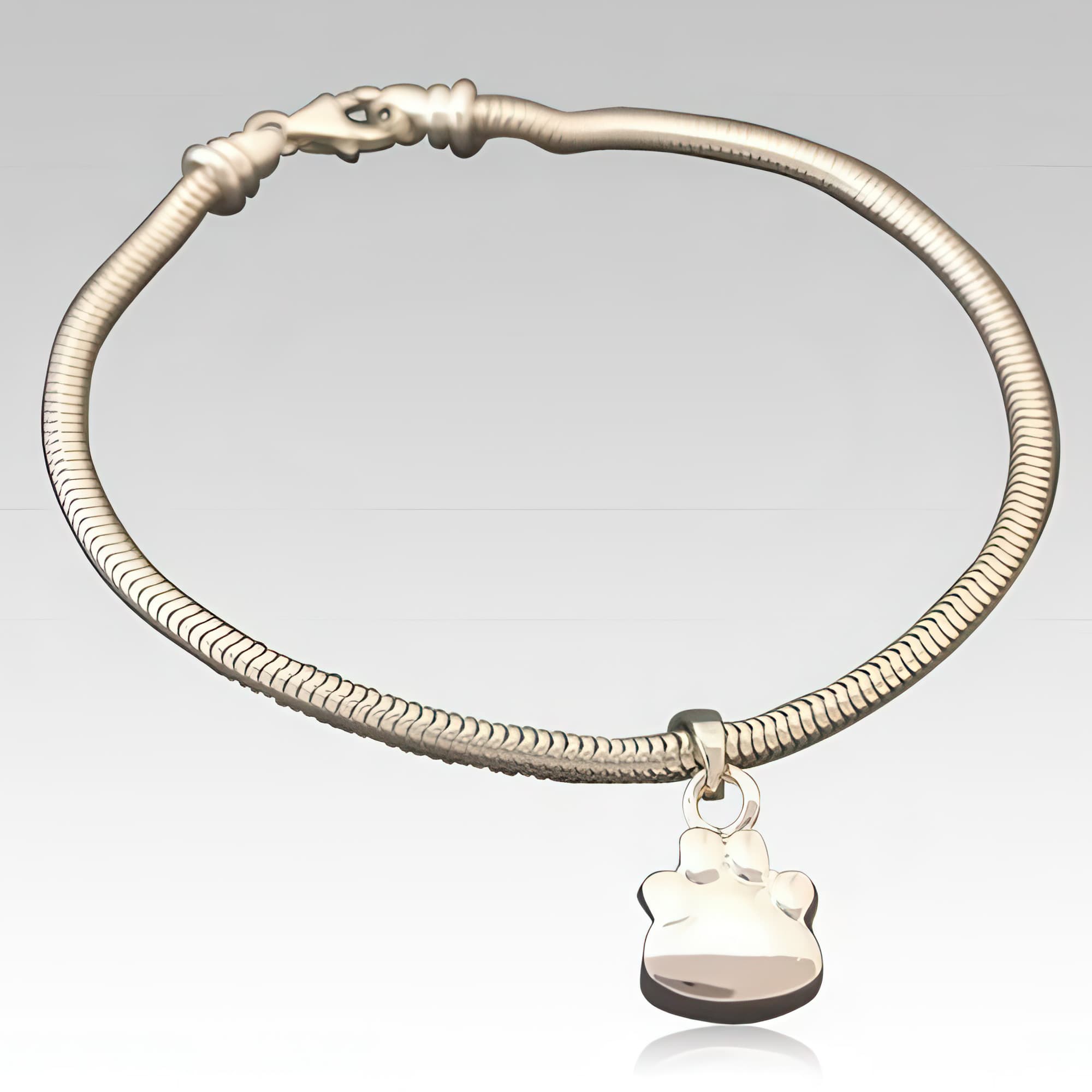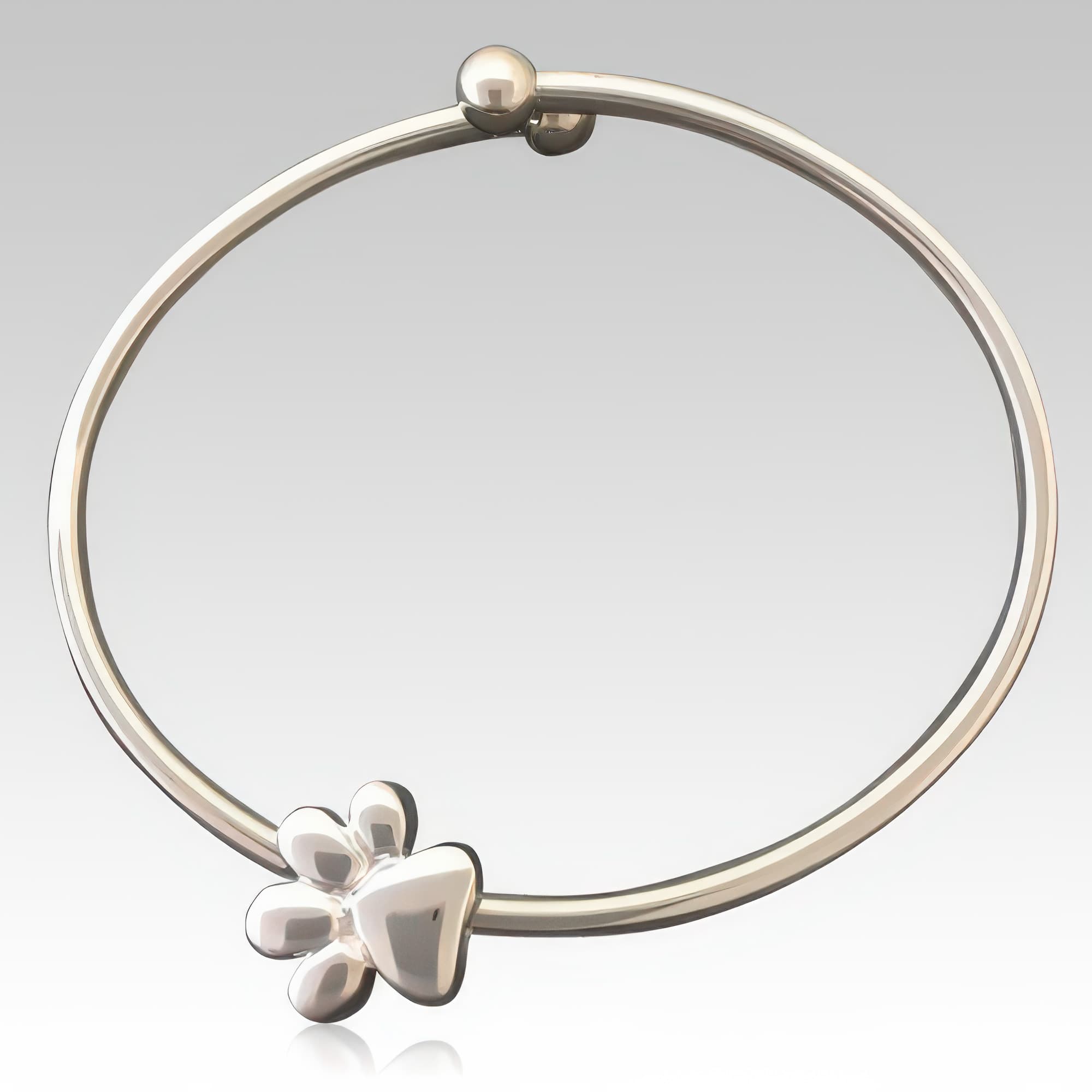 Memorials.com offers a curated selection of pet cremation bracelets designed to hold a small portion of your dog or cat's cremation ashes, a lock of fur, or dried flowers from a favorite resting spot. Each dog ashes bracelet features a discreet, threaded compartment and comes in sterling silver, stainless steel, and 14k gold. Whether you prefer a pet memorial jewelry bracelet with paw print detailing or a sleek bangle-style pet urn bracelet, every order ships free.
