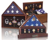 Our section with display flag case, called shadow boxes by veterans offers a selection of elegantly made tributes that will contain and protect the legacy of any fallen hero. For those who are in need of a casket, we offer elegant and durable caskets made of wood, metal, or steel, and even sustainable materials for natural burials or cremations.