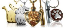 Our pet memorial sections include a collection of items that will help preserve the memory of any loyal companion. The pet urns section features categories, just like those for people, but the urns within feature whimsical and elegant themes to help preserve the happy memories the pet left behind. The pet casket section offers both durable and biodegradable pieces to provide a peaceful final resting place. The pet memorial jewelry offers a variety of designs to help capture the personality of any dog or cat and contain a small remembrance of them such as ashes or fur, so they will always be with us. The pet grave markers and memorials help ensure that the final tribute of a pet will be as long lasting as it is beautiful; and, just like for the human section, we also offer pet ceramic photos to capture any happy memory and preserve it for all eternity. The pet keepsakes offer a variety of ways to create a tribute to a pet to honor their memory.