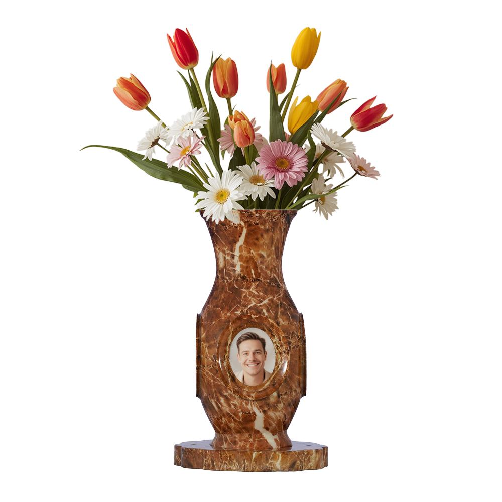 The Vase of Life Tabernas Luxury Cremation Urn is a unique urn and vase. The Vessel is made of high quality aluminum, and can hold 4 photos that can be changed out at any time. The vase and urn combo sits upon an attached Lazy Susan turn table, perfect to display in your home.