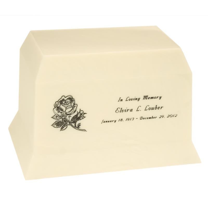 The A Rose for You Cremation Urn is made from cultured onyx material. The urn can be displayed at home or at the mausoleum. This cremation urn is made for burial as well and can be used as an urn vault for the cemetery or any other place. Create a peaceful resting place for eternity.