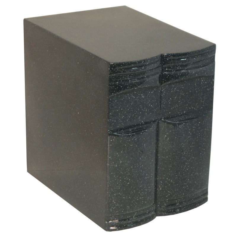 The Book of Darkness Companion Cremation Urn is made from cultured granite material. The urn can be displayed at home or at the mausoleum. This cremation urn is made for burial as well and can be used as an urn vault for the cemetery or any other place. This urn featured two sperate compartments but with or without interior wall. Create a peaceful resting place for eternity.