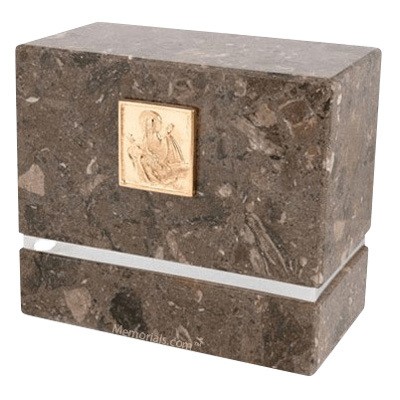 The La Nostra Brown Silver Companion Cremation Urn For Two is assembled from real natural quarried stone (dark brown Marble ). The urn features a stainless steel trim. The bottom has felt to protect the surface were the urn stands. A wonderful natural stone urn which will unite your love forever and ever. The Urn is a companion urn which means an urn for two people.