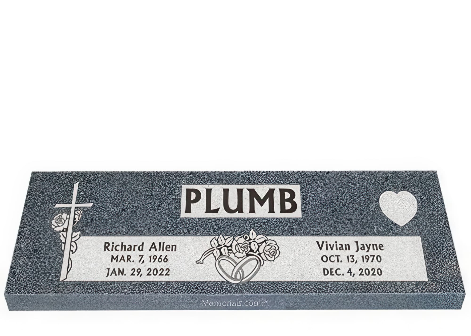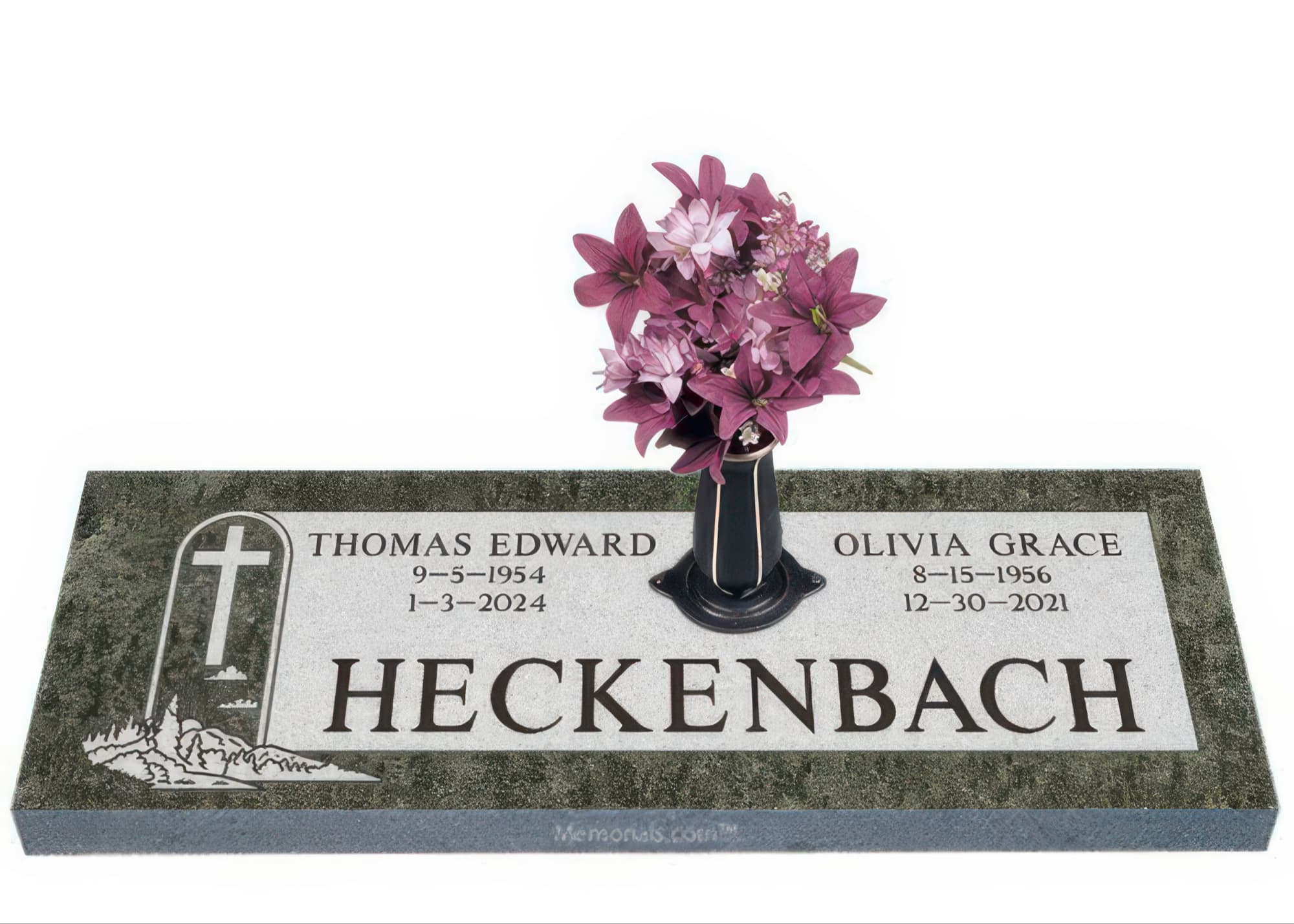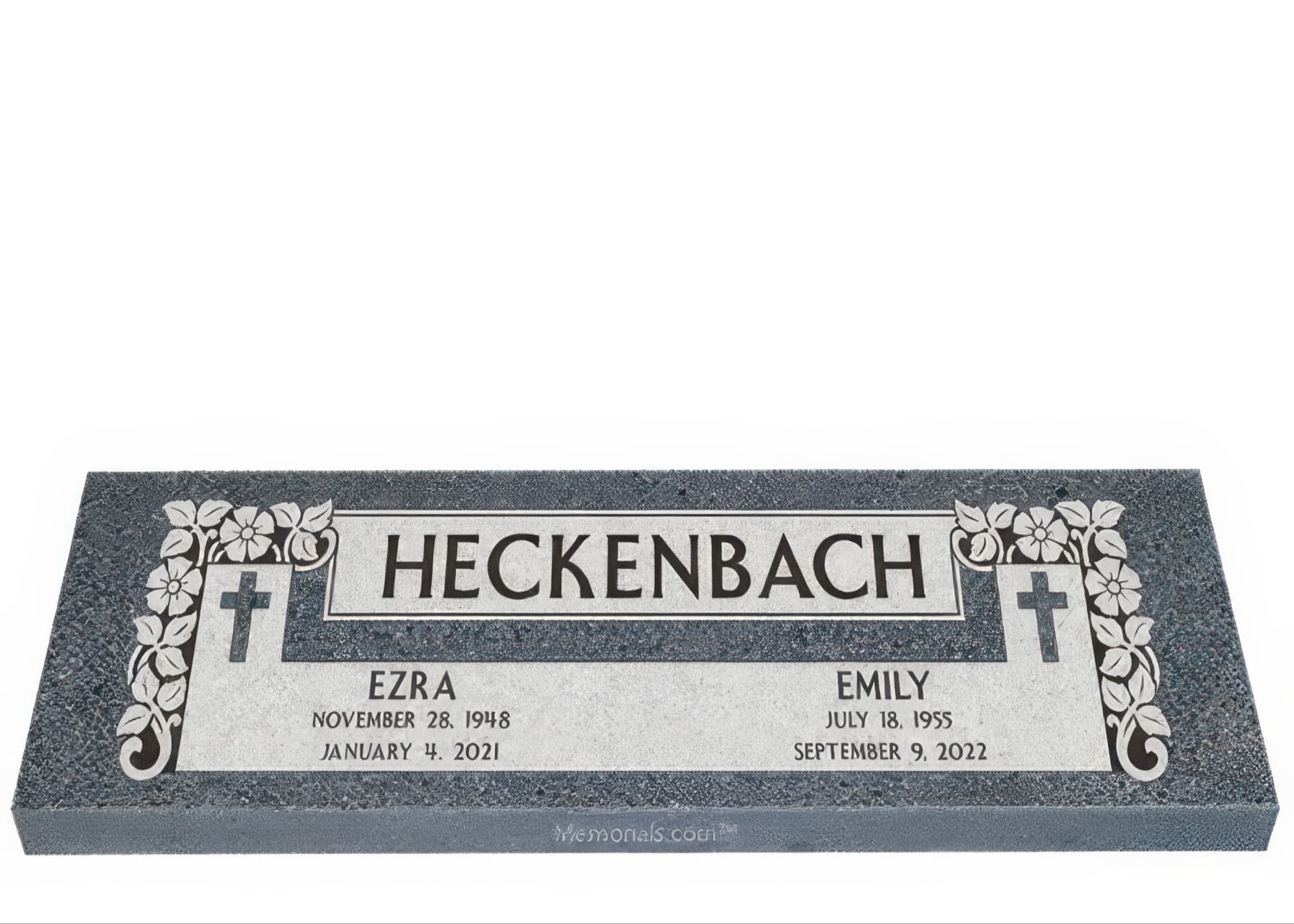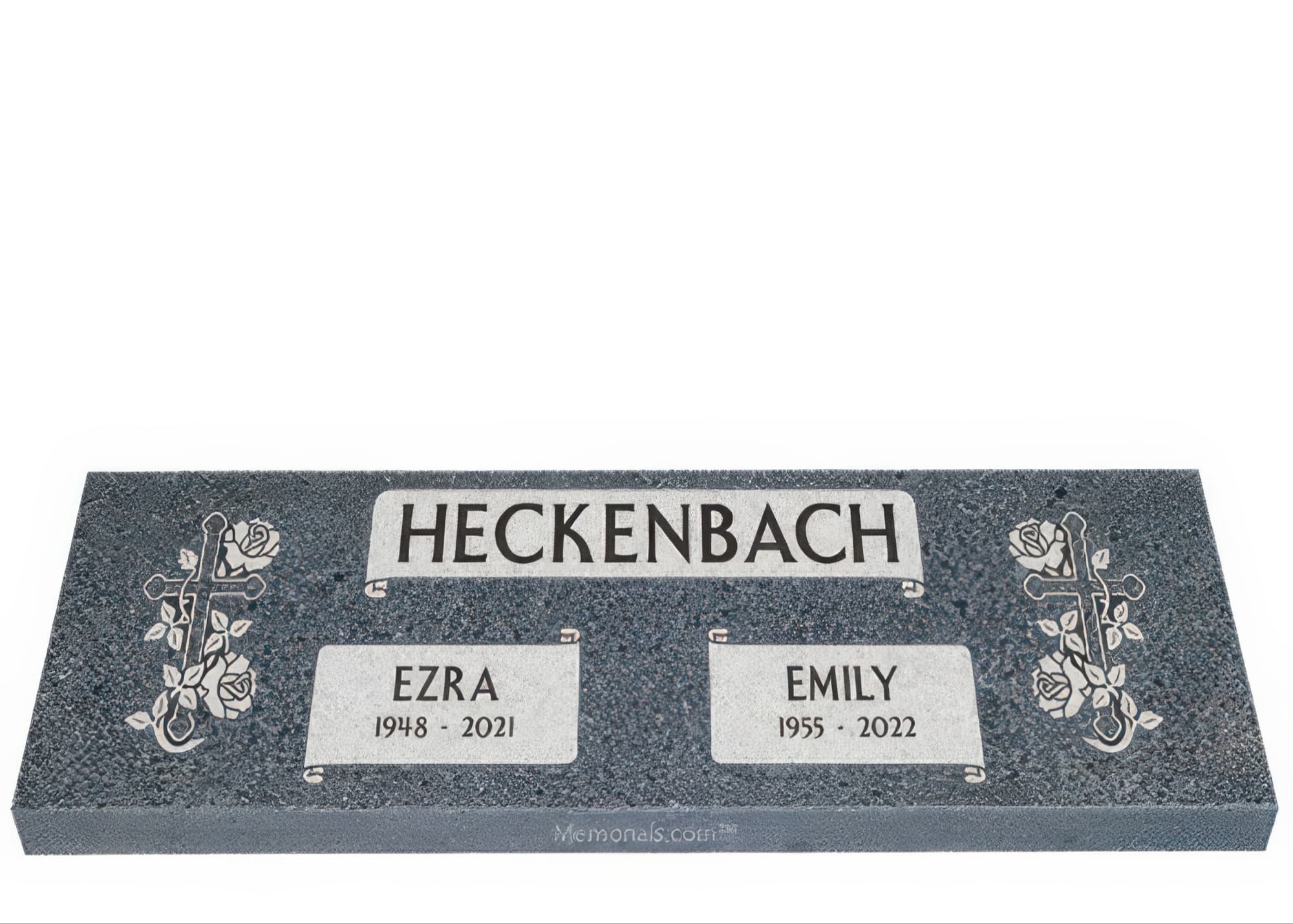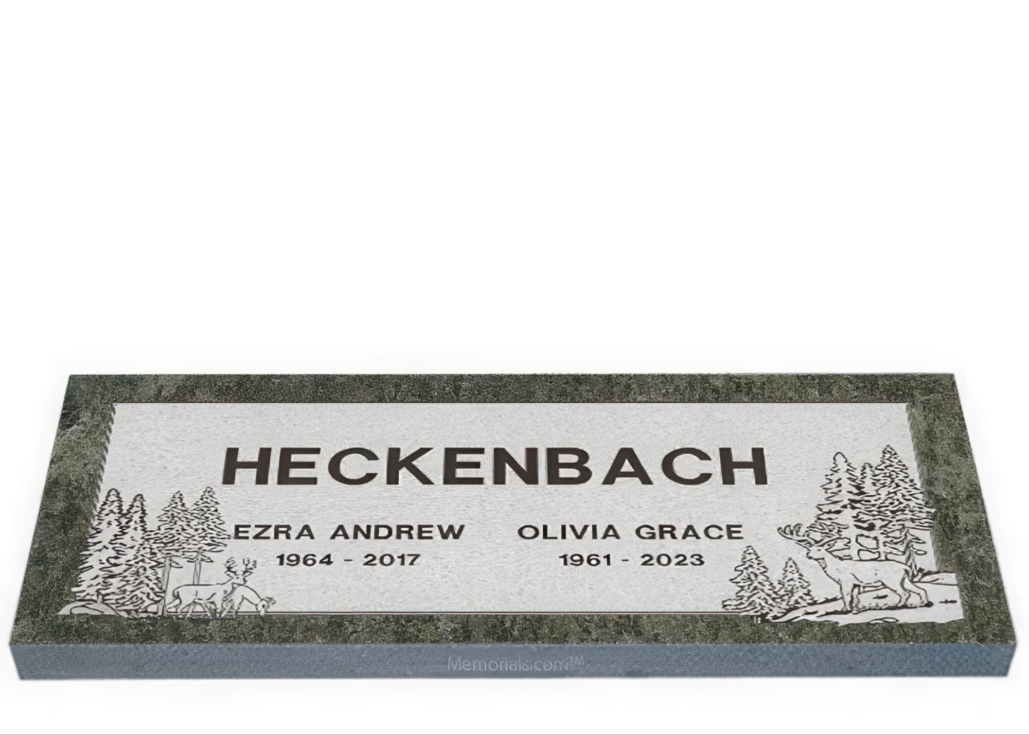 Memorials.com offers a wide selection of double headstones for husband and wife, crafted in natural granite and shipped directly to your cemetery. Our companion headstones for married couples feature custom engravings, emblems, and a choice of eight granite colors. Whether you need flat grave markers for couples or unique husband and wife headstones with themed designs like deer, celtic crosses, or tree of life motifs, we verify every order with your cemetery before production begins. Free shipping on all orders.