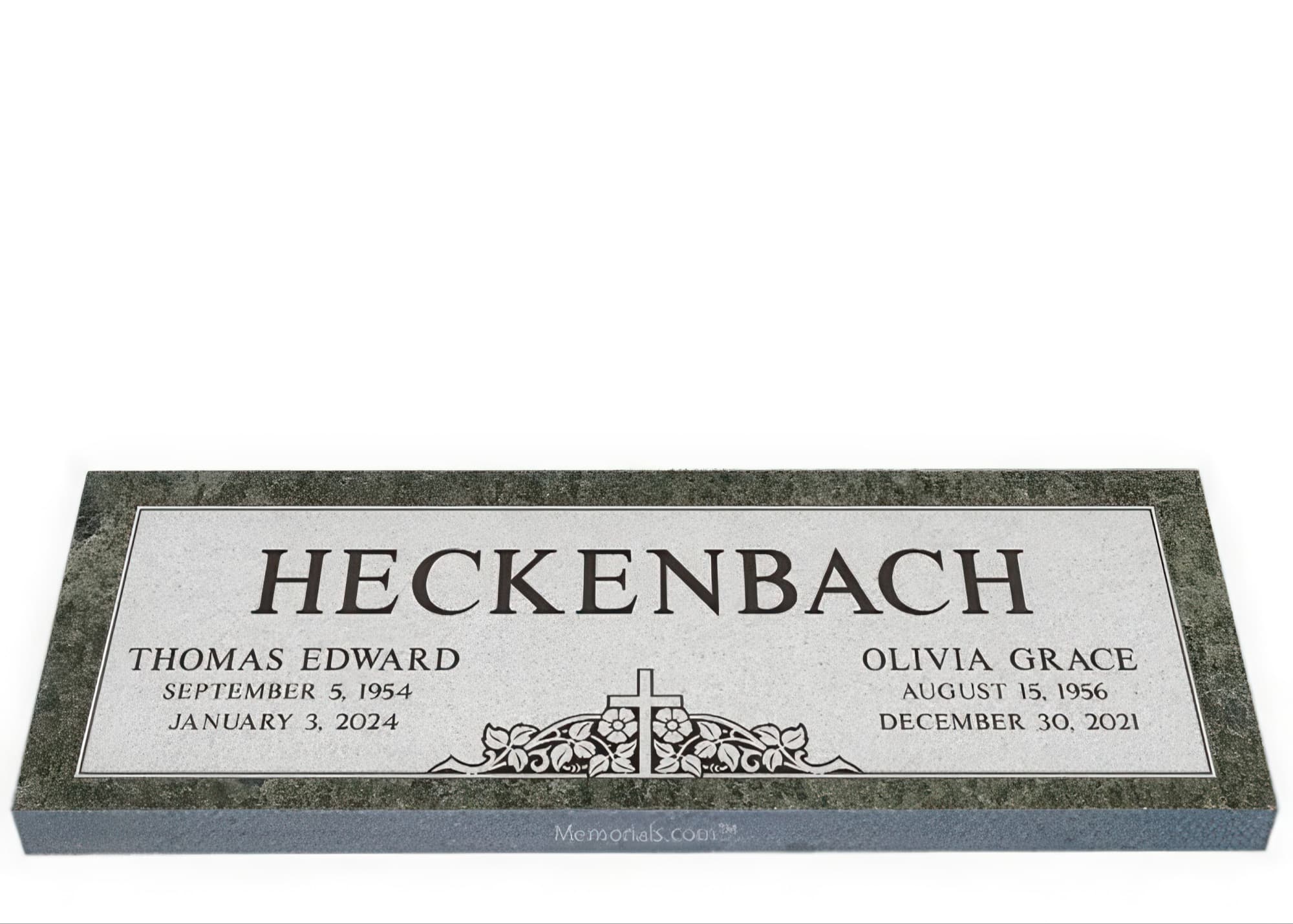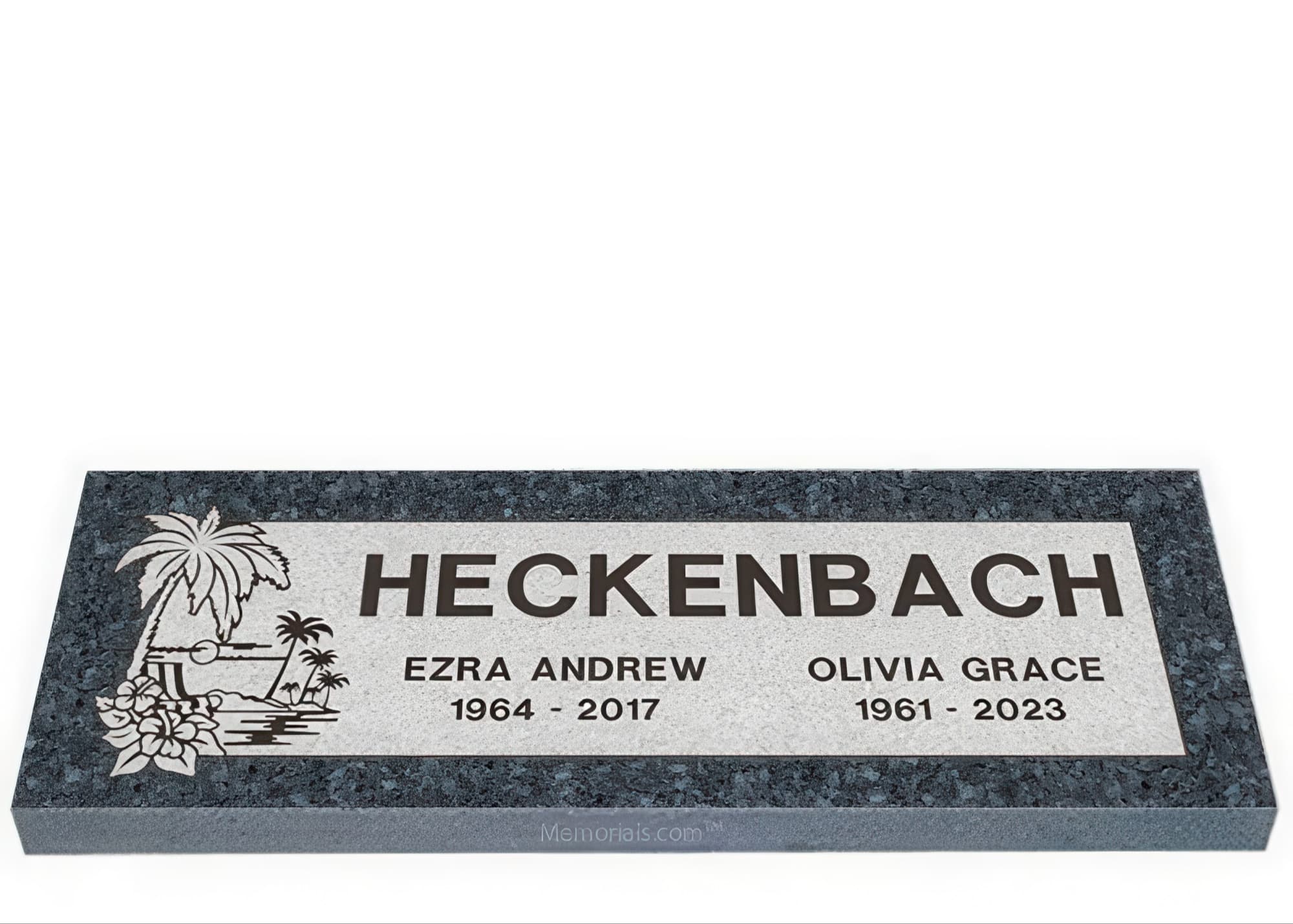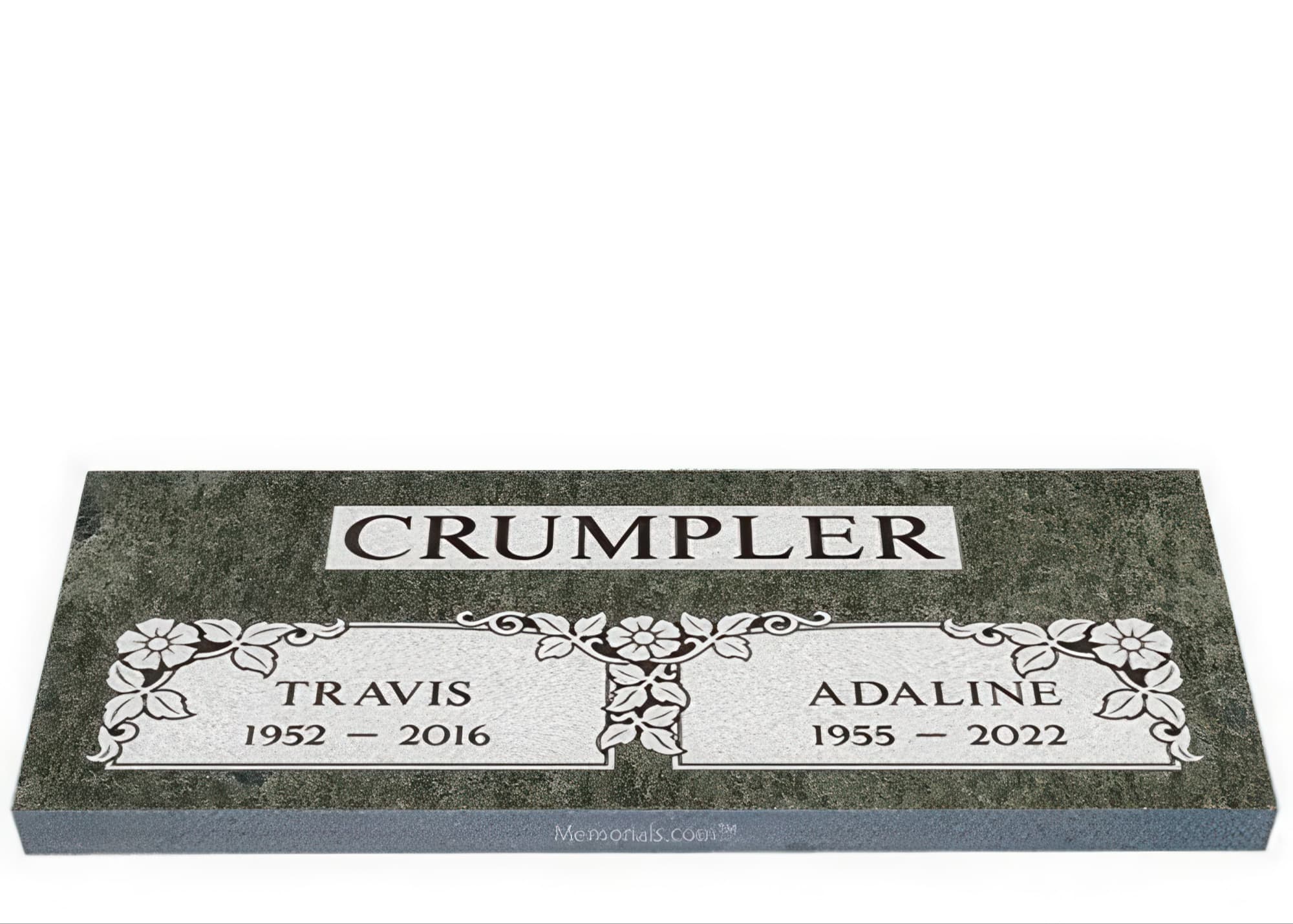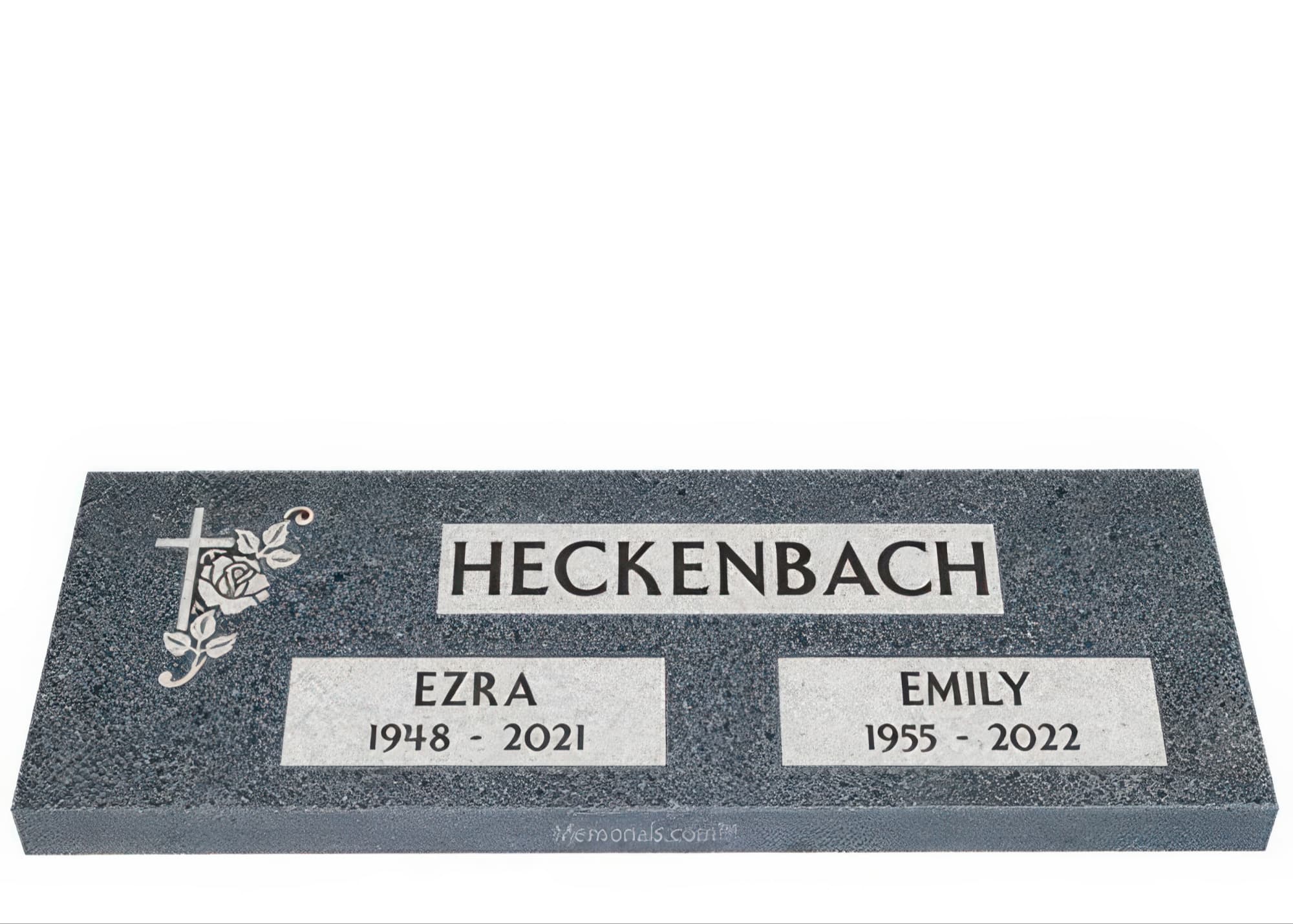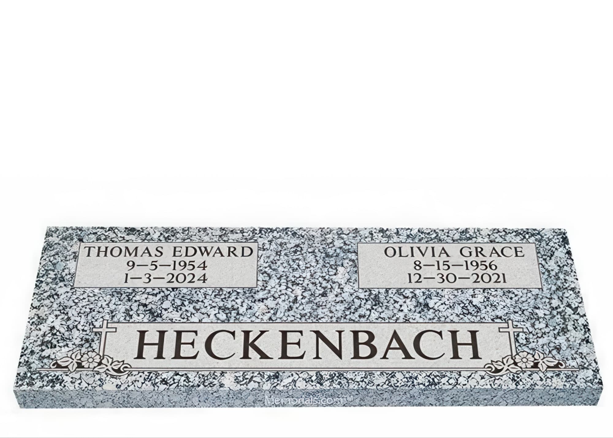Memorials.com offers a wide selection of double headstones for husband and wife, crafted in natural granite and shipped directly to your cemetery. Our companion headstones for married couples feature custom engravings, emblems, and a choice of eight granite colors. Whether you need flat grave markers for couples or unique husband and wife headstones with themed designs like deer, celtic crosses, or tree of life motifs, we verify every order with your cemetery before production begins. Free shipping on all orders.