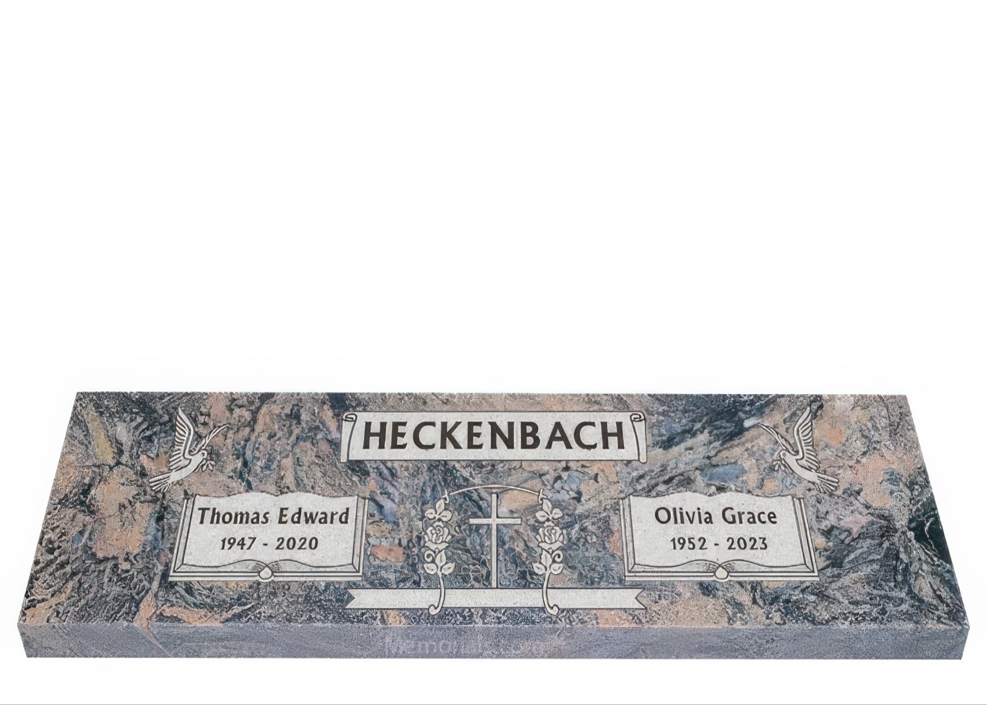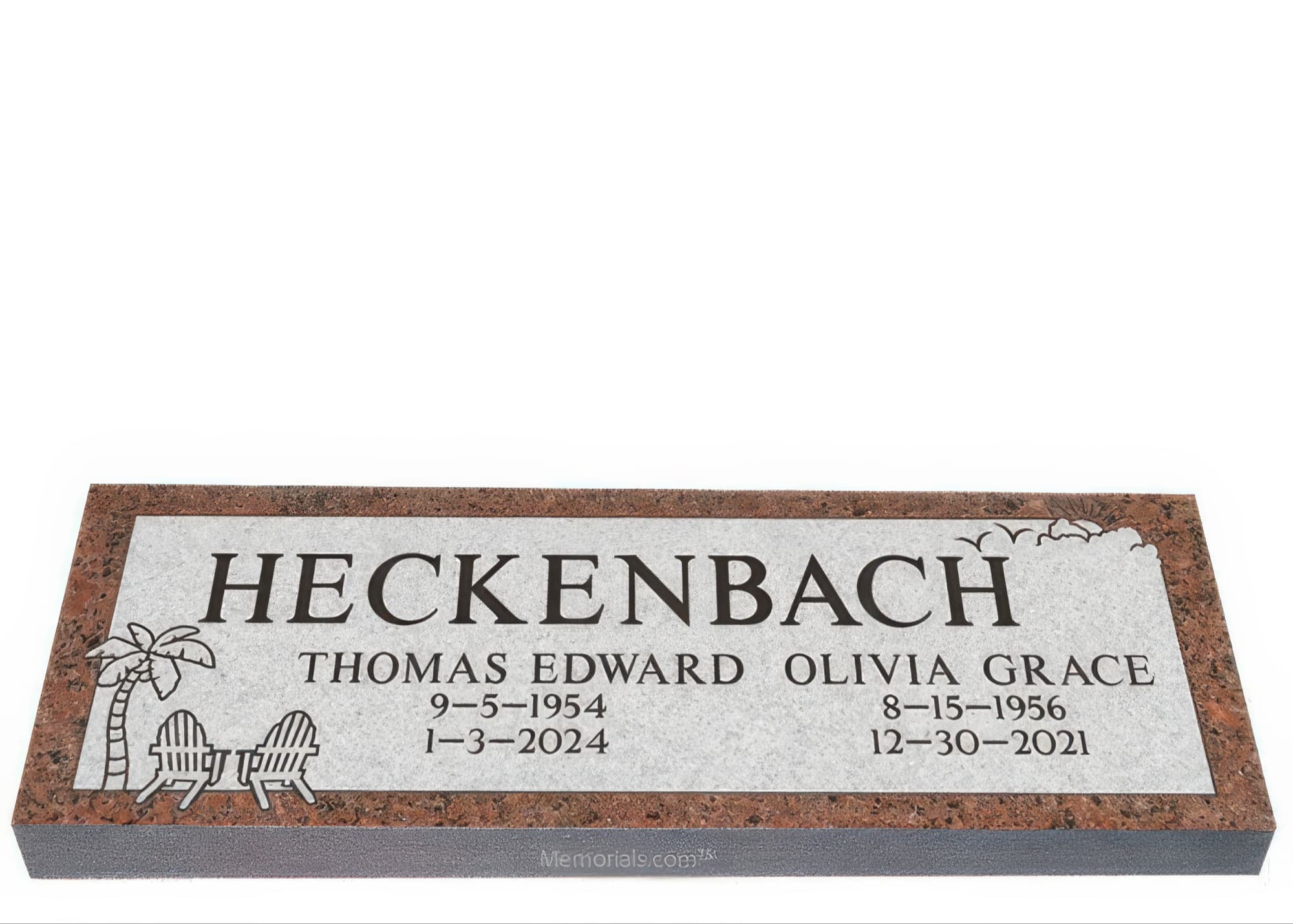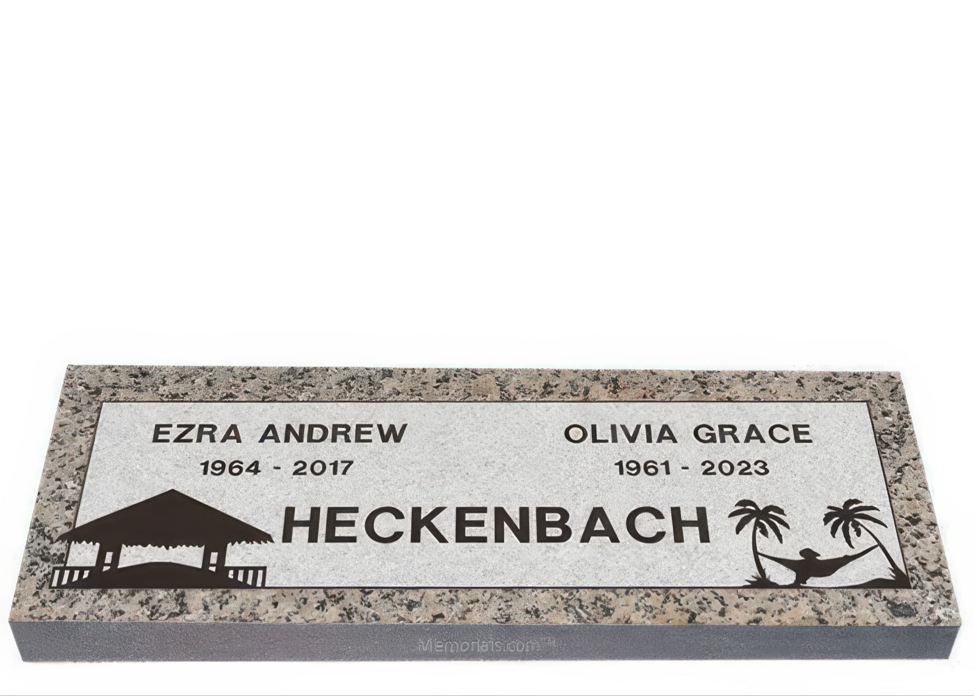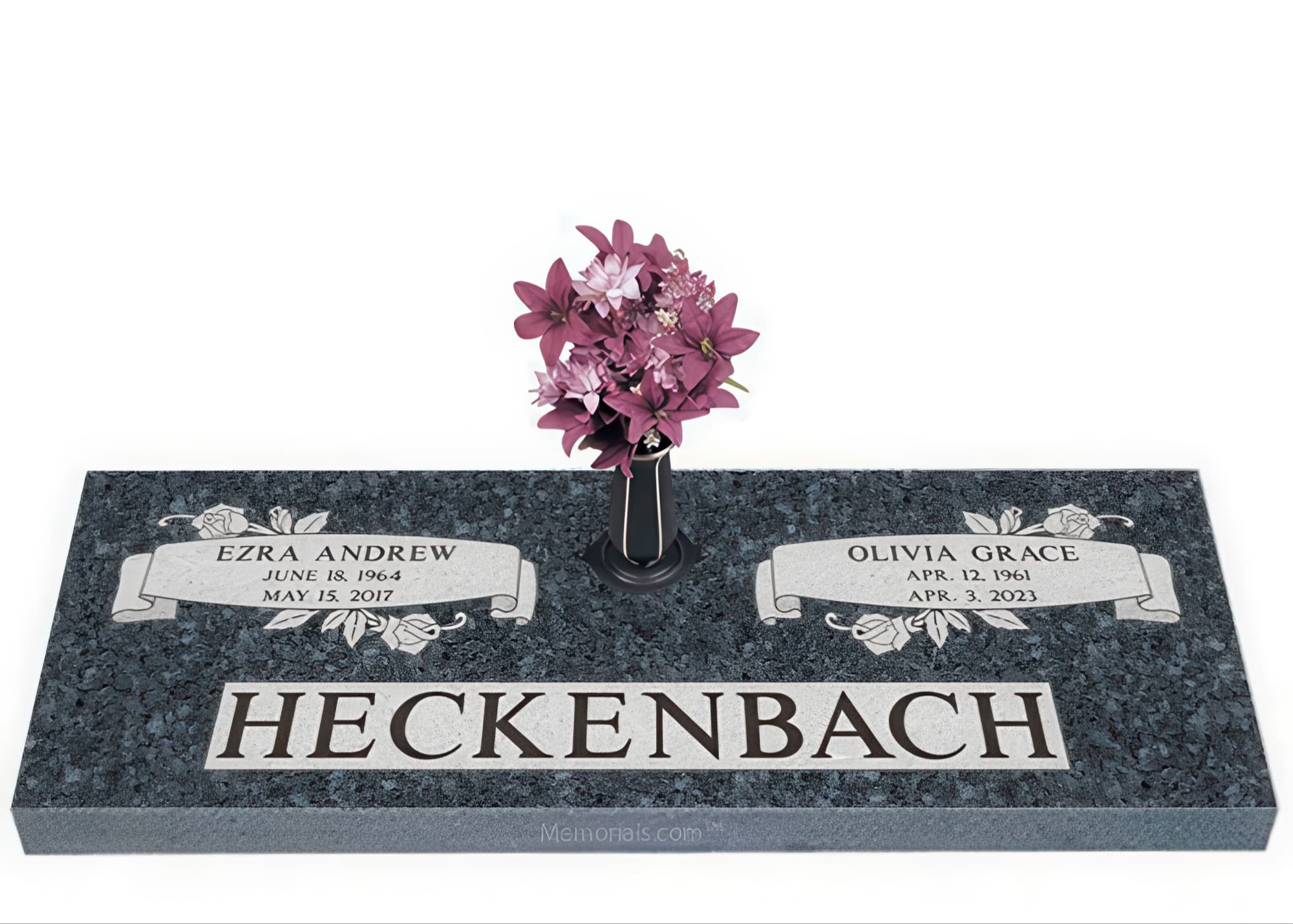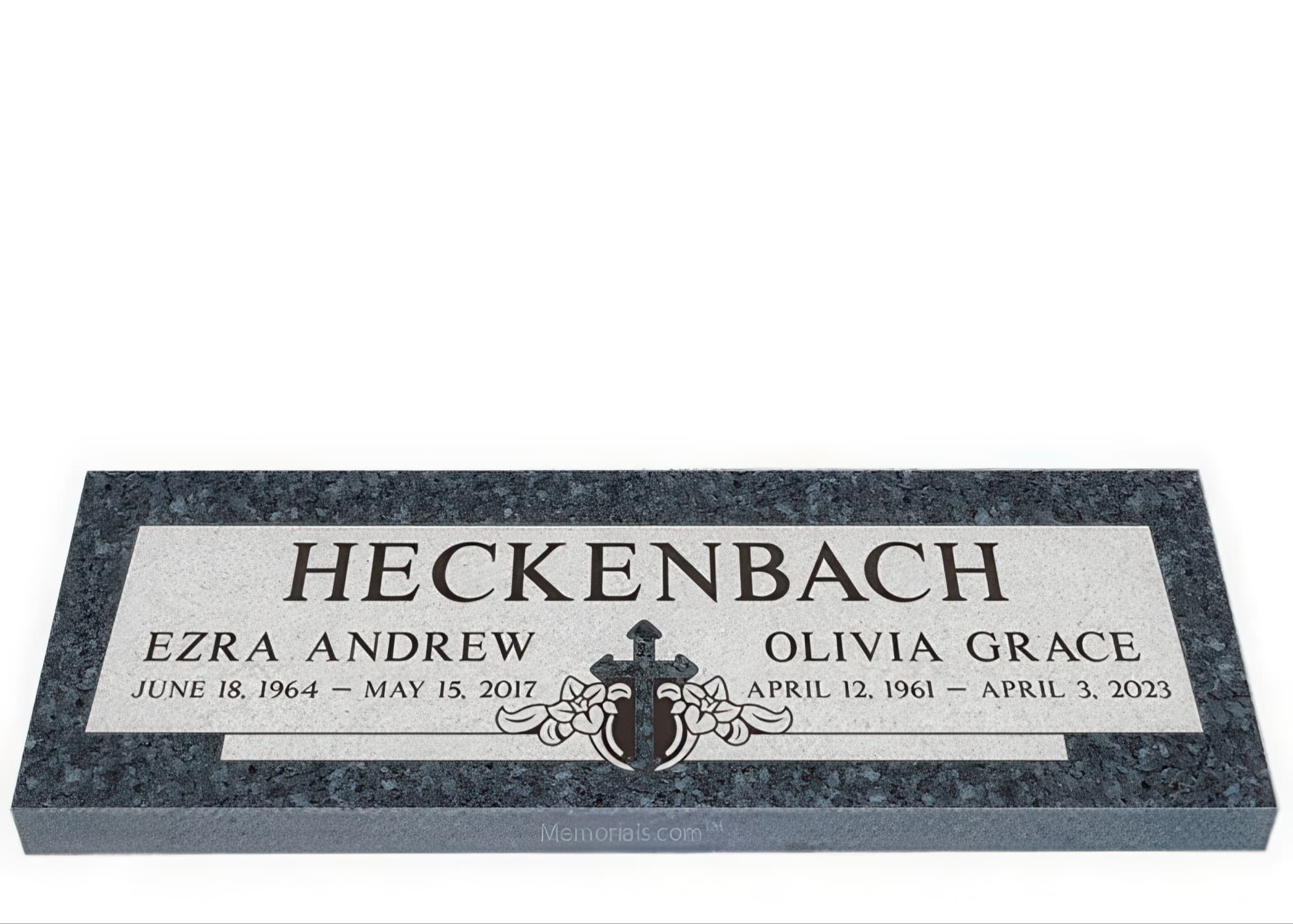 Memorials.com offers a wide selection of double headstones for husband and wife, crafted in natural granite and shipped directly to your cemetery. Our companion headstones for married couples feature custom engravings, emblems, and a choice of eight granite colors. Whether you need flat grave markers for couples or unique husband and wife headstones with themed designs like deer, celtic crosses, or tree of life motifs, we verify every order with your cemetery before production begins. Free shipping on all orders.