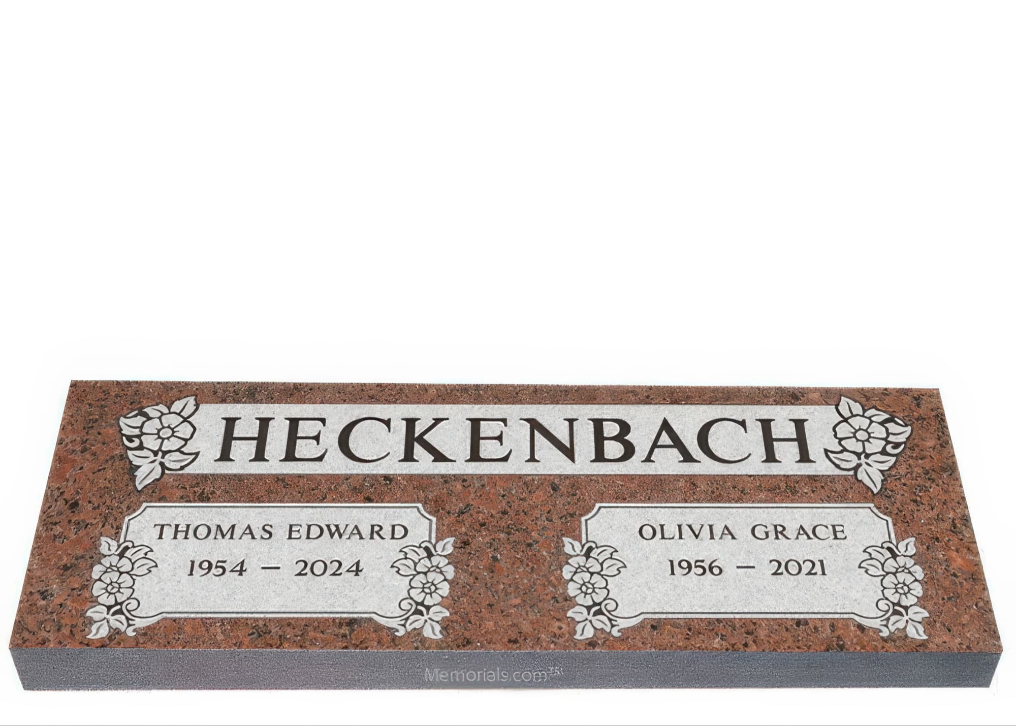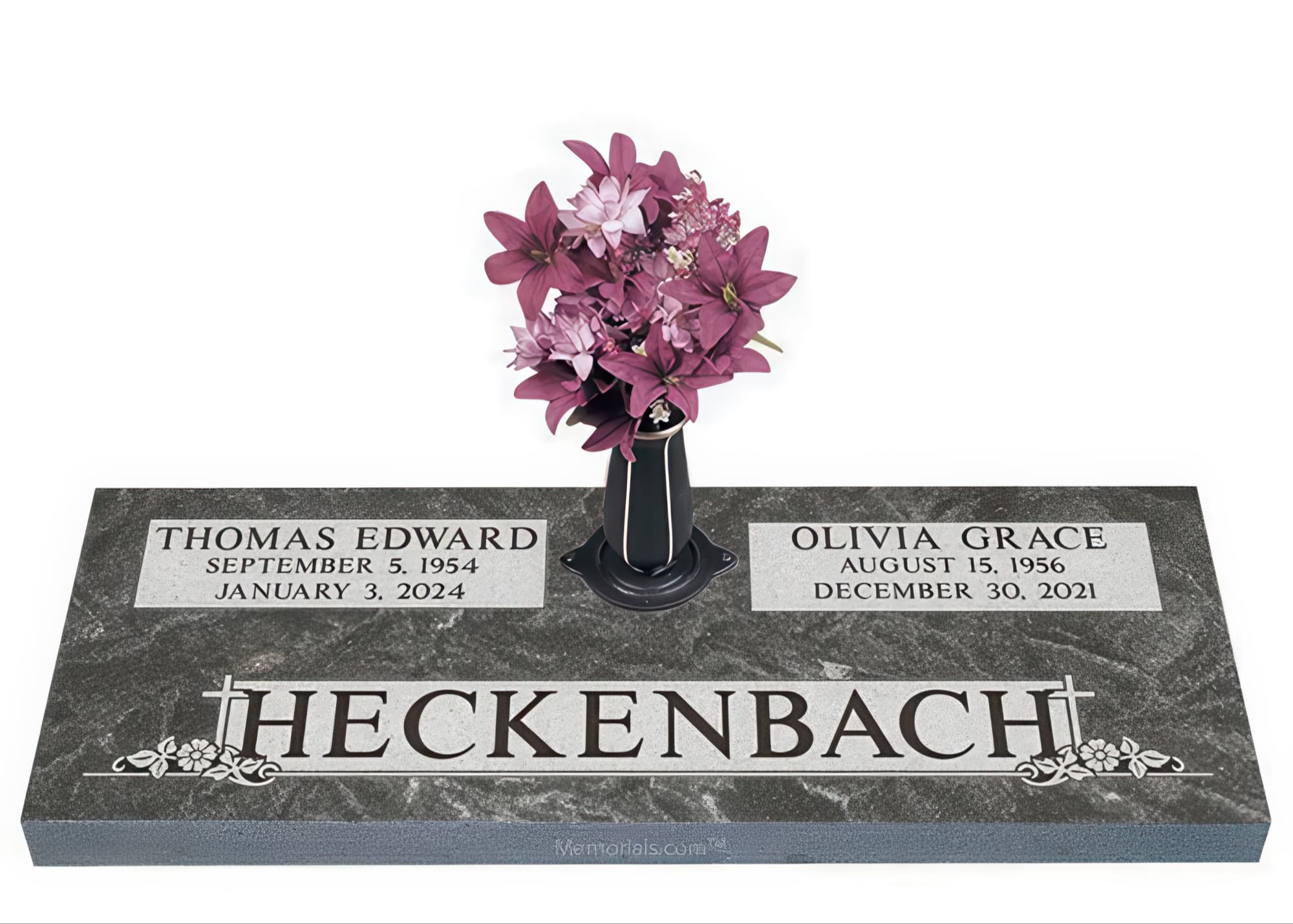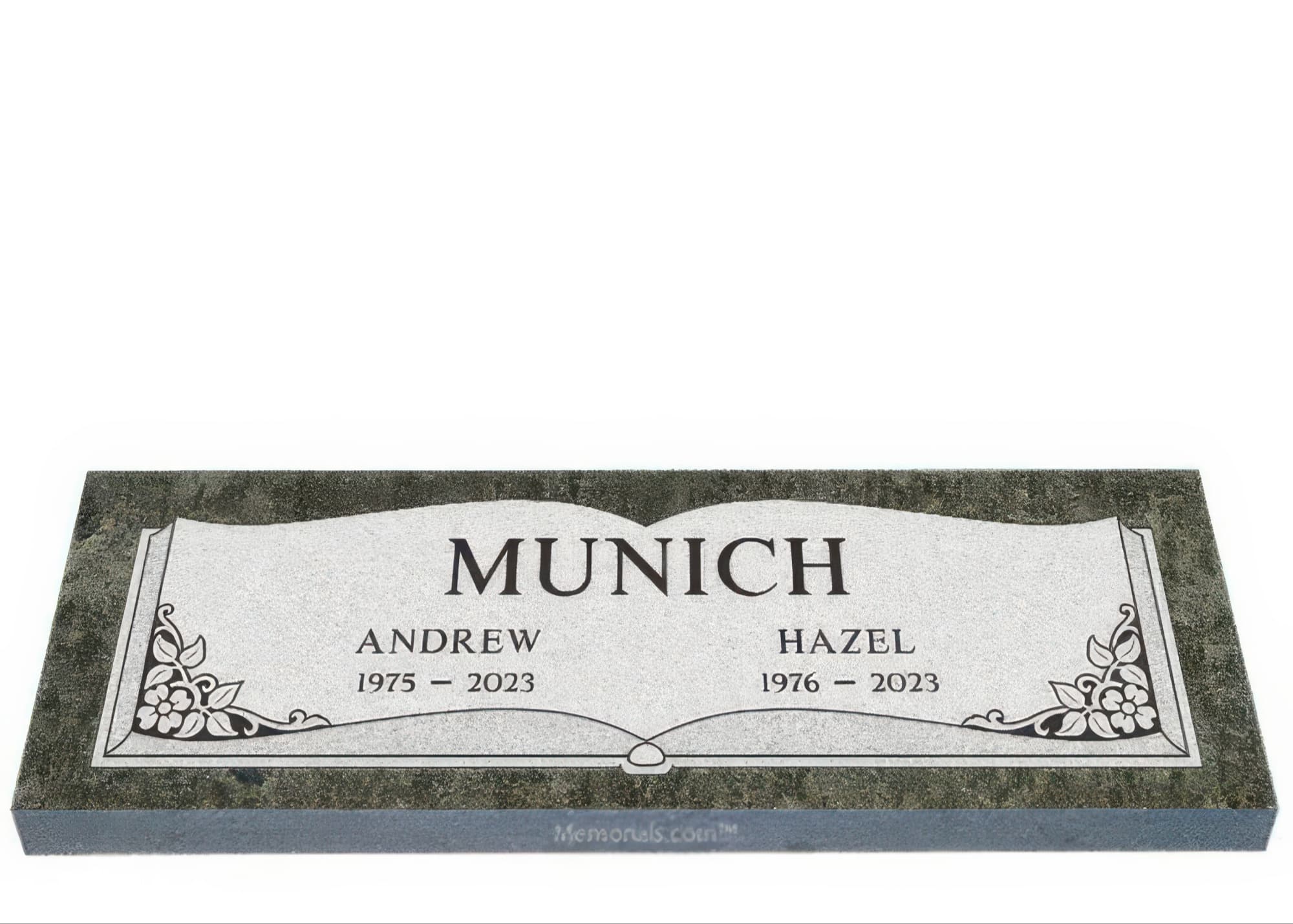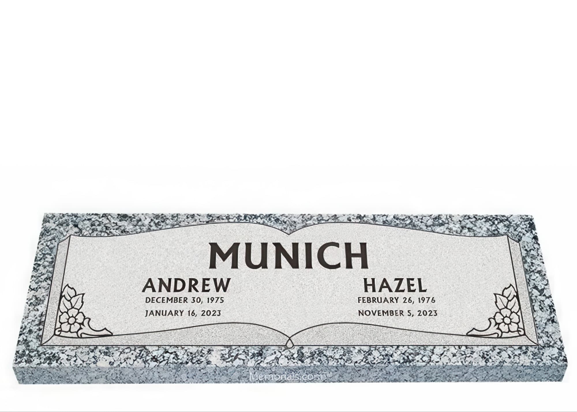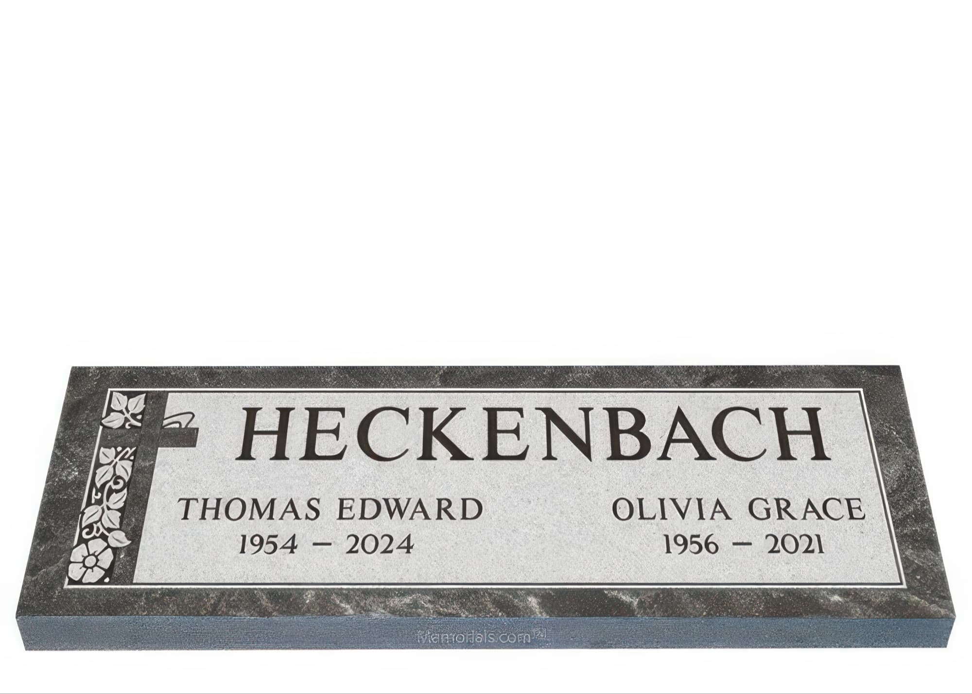 Memorials.com offers a wide selection of double headstones for husband and wife, crafted in natural granite and shipped directly to your cemetery. Our companion headstones for married couples feature custom engravings, emblems, and a choice of eight granite colors. Whether you need flat grave markers for couples or unique husband and wife headstones with themed designs like deer, celtic crosses, or tree of life motifs, we verify every order with your cemetery before production begins. Free shipping on all orders.