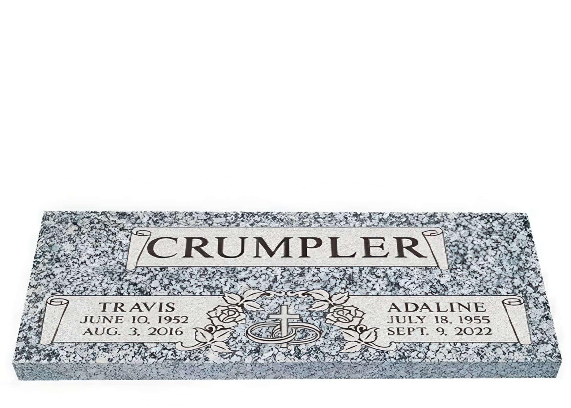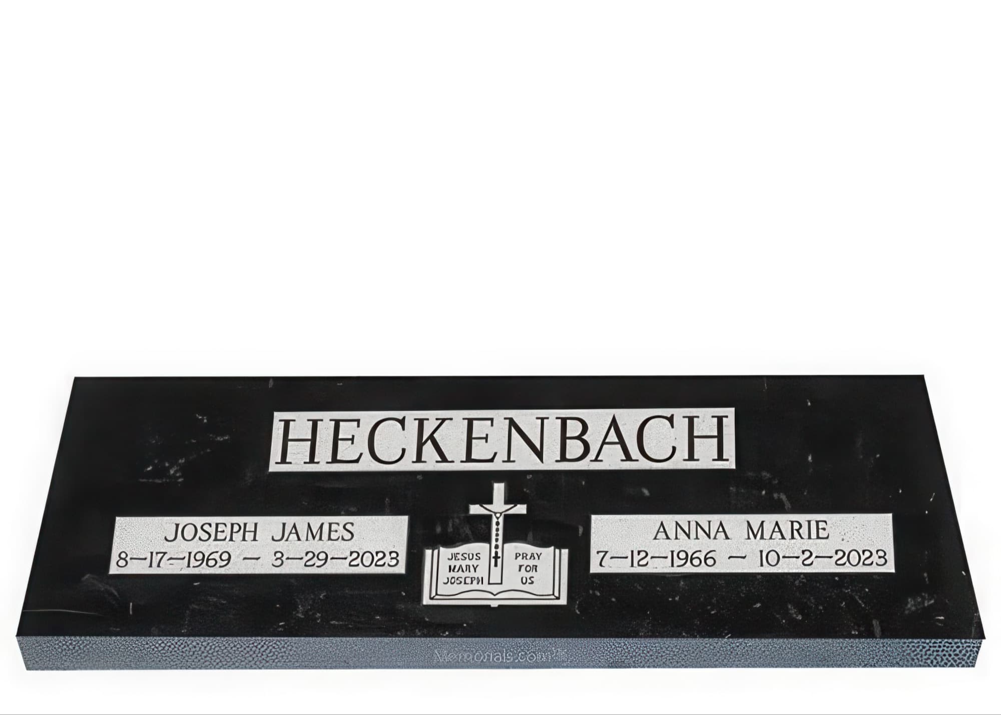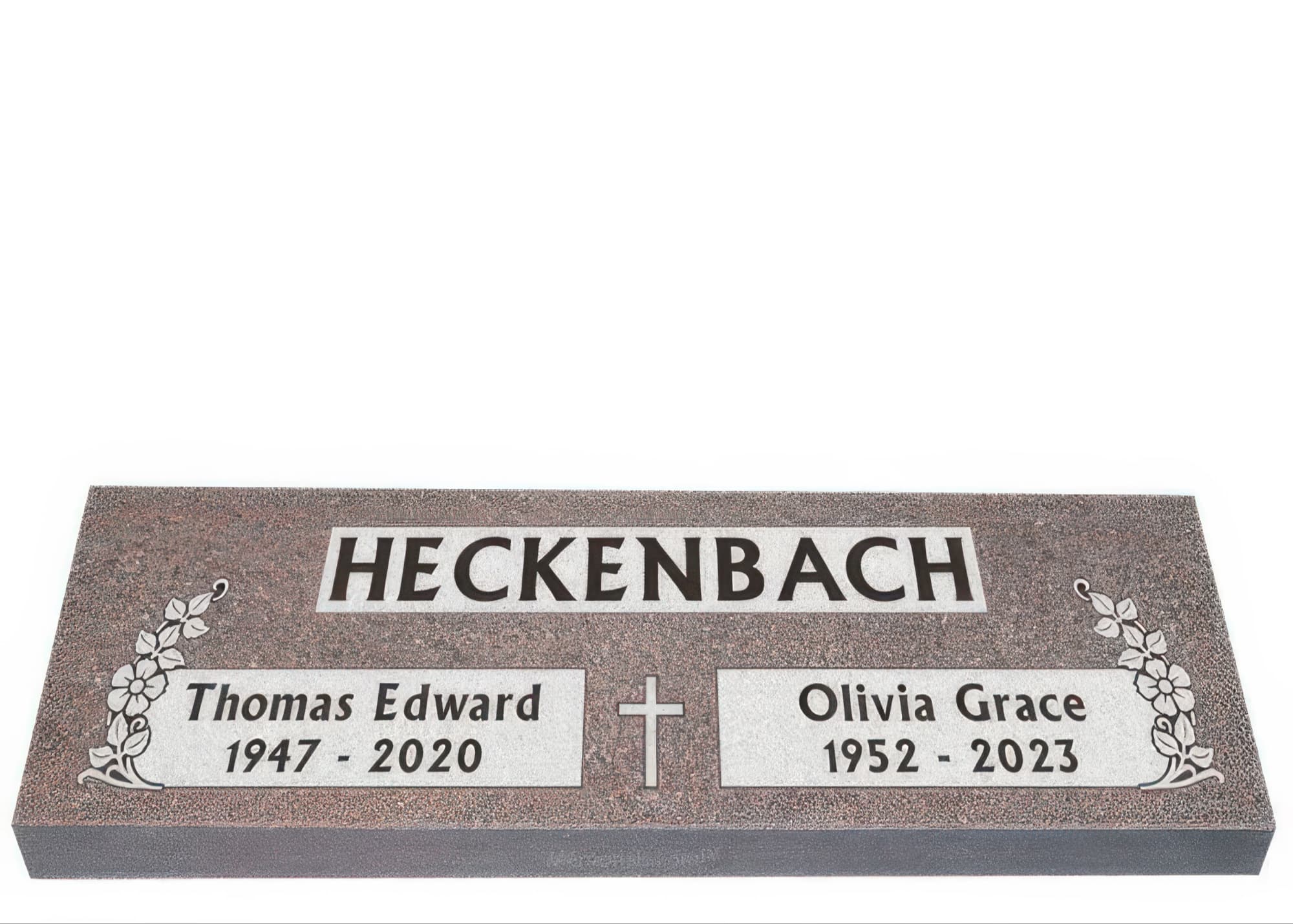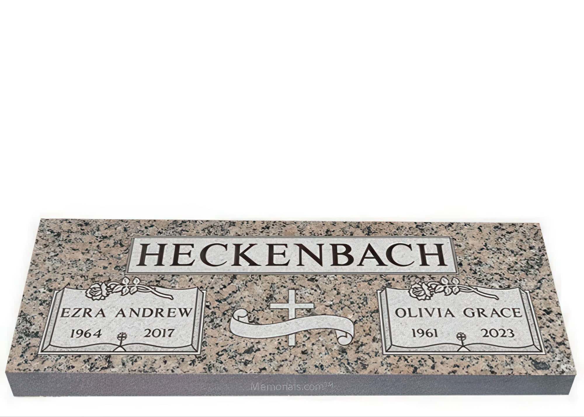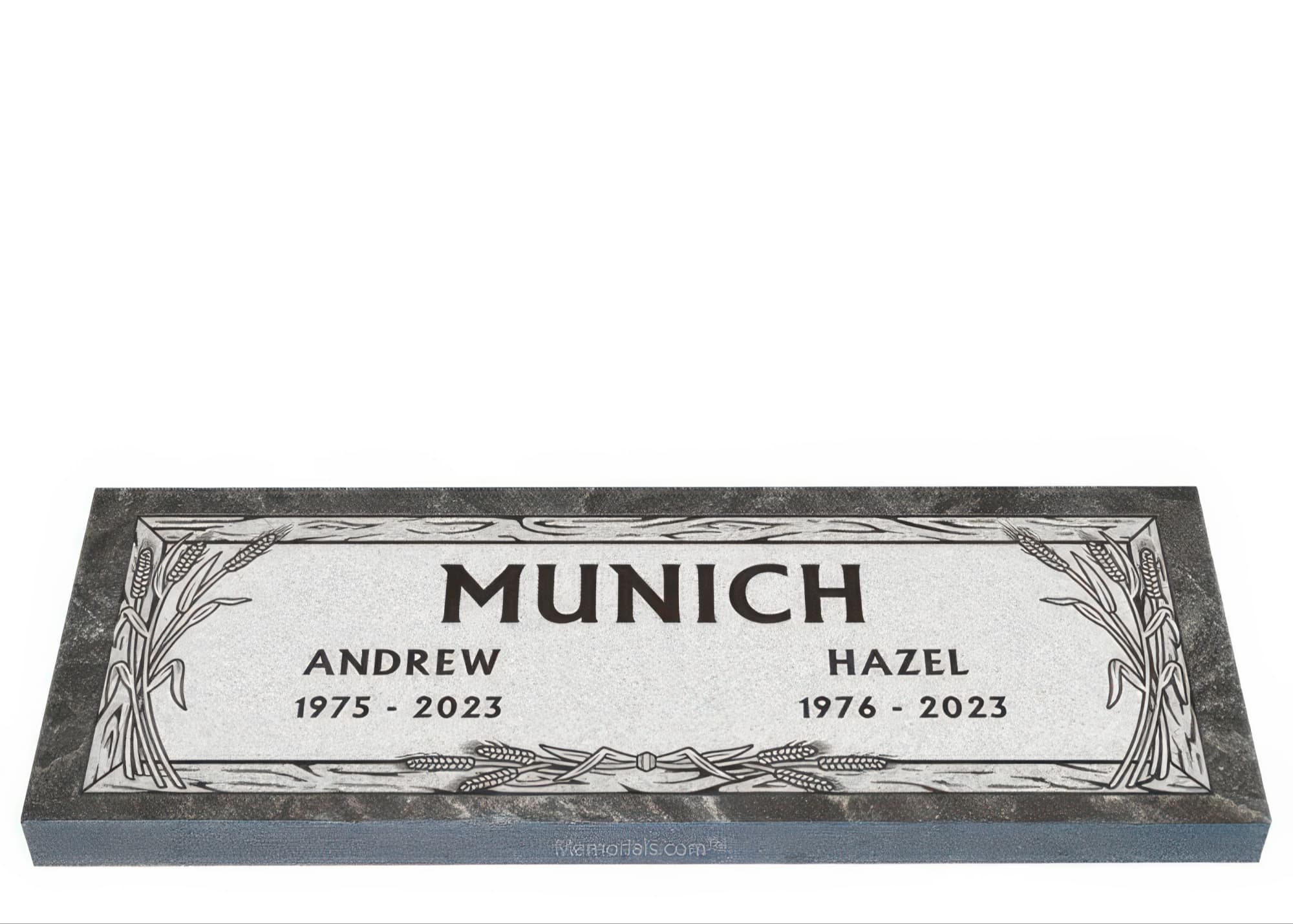 Memorials.com offers a wide selection of double headstones for husband and wife, crafted in natural granite and shipped directly to your cemetery. Our companion headstones for married couples feature custom engravings, emblems, and a choice of eight granite colors. Whether you need flat grave markers for couples or unique husband and wife headstones with themed designs like deer, celtic crosses, or tree of life motifs, we verify every order with your cemetery before production begins. Free shipping on all orders.