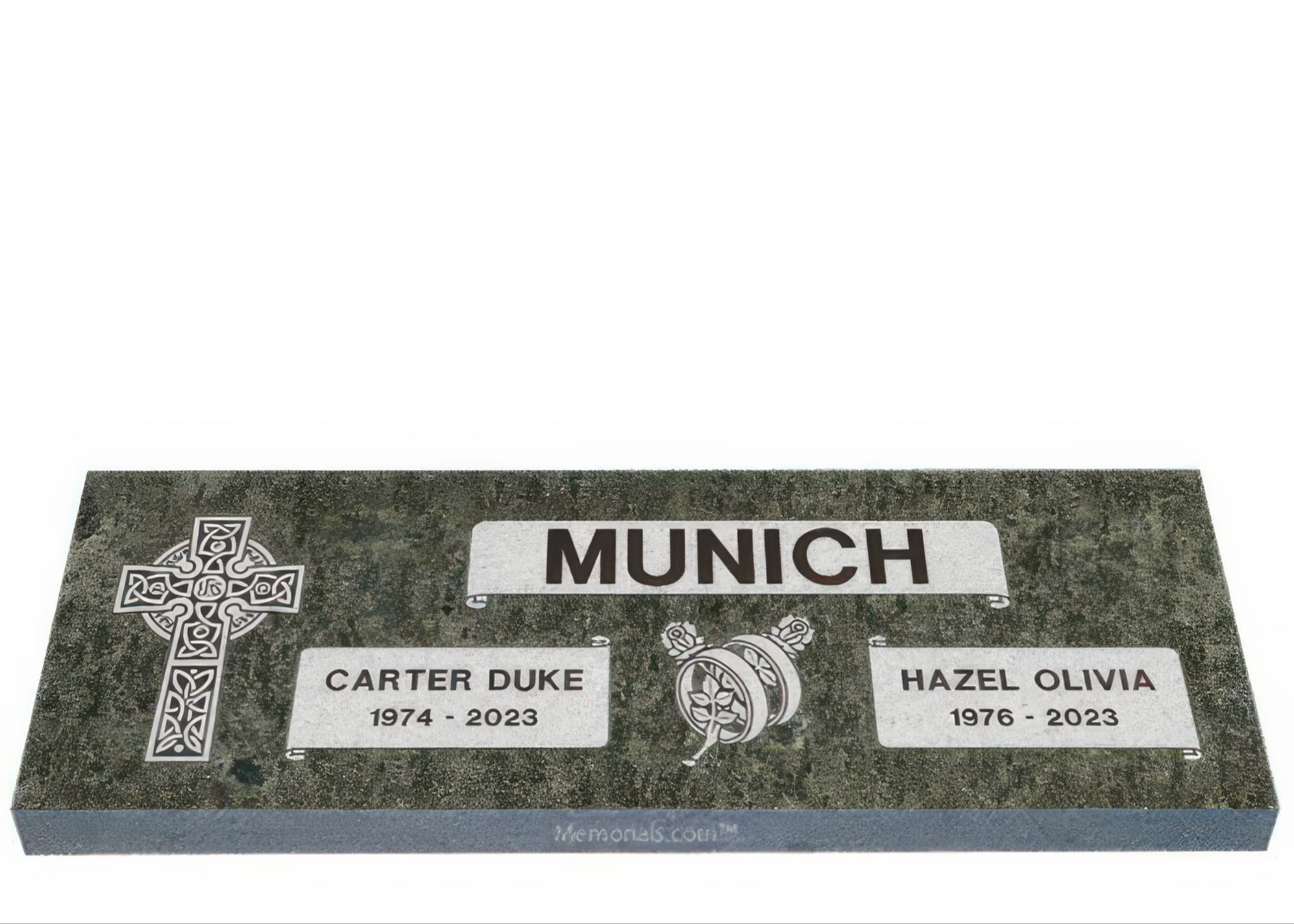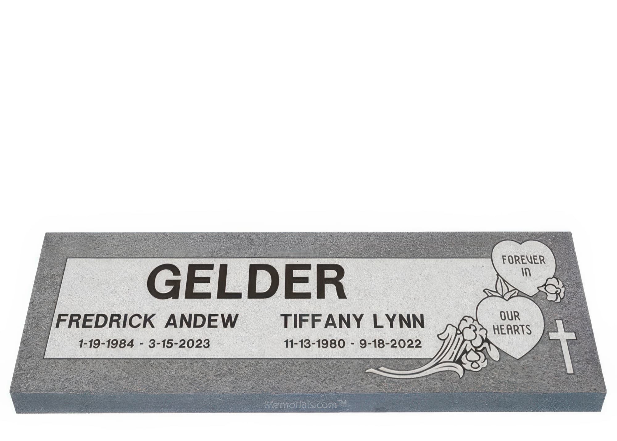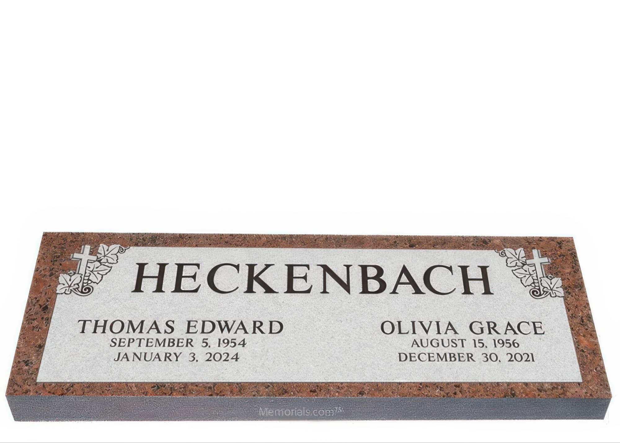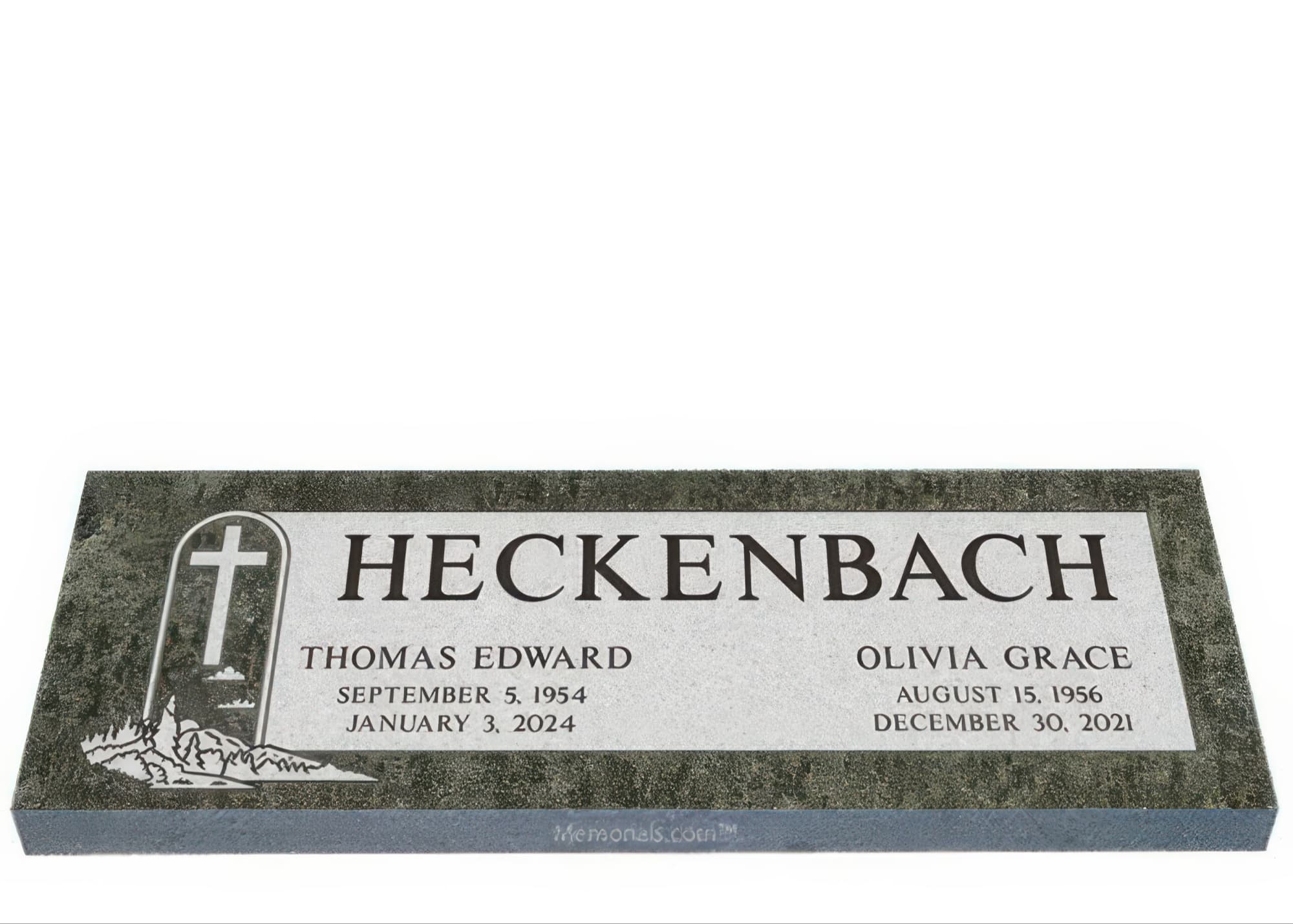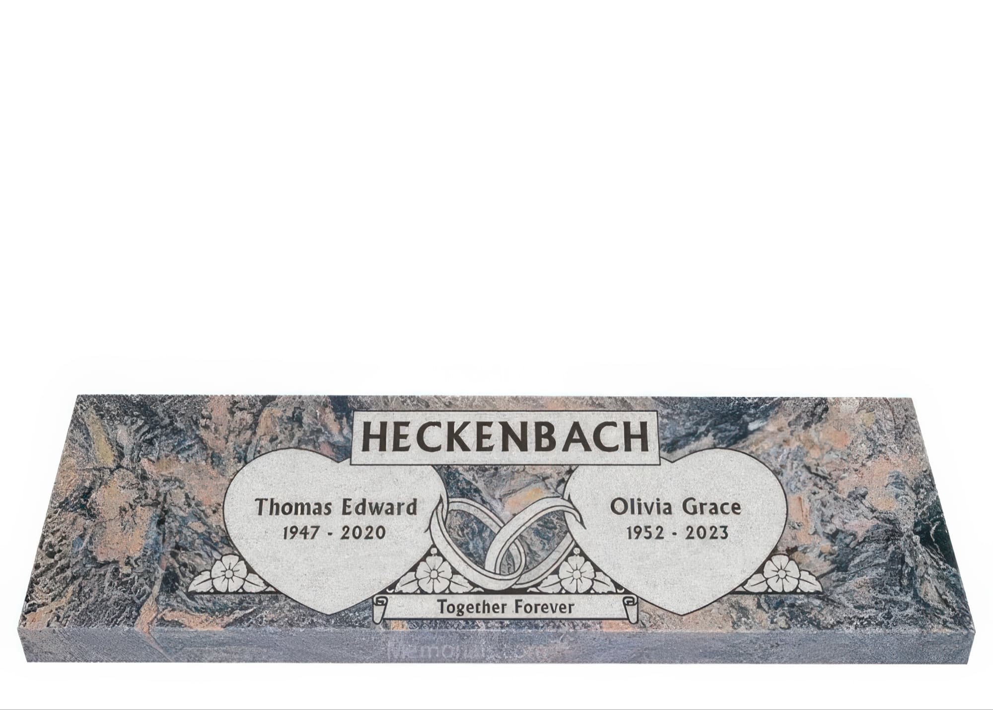 Memorials.com offers a wide selection of double headstones for husband and wife, crafted in natural granite and shipped directly to your cemetery. Our companion headstones for married couples feature custom engravings, emblems, and a choice of eight granite colors. Whether you need flat grave markers for couples or unique husband and wife headstones with themed designs like deer, celtic crosses, or tree of life motifs, we verify every order with your cemetery before production begins. Free shipping on all orders.