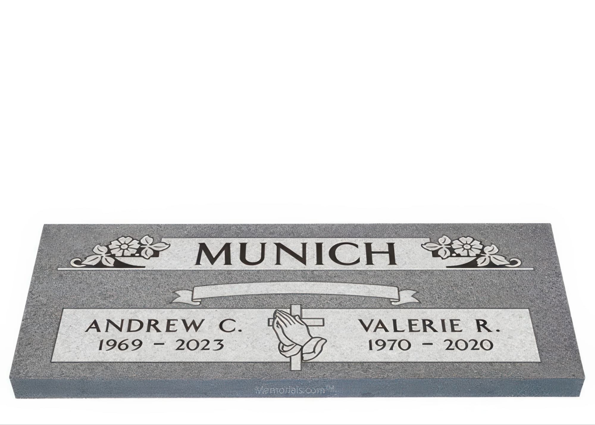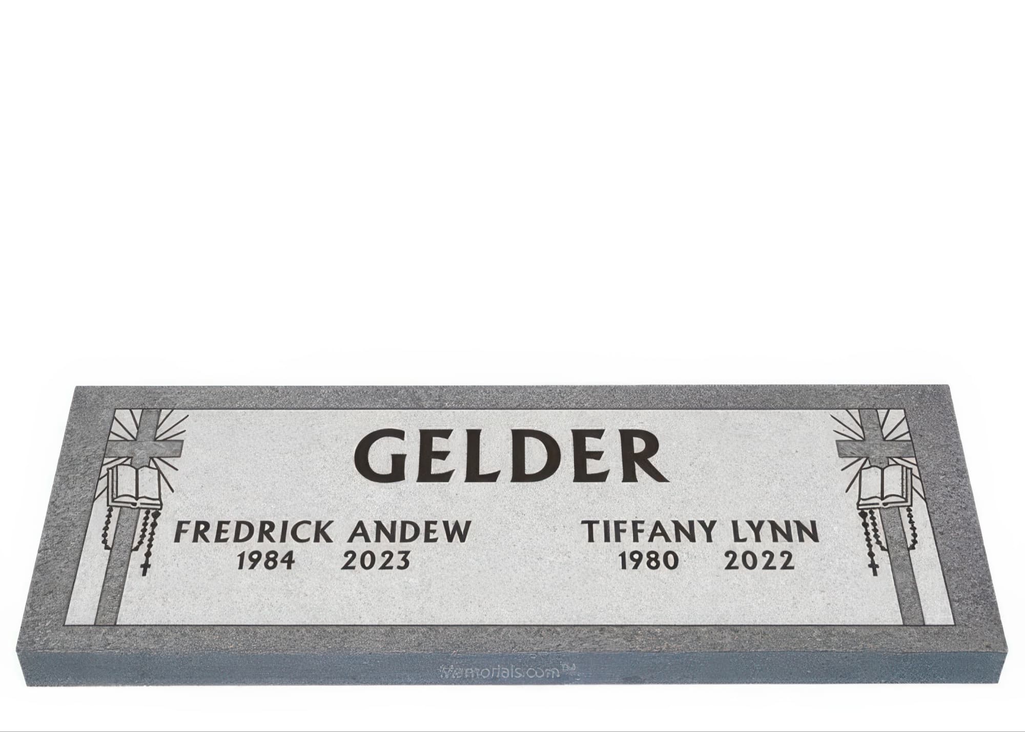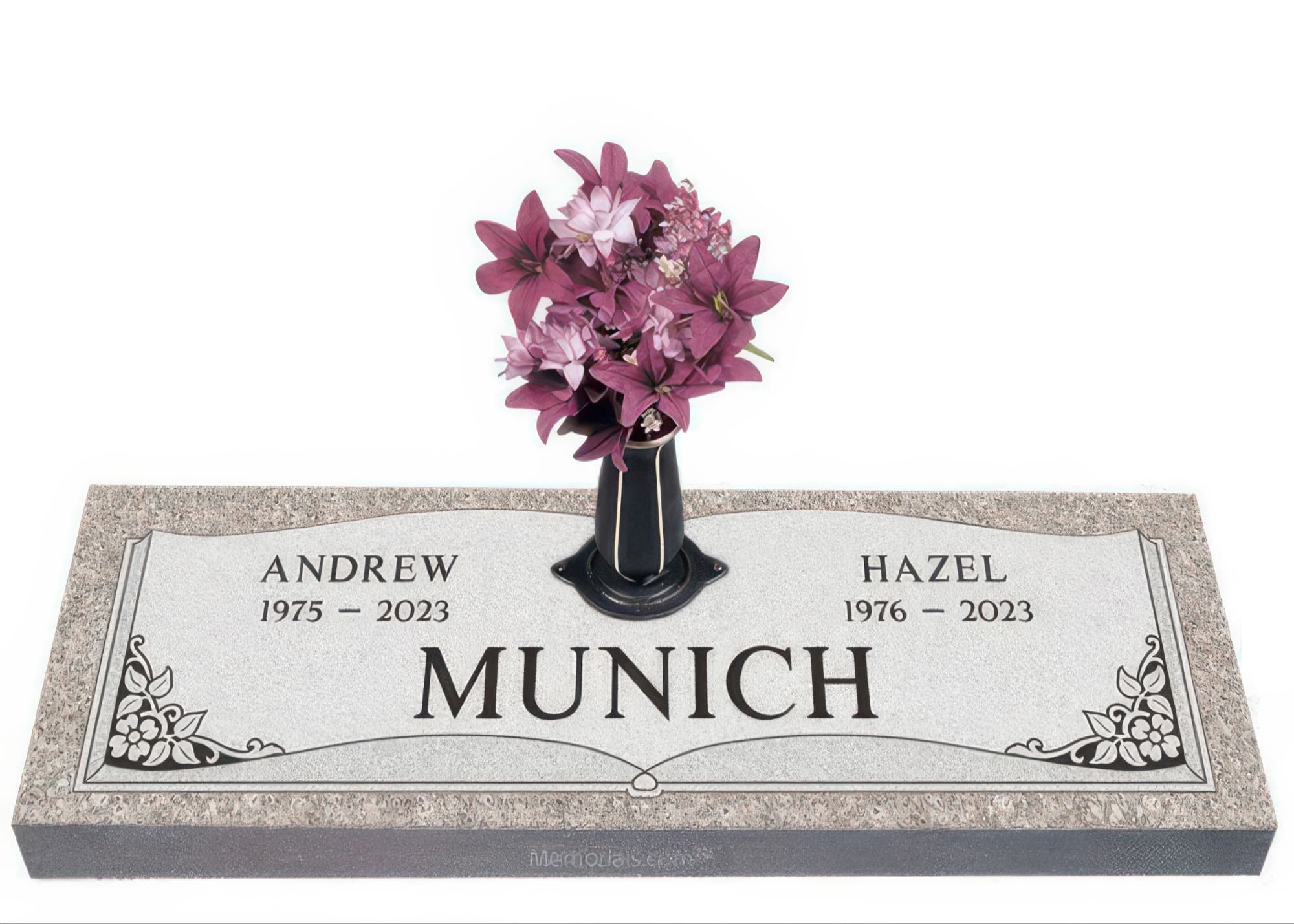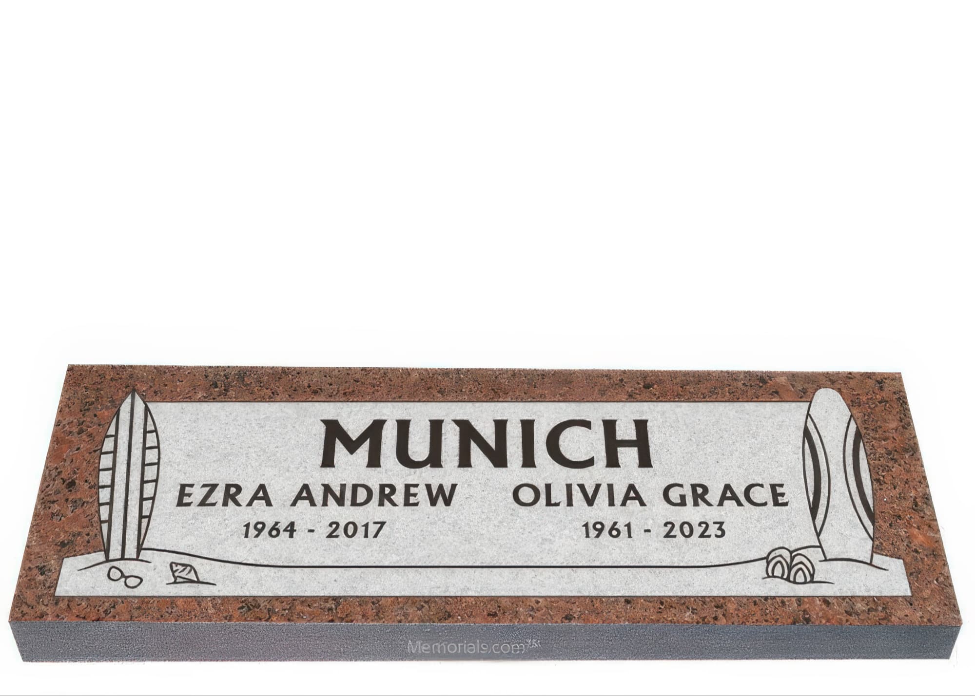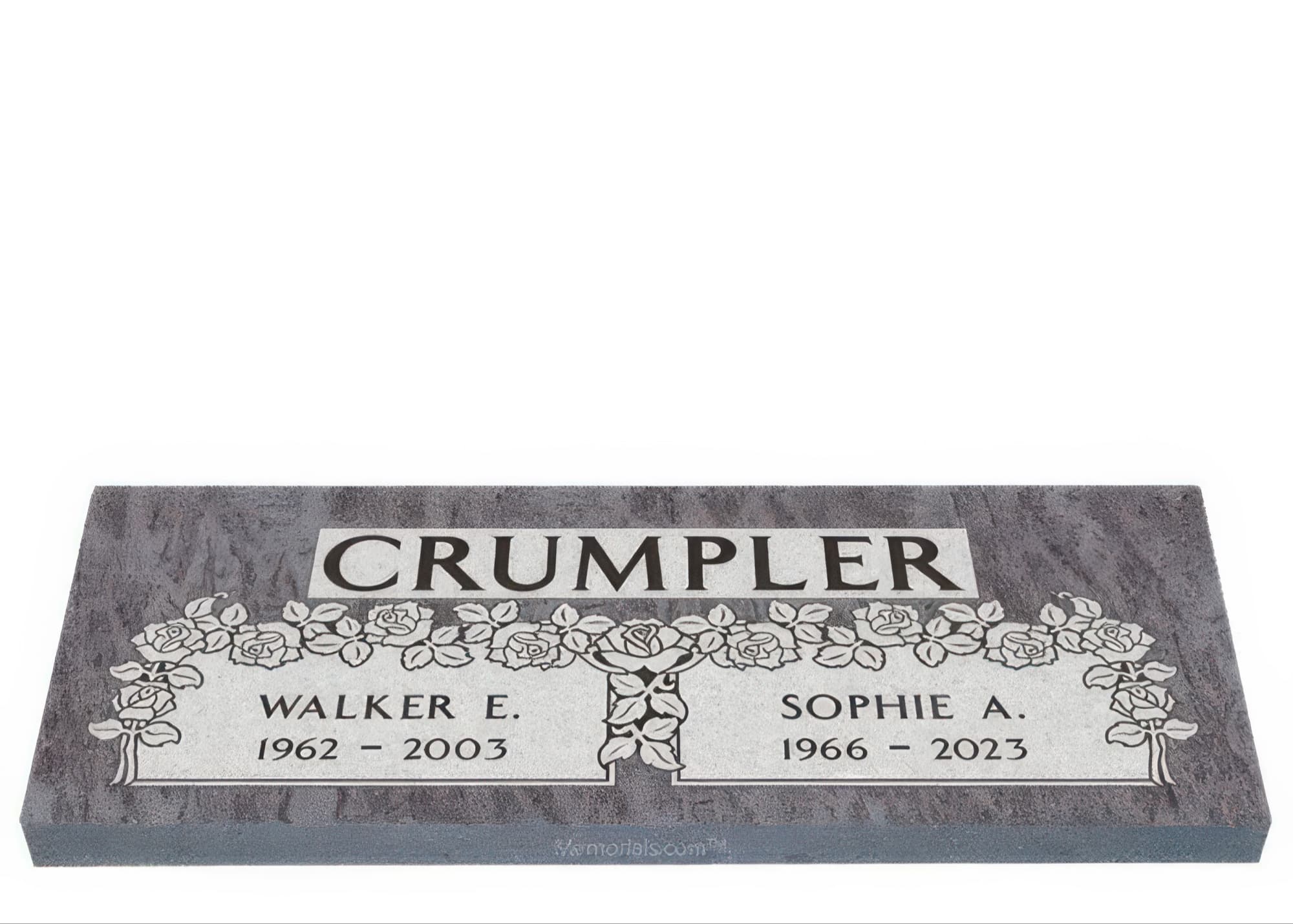 Memorials.com offers a wide selection of double headstones for husband and wife, crafted in natural granite and shipped directly to your cemetery. Our companion headstones for married couples feature custom engravings, emblems, and a choice of eight granite colors. Whether you need flat grave markers for couples or unique husband and wife headstones with themed designs like deer, celtic crosses, or tree of life motifs, we verify every order with your cemetery before production begins. Free shipping on all orders.