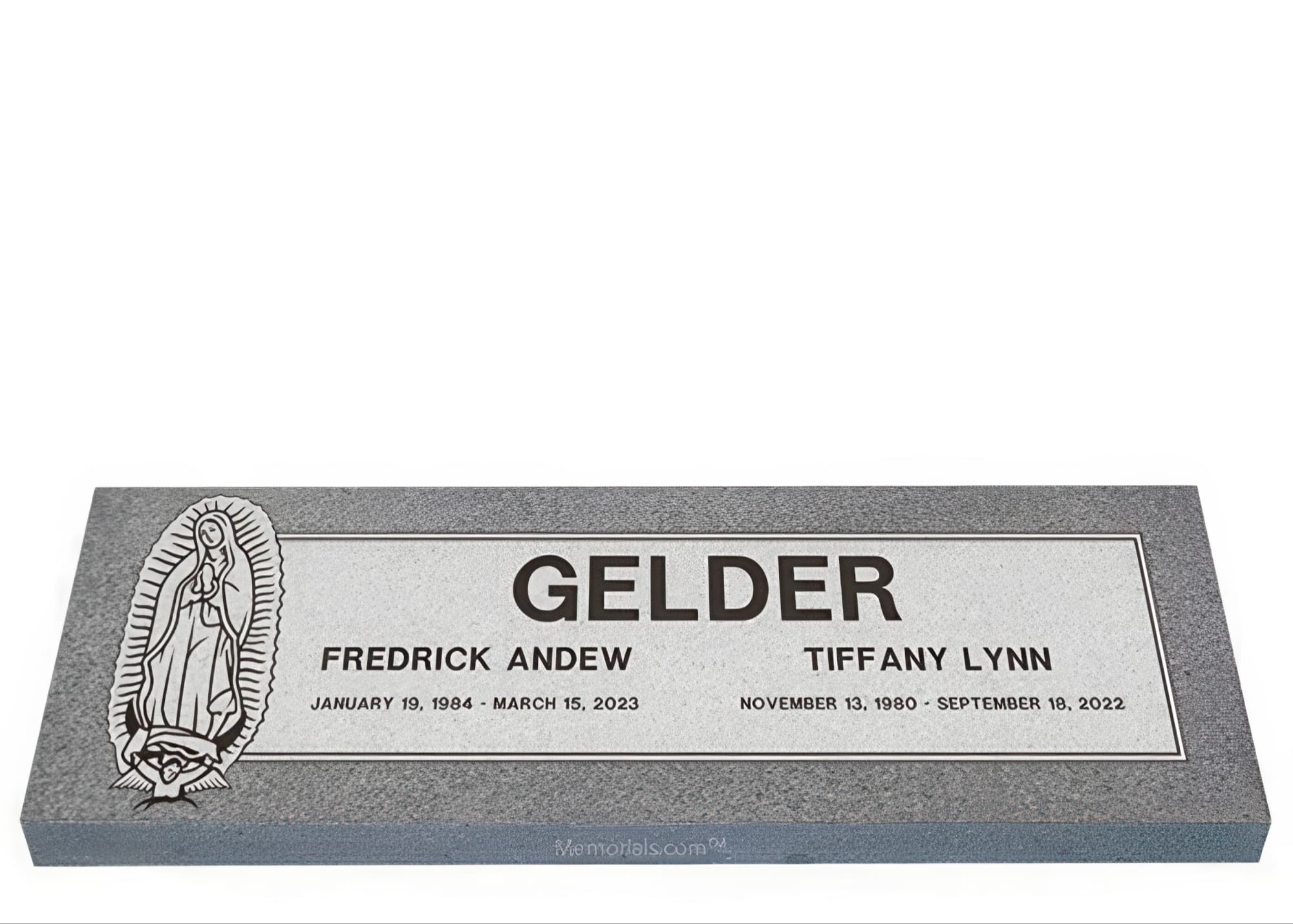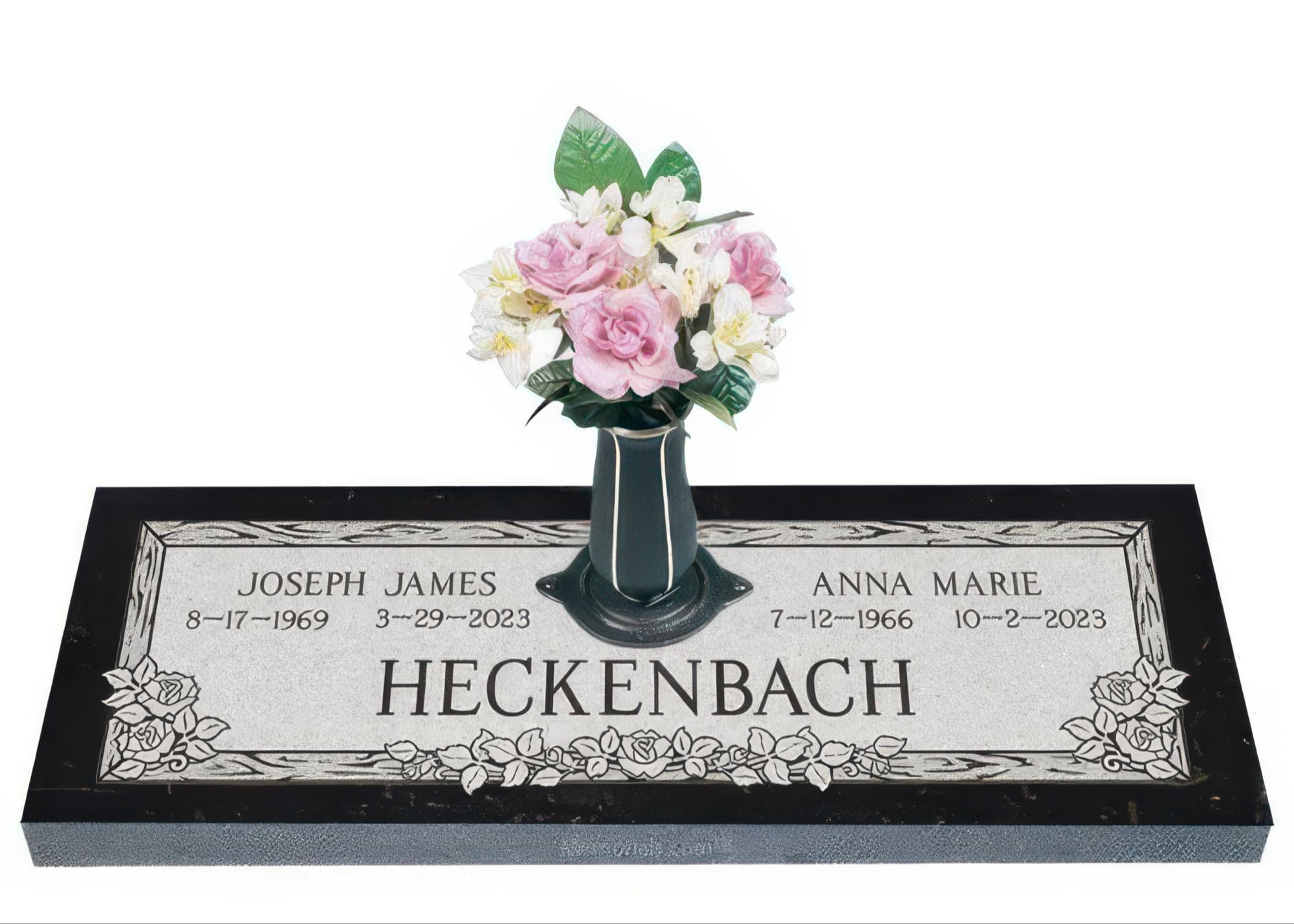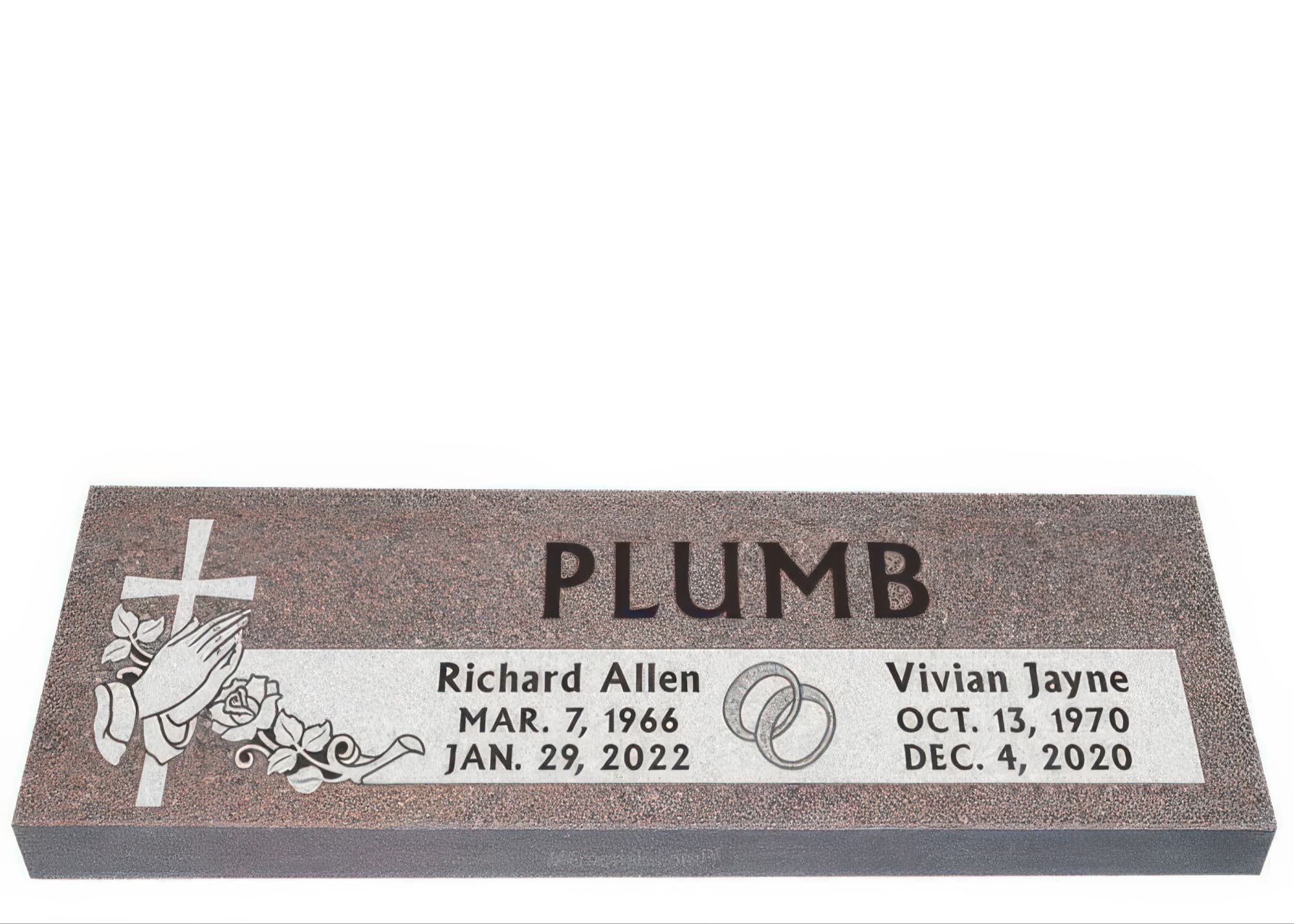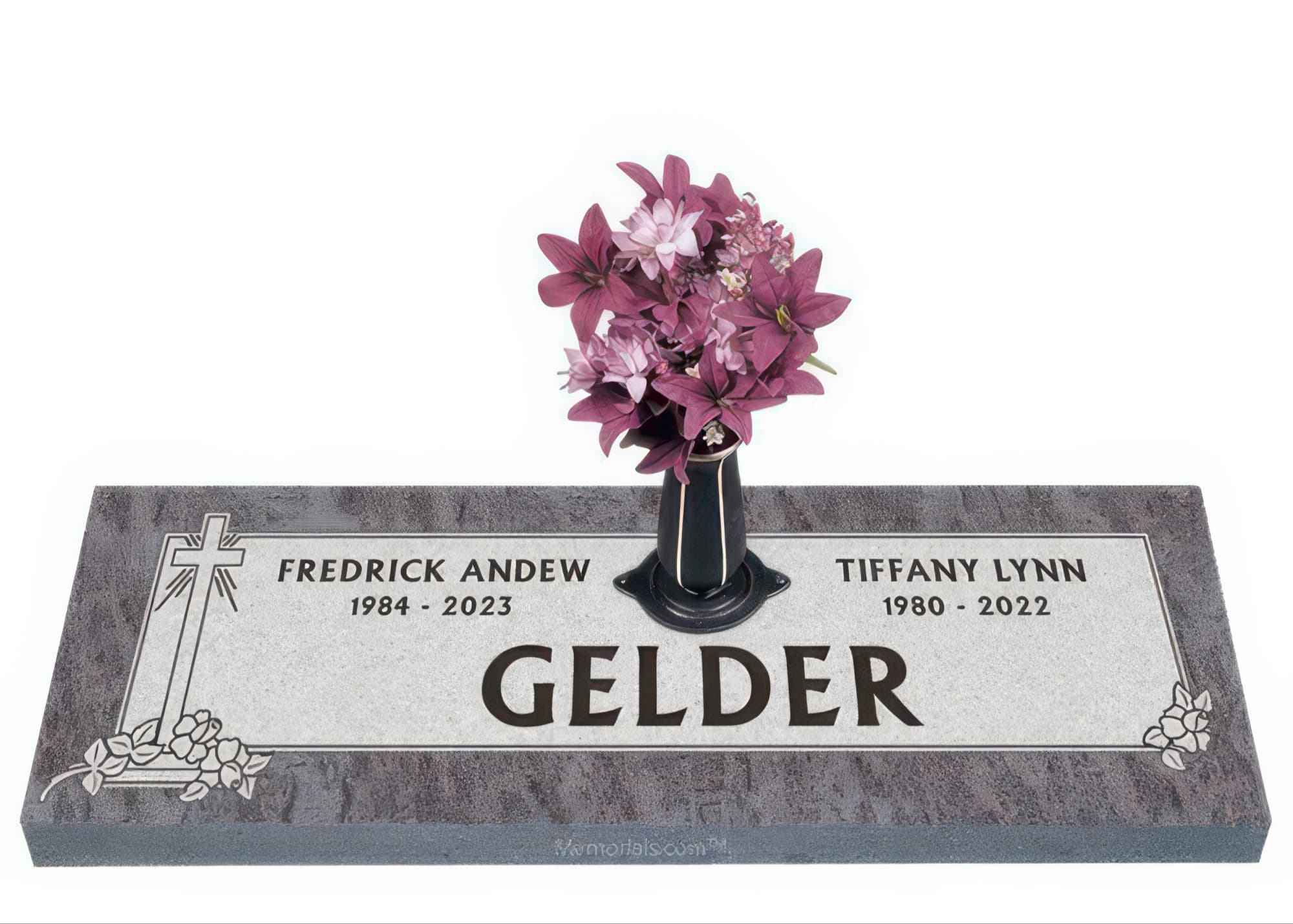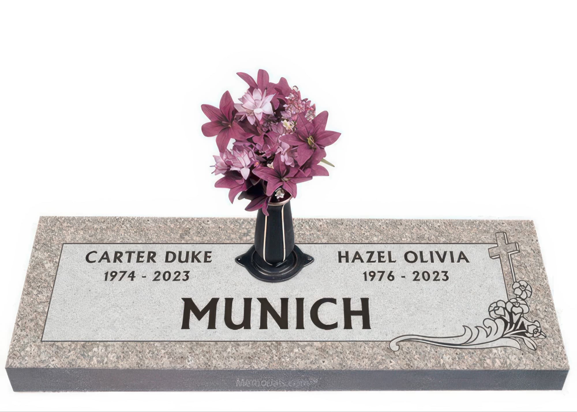 Memorials.com offers a wide selection of double headstones for husband and wife, crafted in natural granite and shipped directly to your cemetery. Our companion headstones for married couples feature custom engravings, emblems, and a choice of eight granite colors. Whether you need flat grave markers for couples or unique husband and wife headstones with themed designs like deer, celtic crosses, or tree of life motifs, we verify every order with your cemetery before production begins. Free shipping on all orders.
