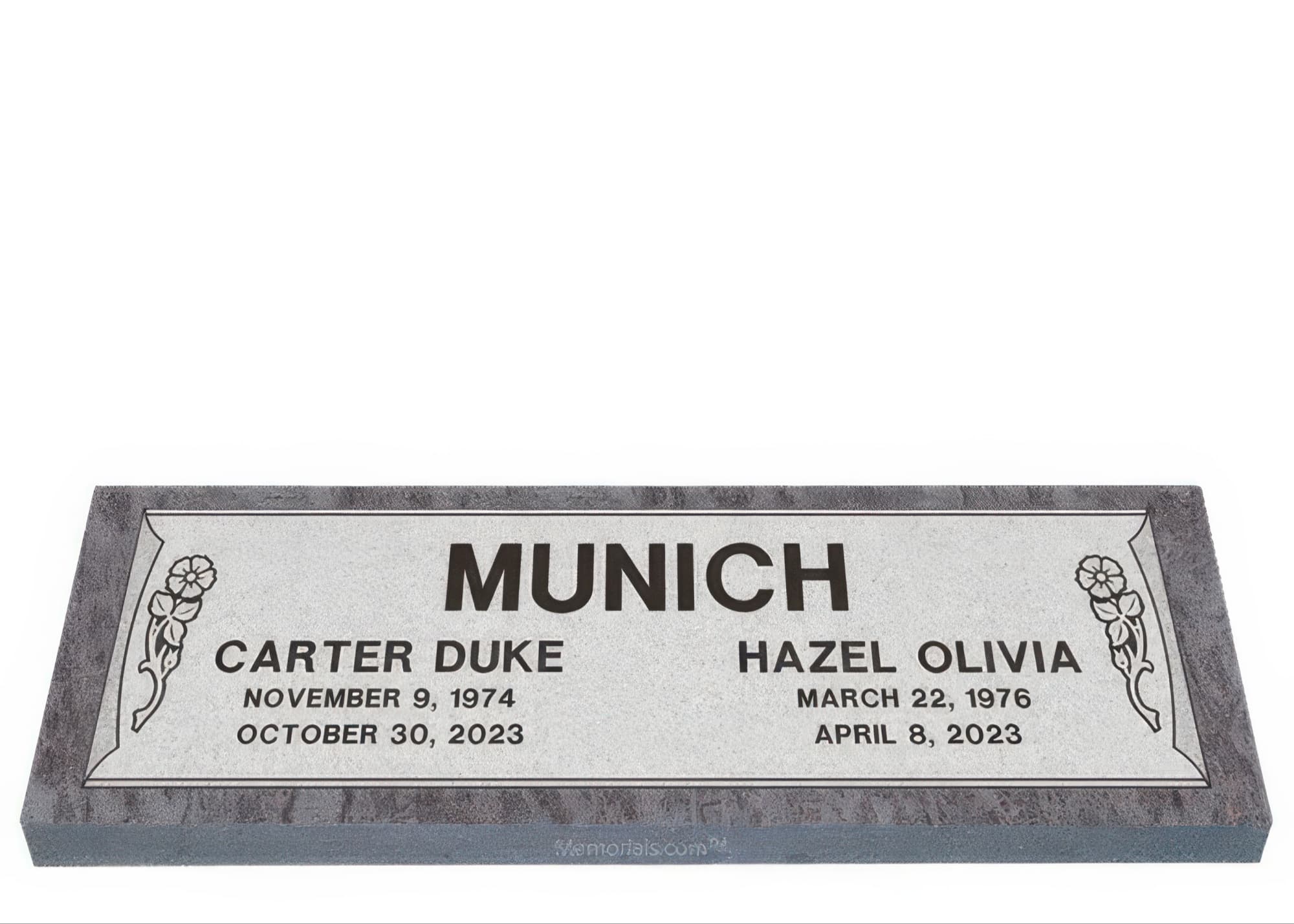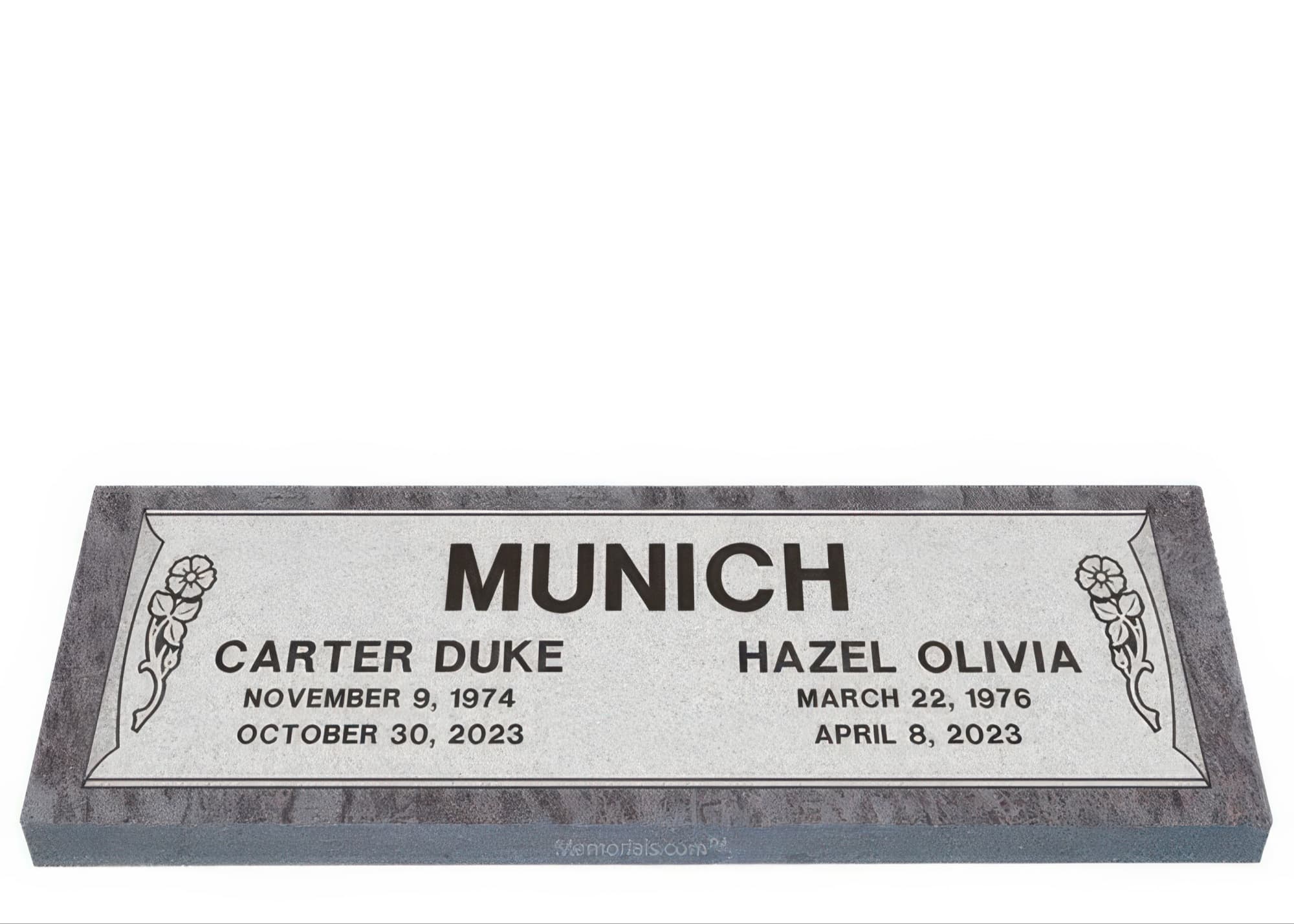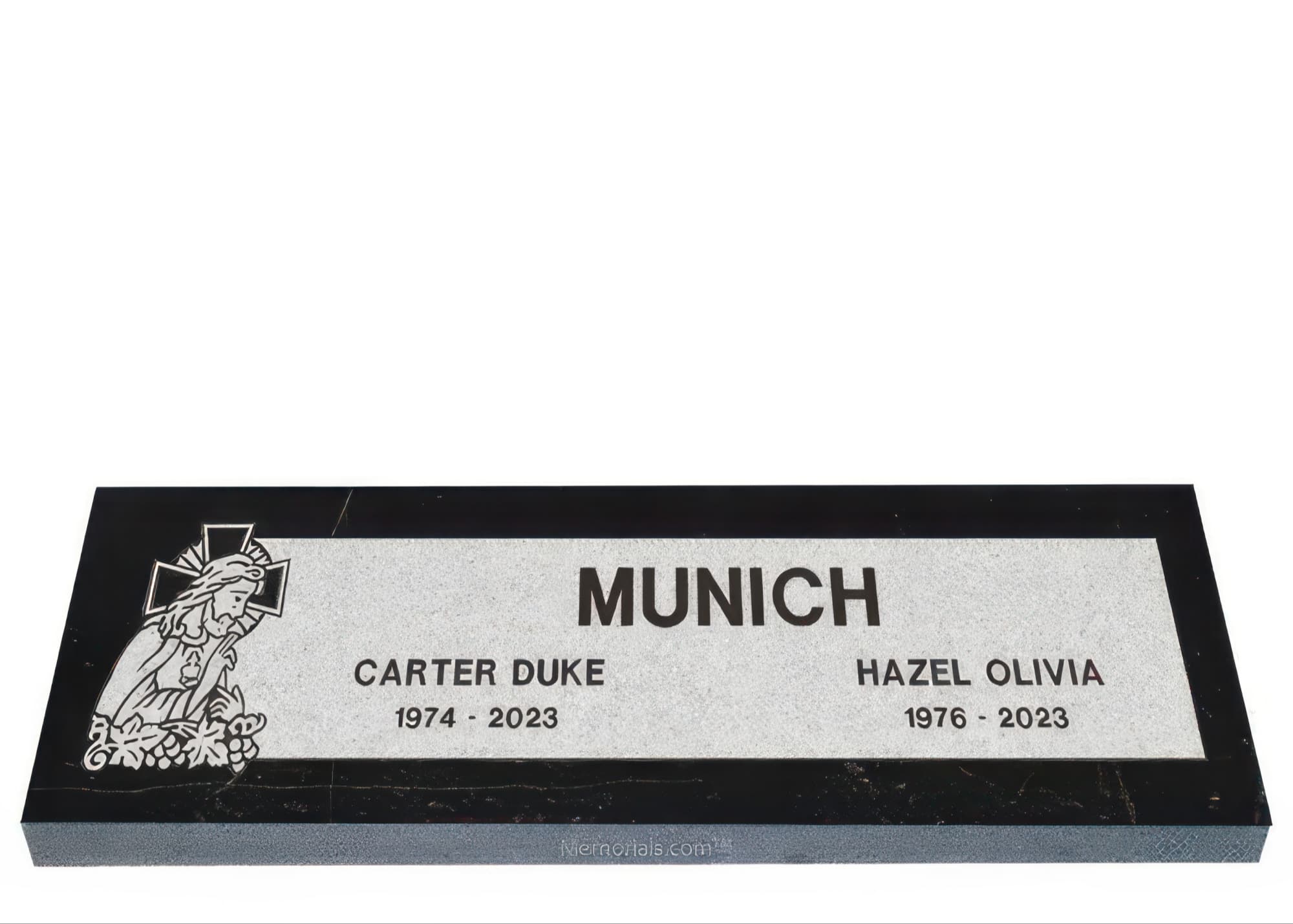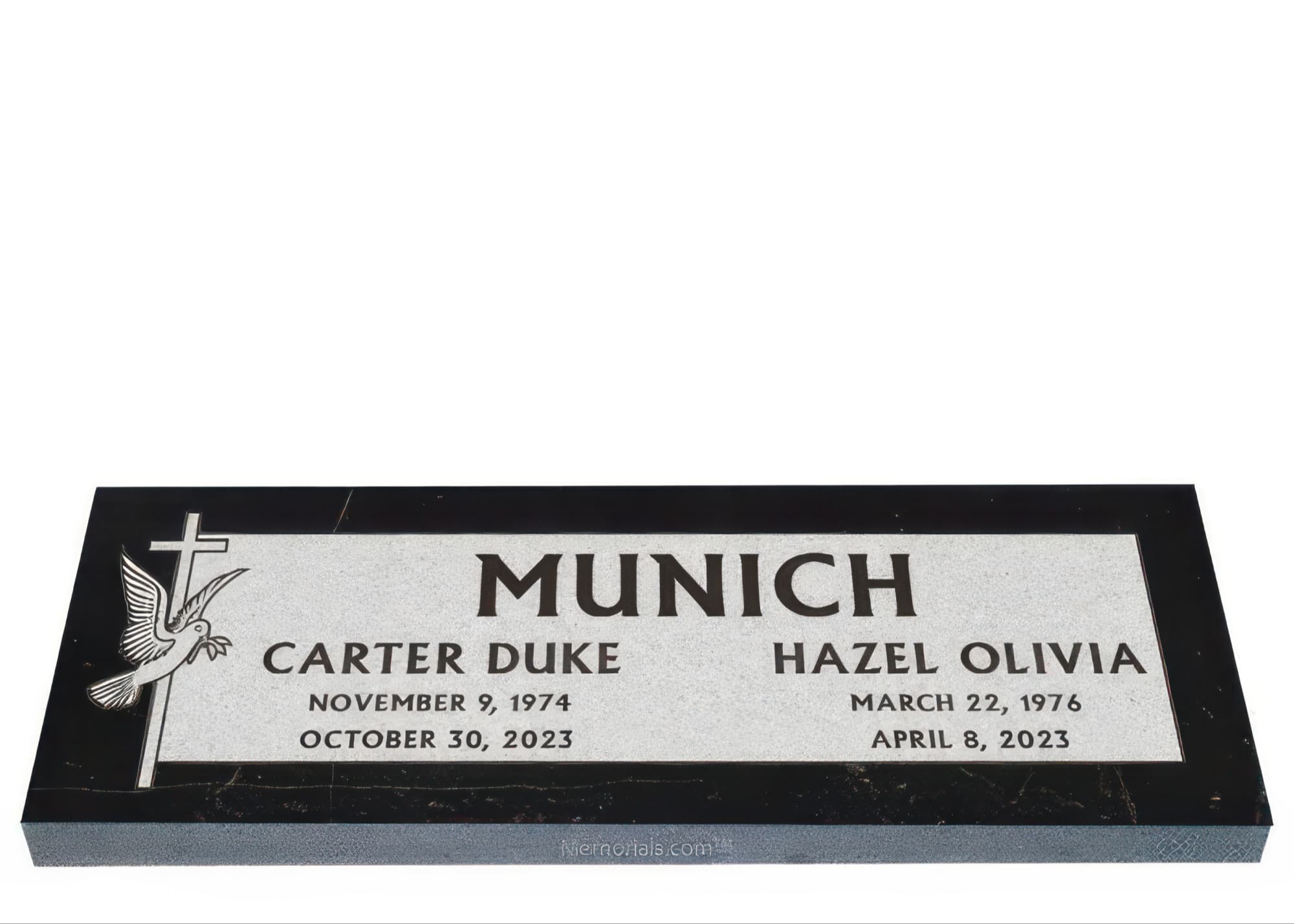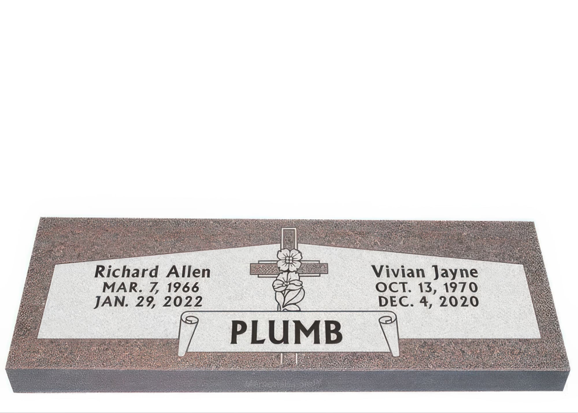 Memorials.com offers a wide selection of double headstones for husband and wife, crafted in natural granite and shipped directly to your cemetery. Our companion headstones for married couples feature custom engravings, emblems, and a choice of eight granite colors. Whether you need flat grave markers for couples or unique husband and wife headstones with themed designs like deer, celtic crosses, or tree of life motifs, we verify every order with your cemetery before production begins. Free shipping on all orders.