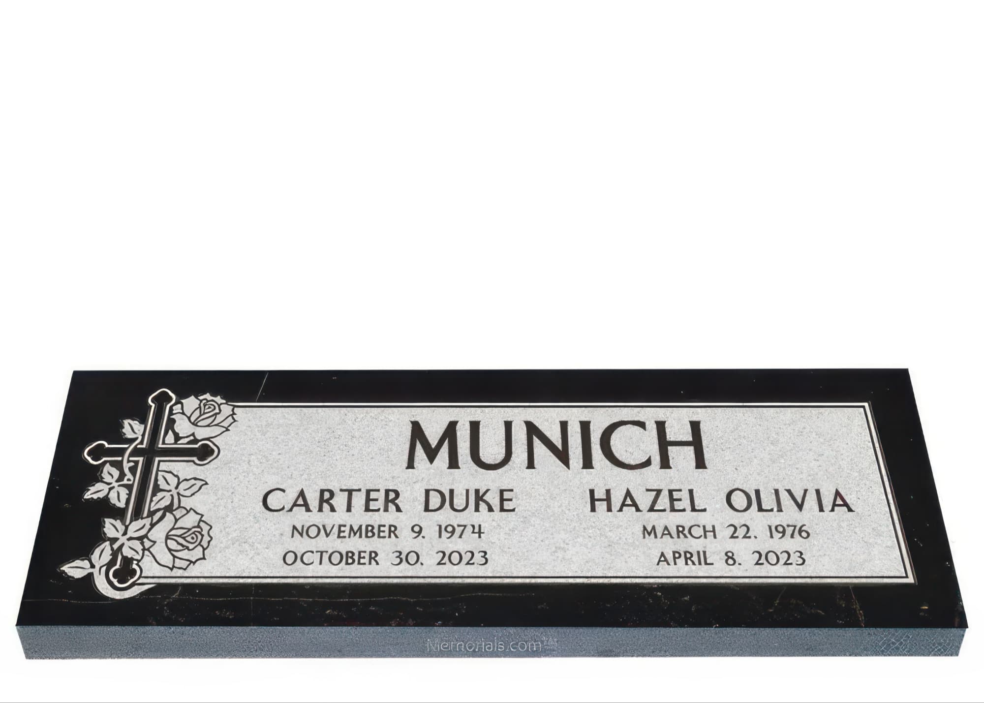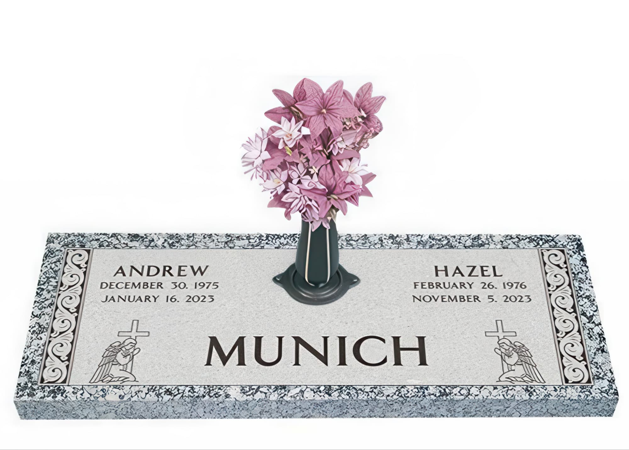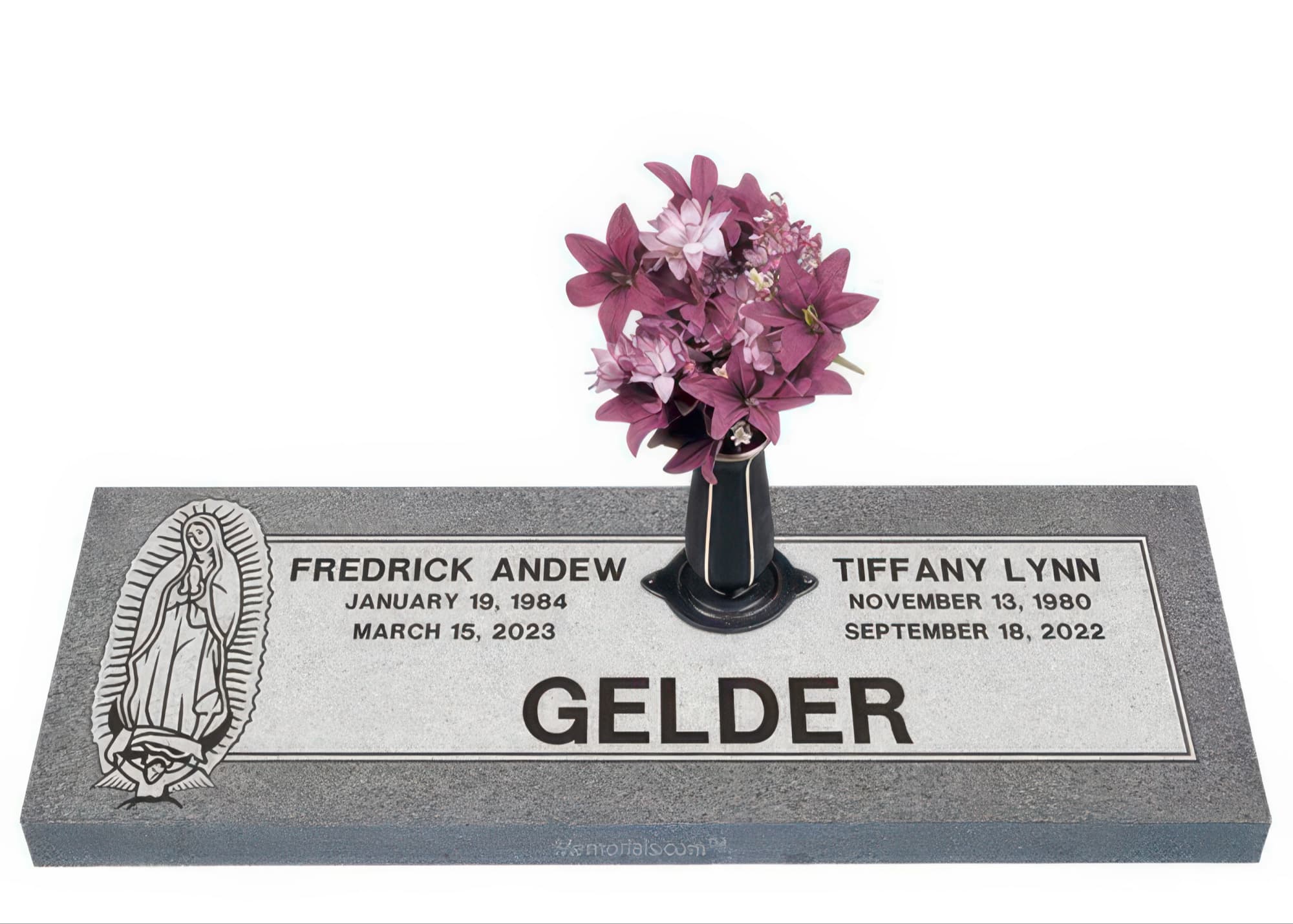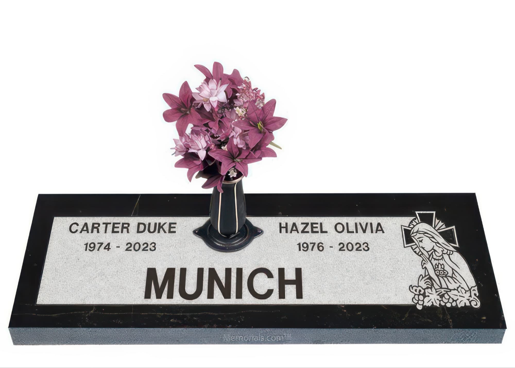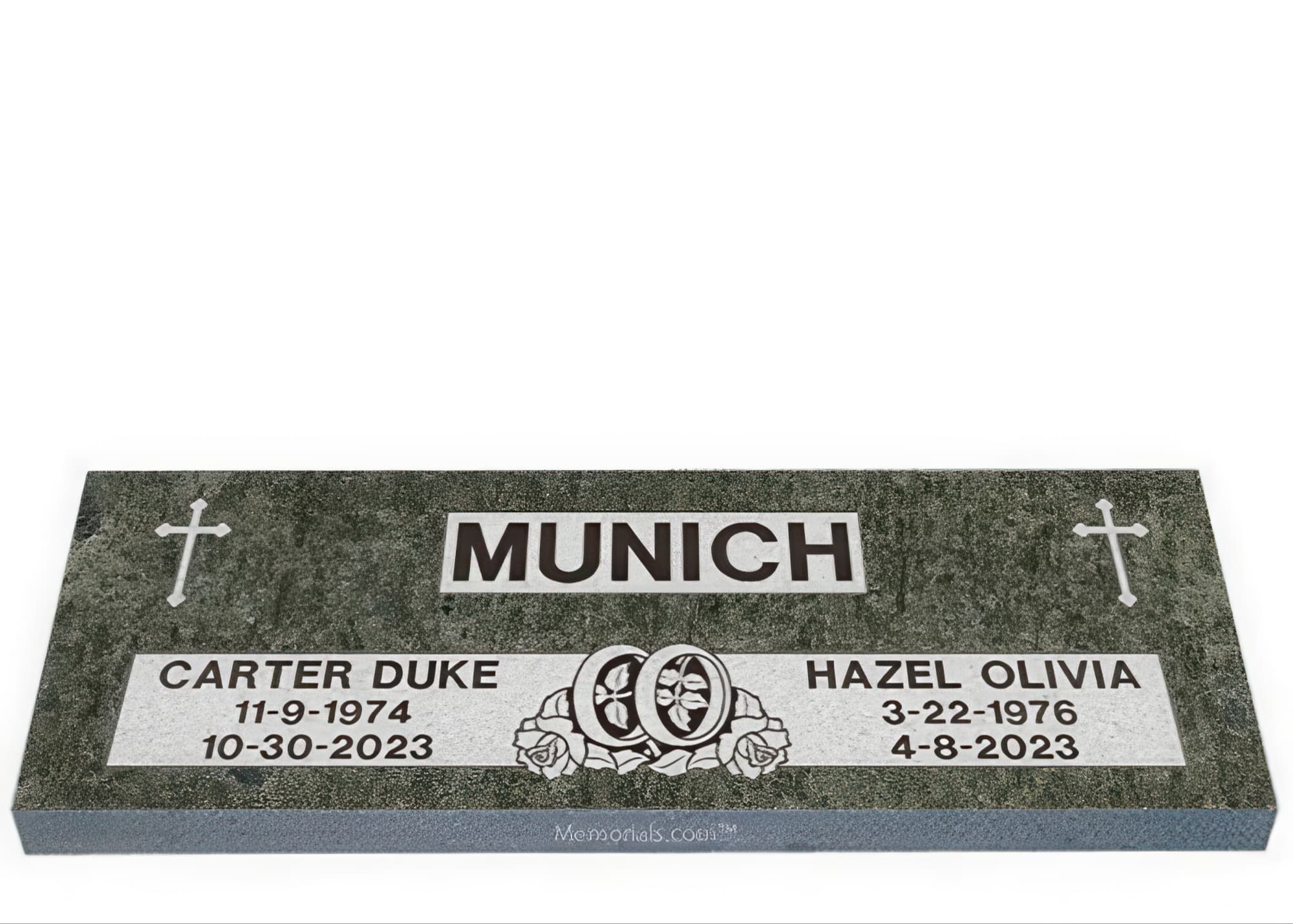 Memorials.com offers a wide selection of double headstones for husband and wife, crafted in natural granite and shipped directly to your cemetery. Our companion headstones for married couples feature custom engravings, emblems, and a choice of eight granite colors. Whether you need flat grave markers for couples or unique husband and wife headstones with themed designs like deer, celtic crosses, or tree of life motifs, we verify every order with your cemetery before production begins. Free shipping on all orders.