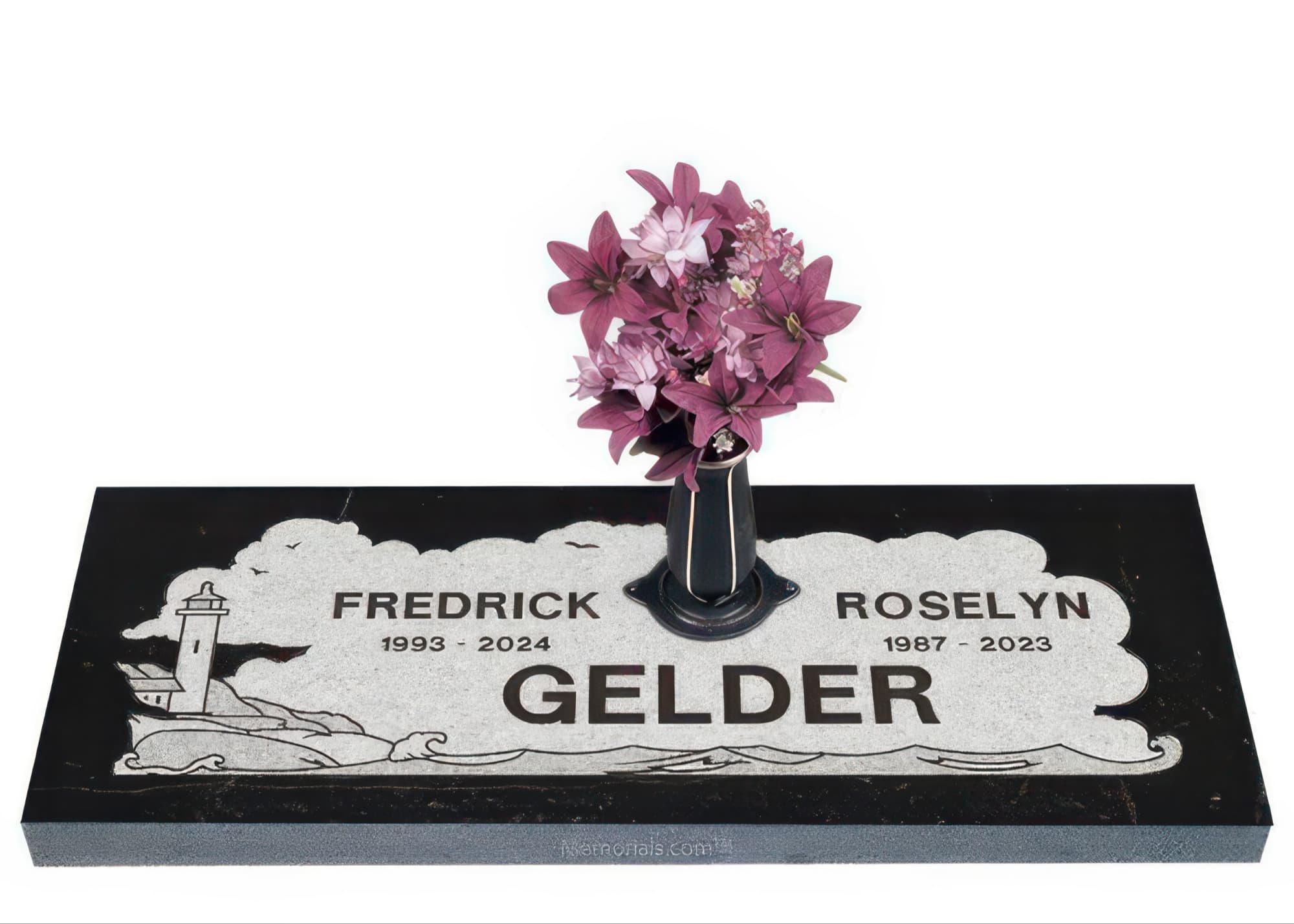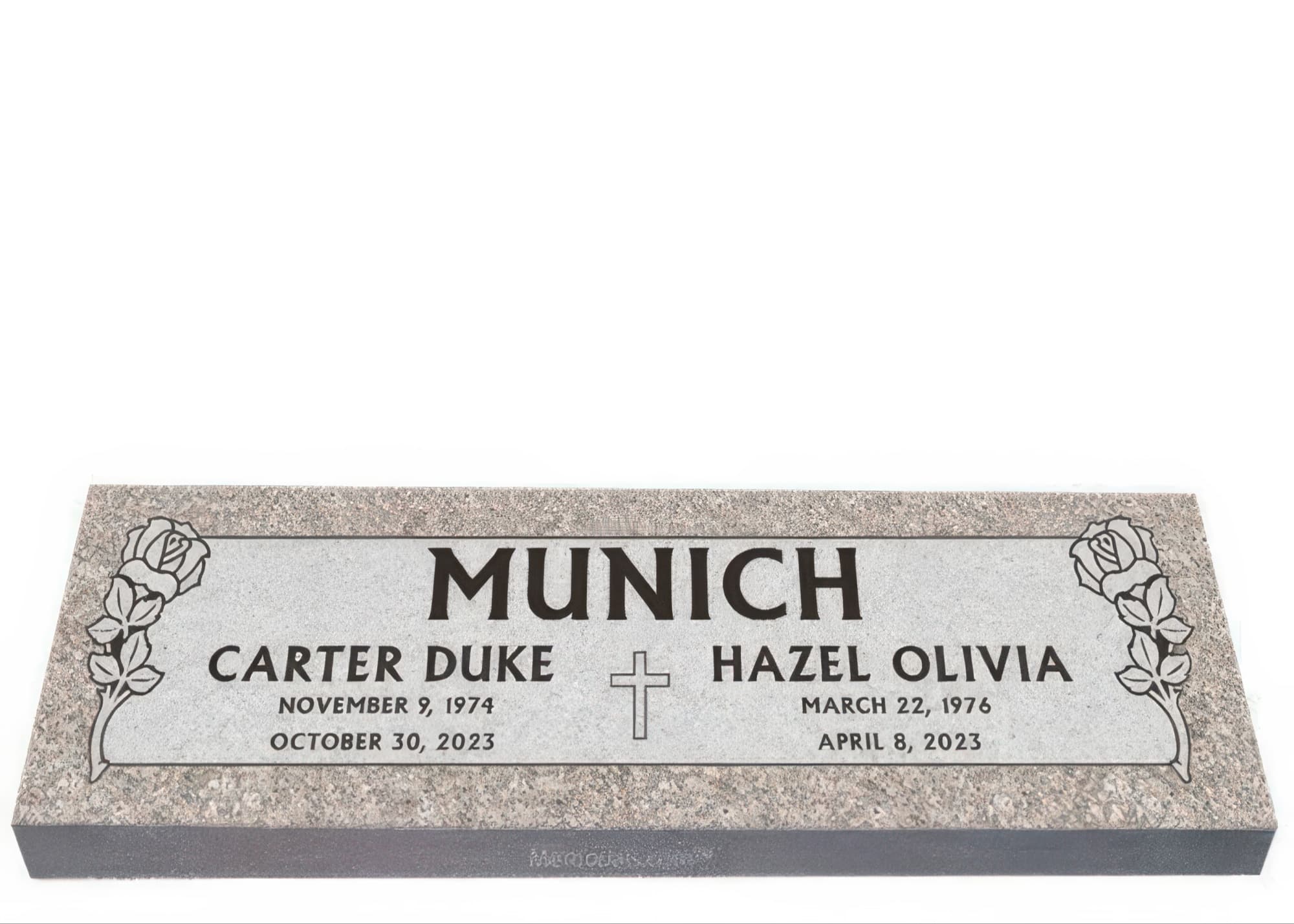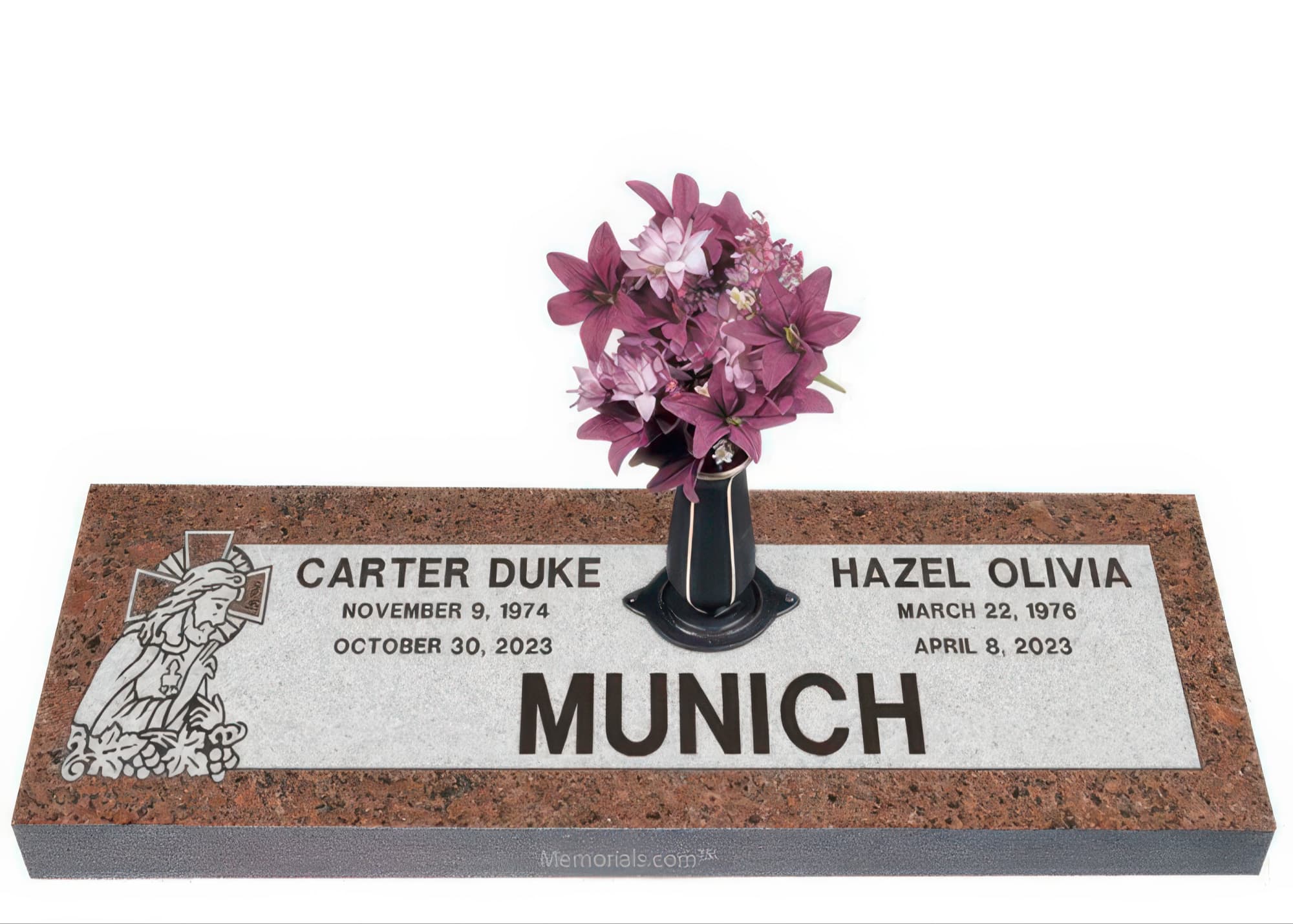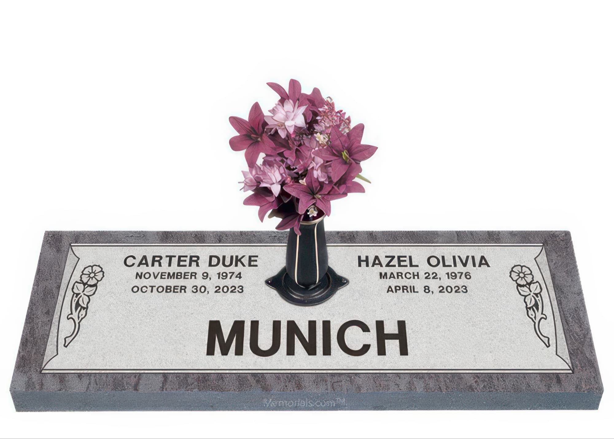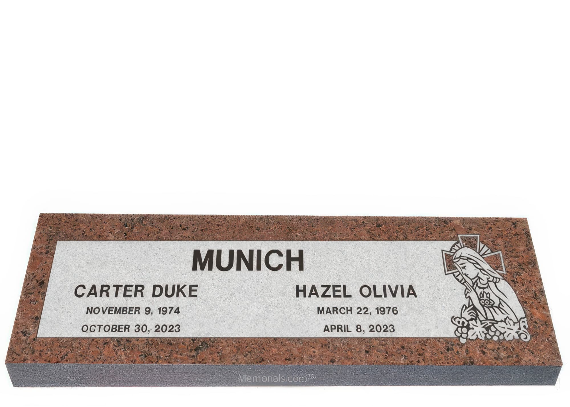 Memorials.com offers a wide selection of double headstones for husband and wife, crafted in natural granite and shipped directly to your cemetery. Our companion headstones for married couples feature custom engravings, emblems, and a choice of eight granite colors. Whether you need flat grave markers for couples or unique husband and wife headstones with themed designs like deer, celtic crosses, or tree of life motifs, we verify every order with your cemetery before production begins. Free shipping on all orders.