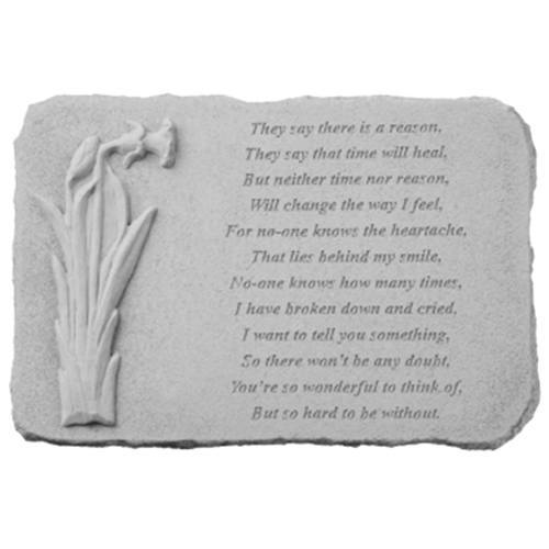 The There Is A Reason Memorial Stone is made of cast stone and is weatherproof. This product is made for outdoor or indoor use. A wonderful memorial for your lost love.