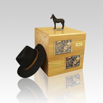 The Black Standing Full Size Horse Cremation Urn in small is constructed from solid red oak wood. The realistically detailed figurine attached to the top of this horse urn will help keep the precious memories of your faithful friend alive for generations. To personalize the urn, two photo frames are include which arrive unattached allowing you to arrange them suitably on your horse urn.