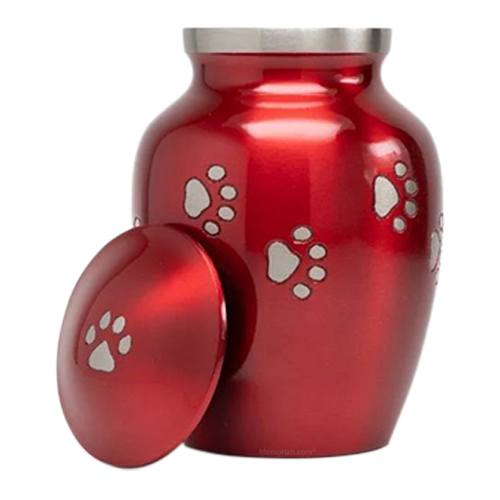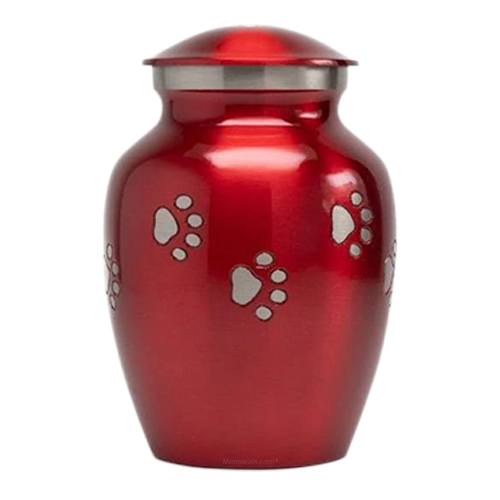 The Clifford Red Small Metal Pet Urn is made from brass. Tiny paw prints adorn the top of the pet urn. The sleek and yet classic design makes this urn a prefect resting place for your loved pet.
