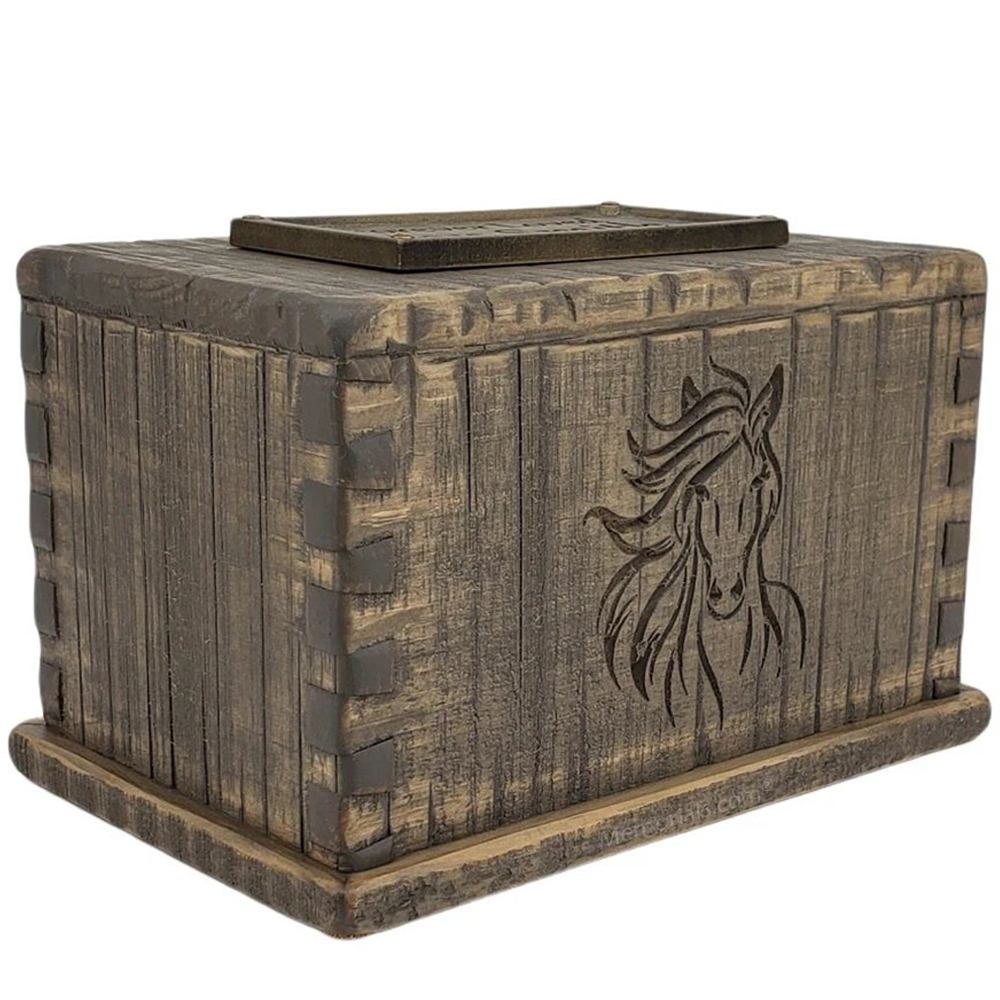 The Mustang Horse Cremation Urn is made from pine, and are built and finished to the highest degree of quality and craftmanship. This finely crafted pieces is a breathtaking unique one of a kind piece. There is no paint on this urn. This will be a beautiful family heirloom for generations to come. It is master crafted in Canada by some of the most talented woodworkers in the nation.