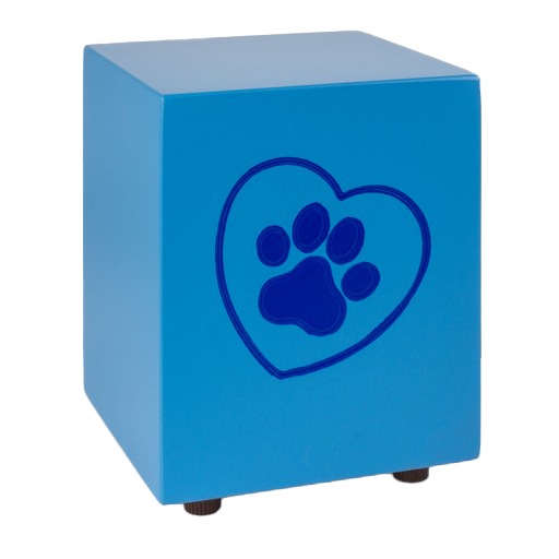 The Mystic Paw Print Cube Cremation Urn is made in Italy by highly skilled artisans. This gorgeous cremation urn made of wood and features a rich color. The face of the urn is impressed with a whimsical paw print design. The bright color combined with the simple design will offer a modern and heartwarming remembrance of a truly special friend.
