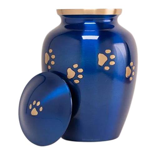 The Ocean Blue Large Metal Pet Urn is made from brass. Tiny paw prints adorn the top of the pet urn. The sleek and yet classic design makes this urn a prefect resting place for your loved pet.