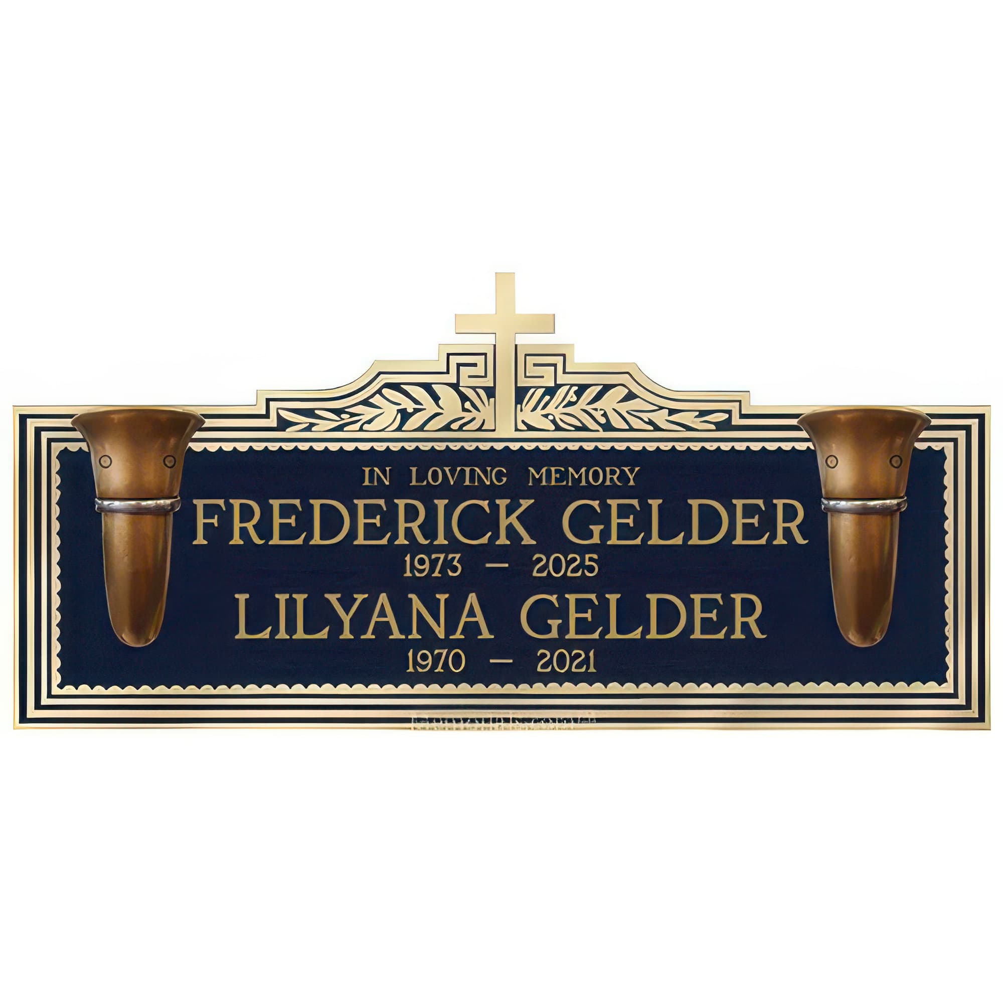 Devotional Memorial Crypt Plaque for Two With Vases