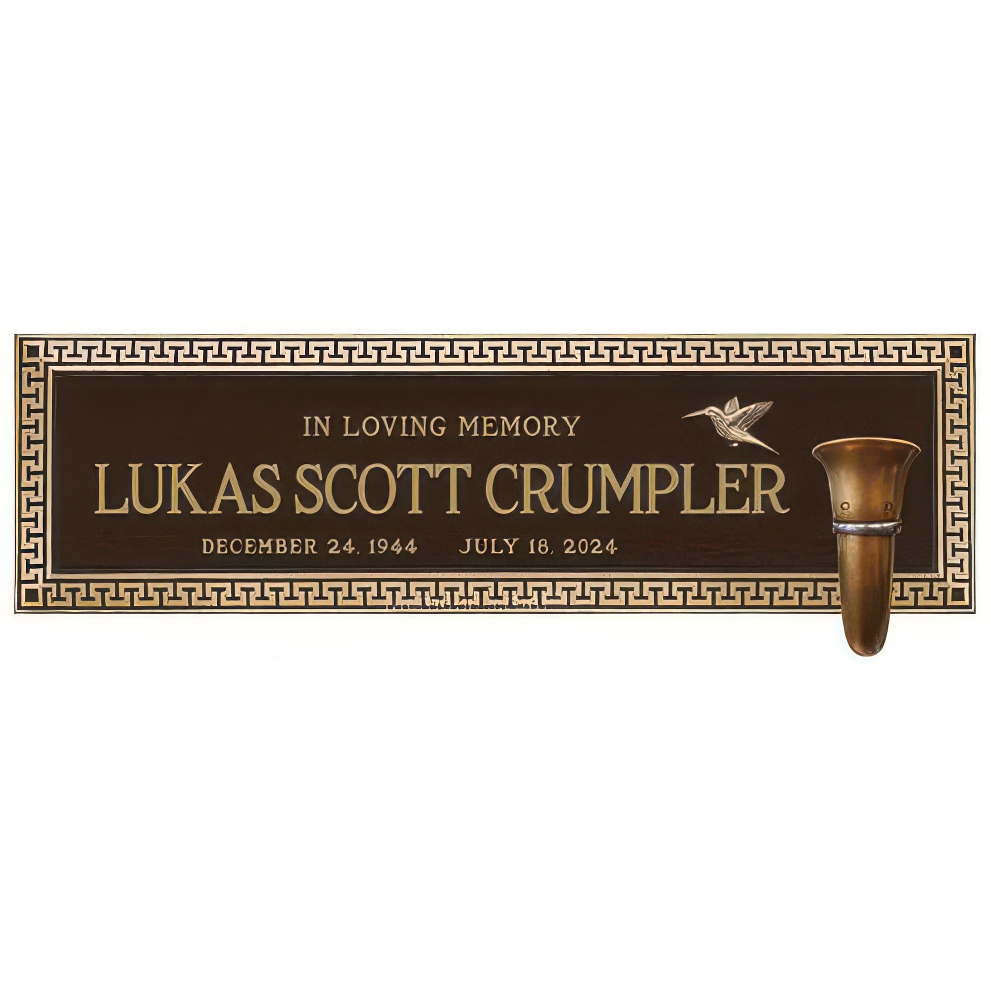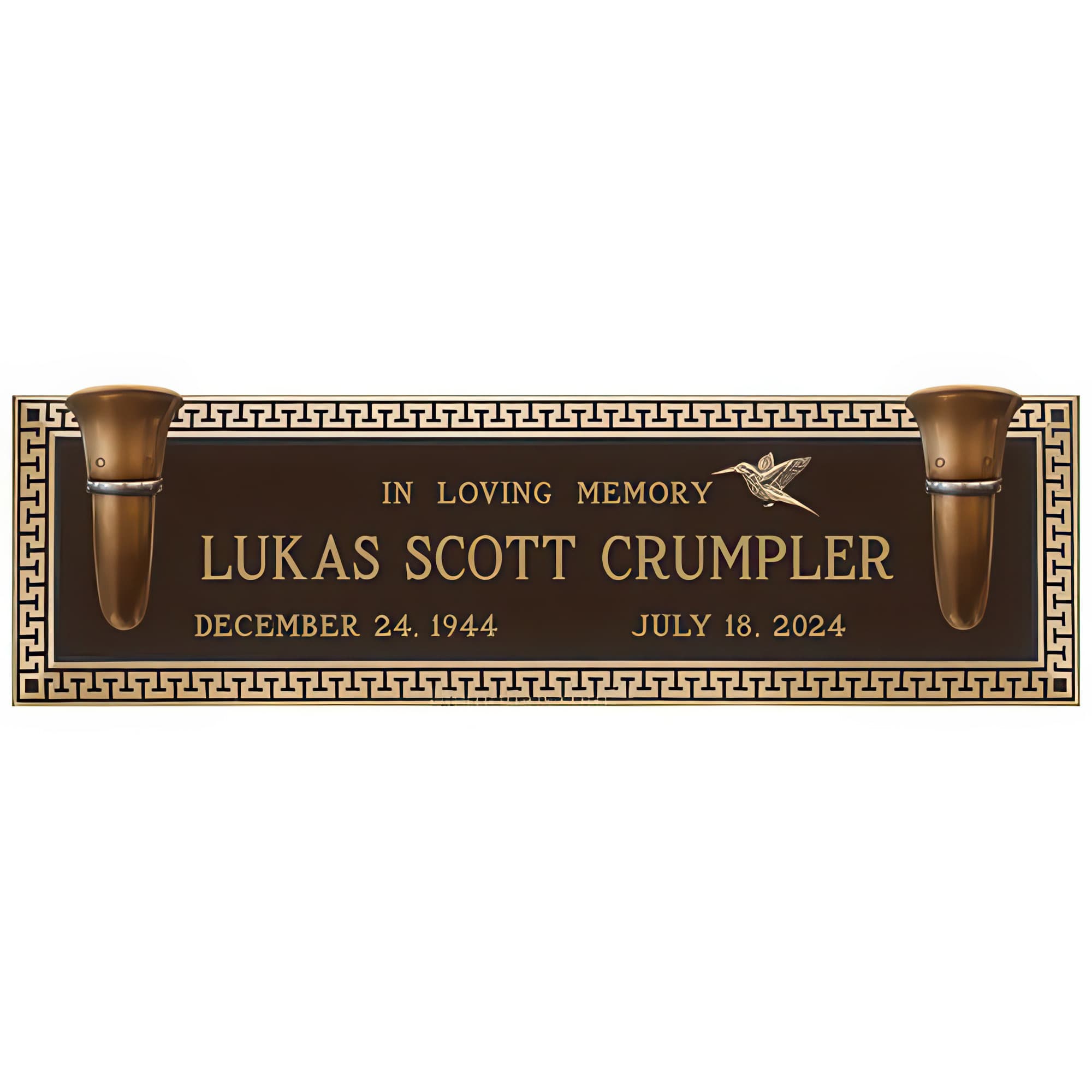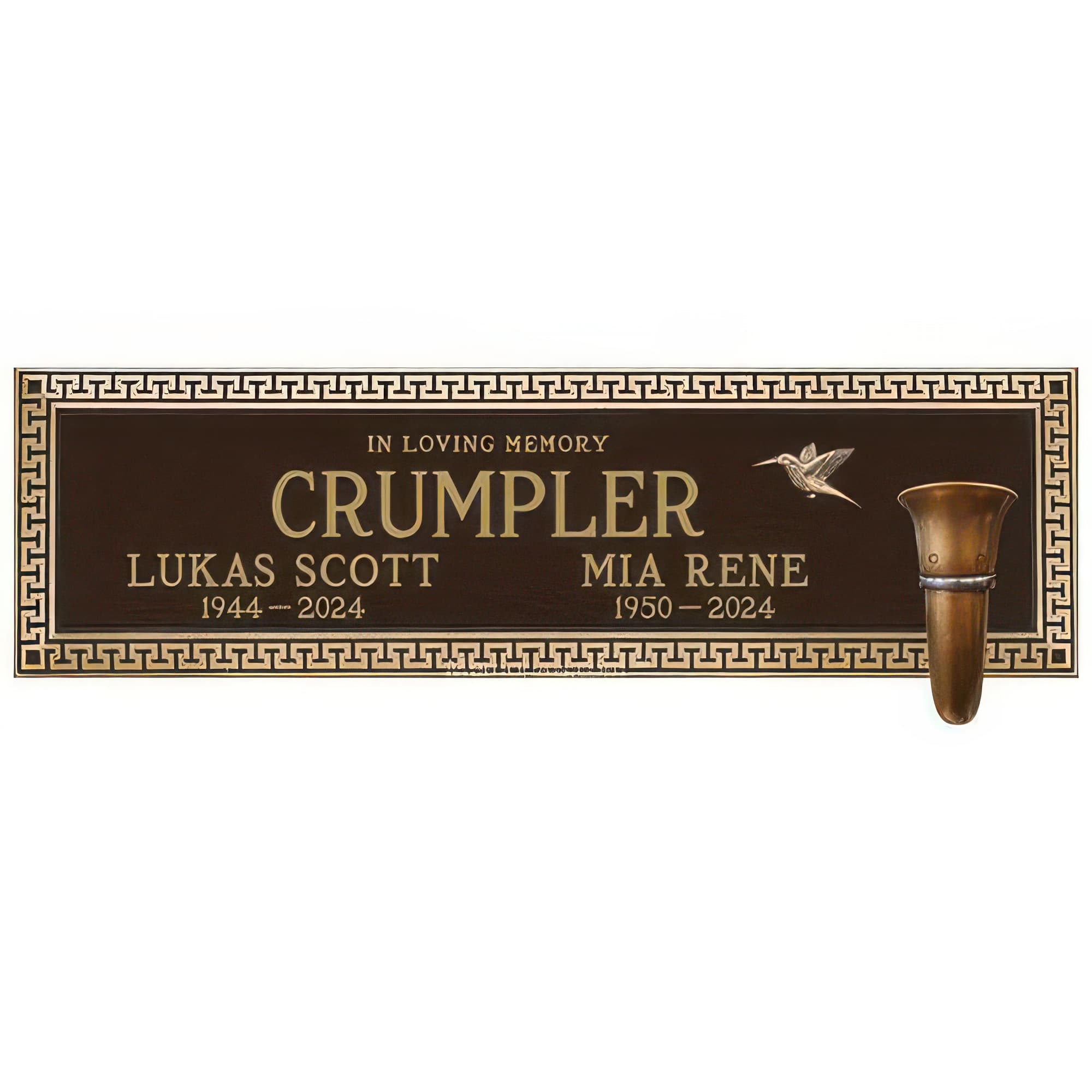 Olympus Cemetery Crypt Plaque for Two With Vase