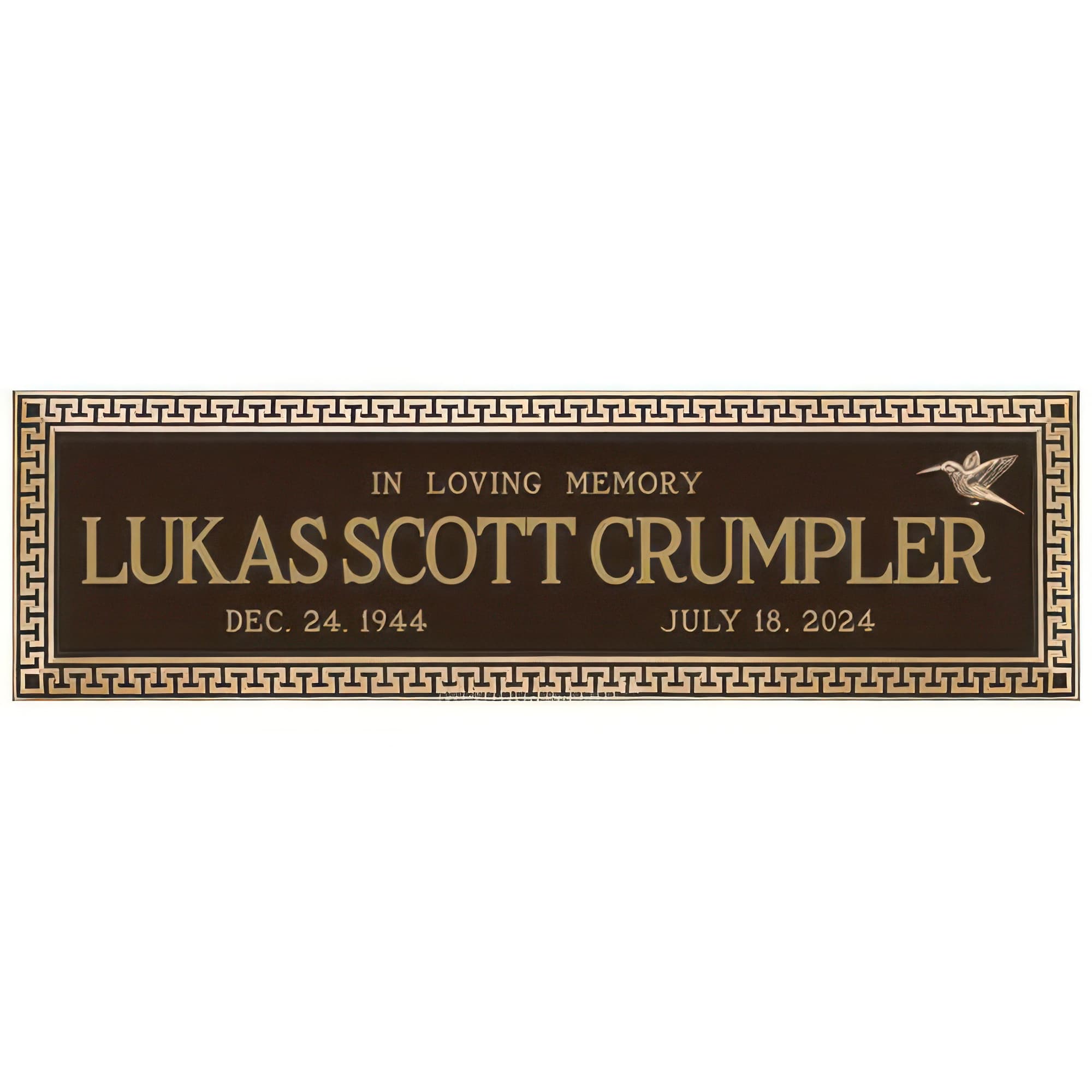 Olympus Cemetery Crypt Plaque for Two