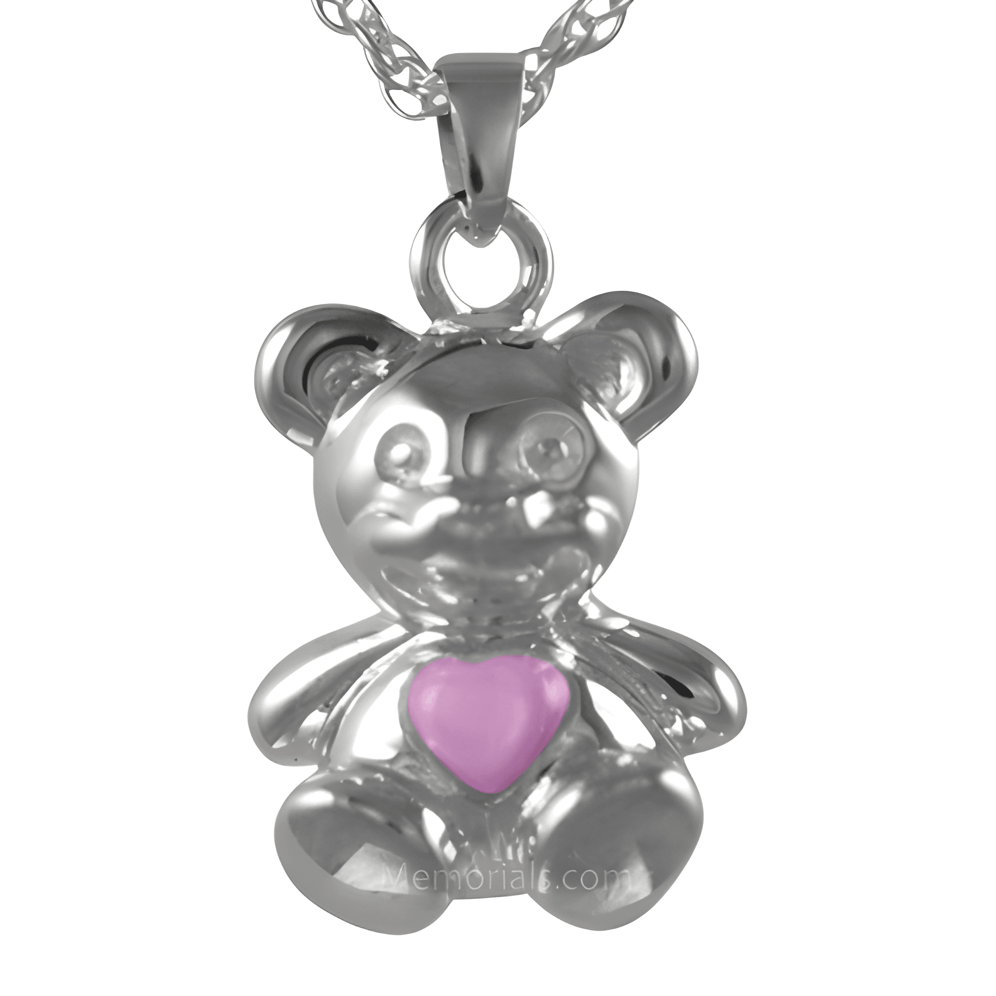 Teddy Bear Pink Silver Cremation Necklace