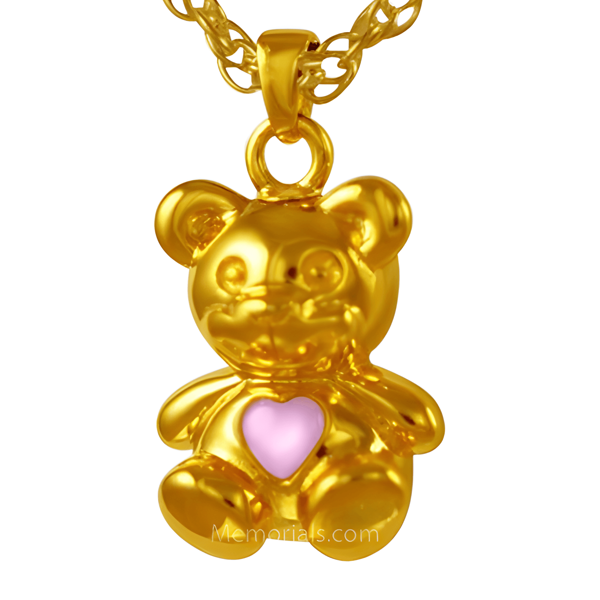 Teddy Bear Pink Yellow Gold Cremation Necklace