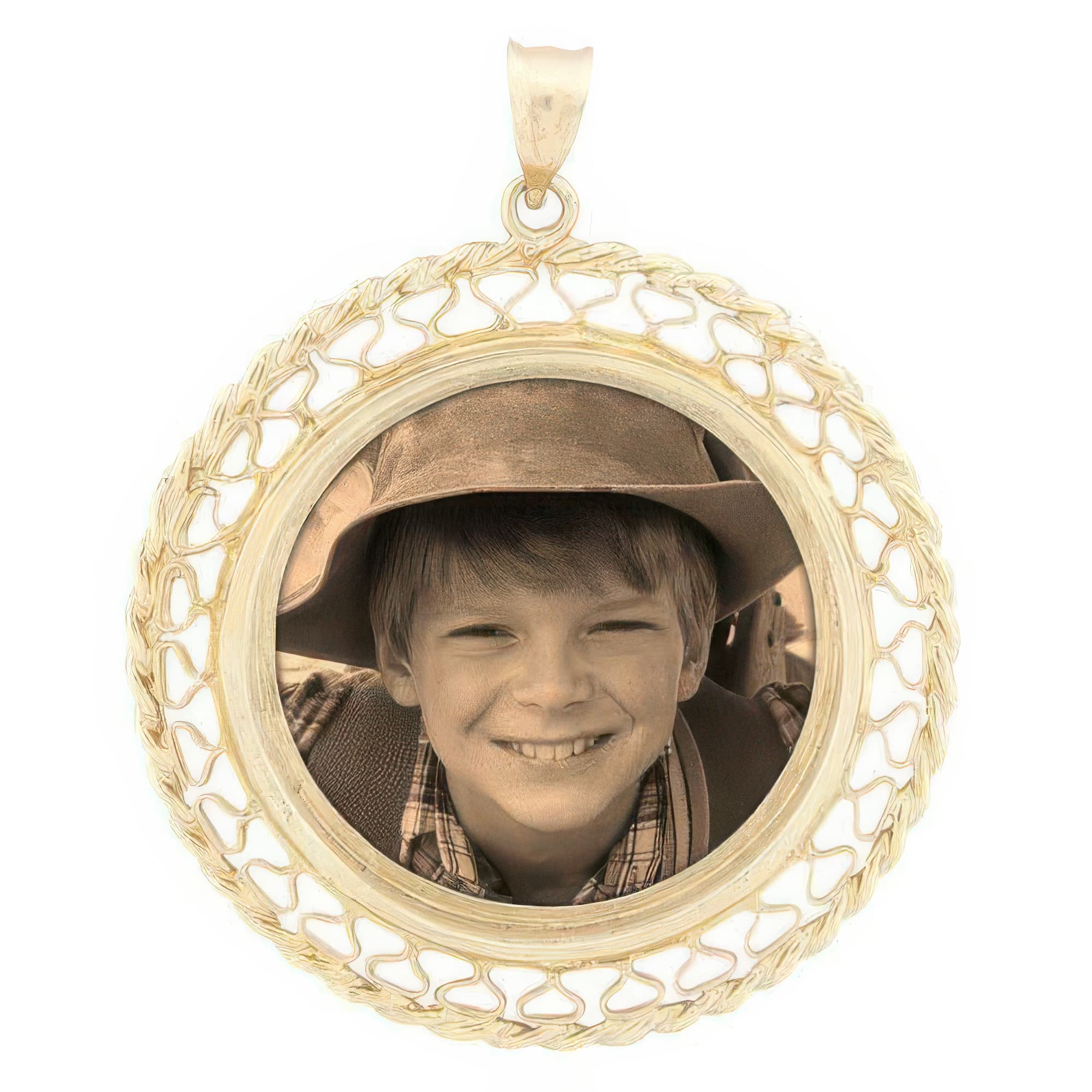 Lattice White Gold Photo Pendant