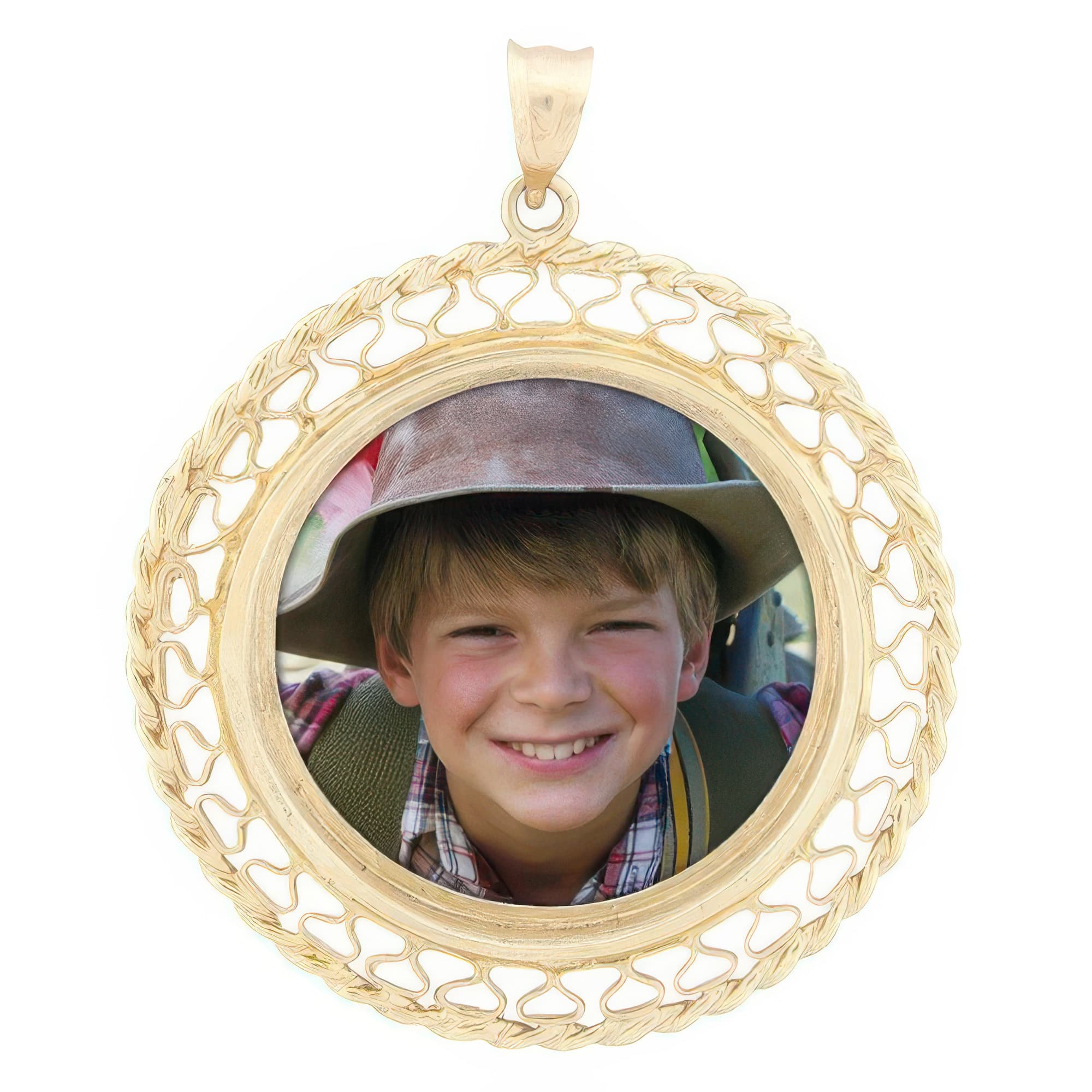 Lattice Yellow Gold Photo Pendant
