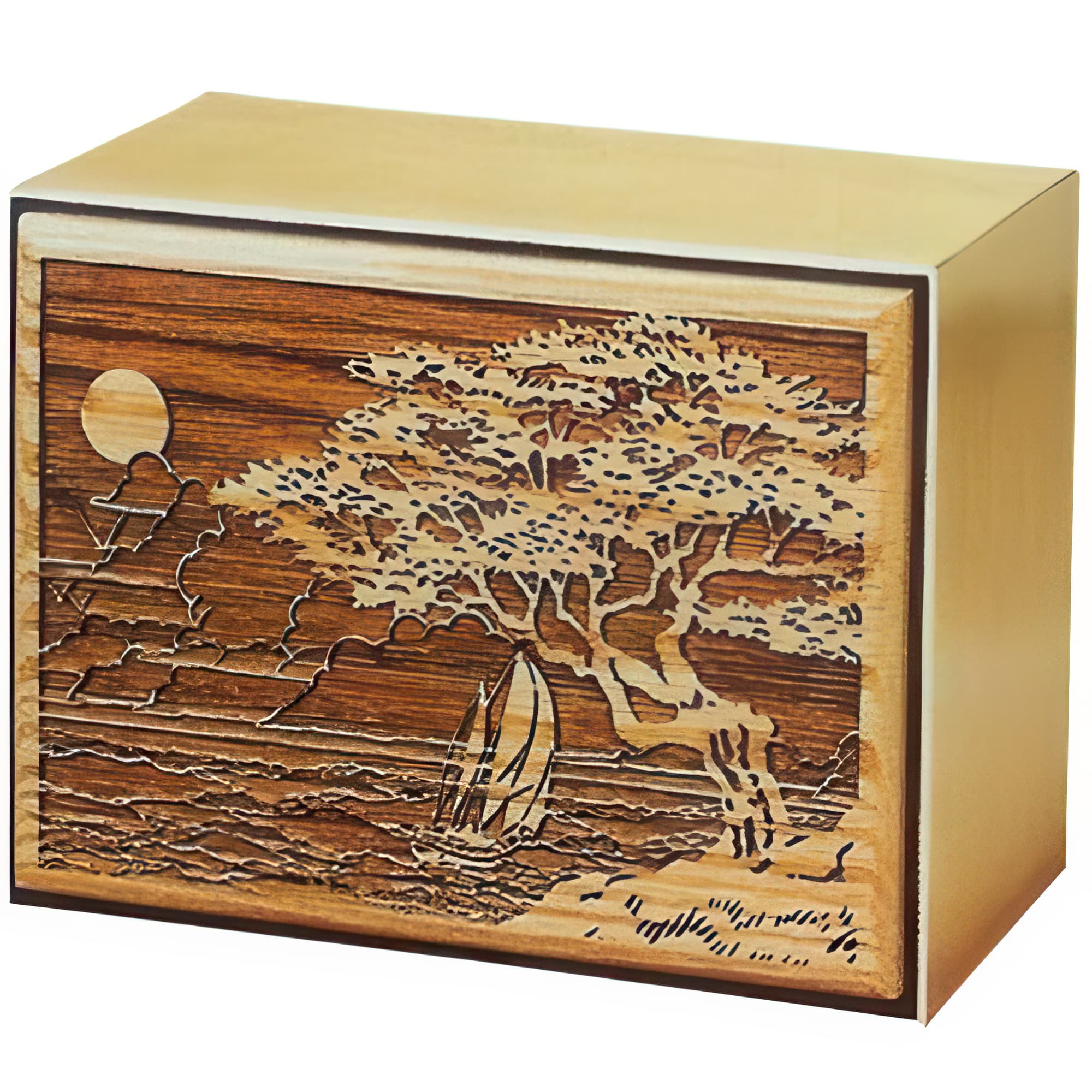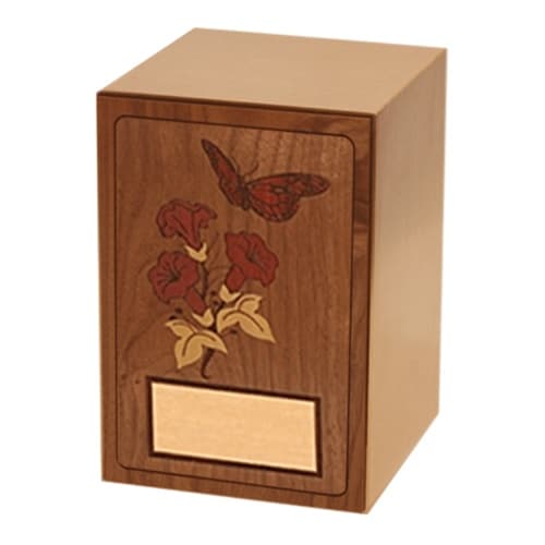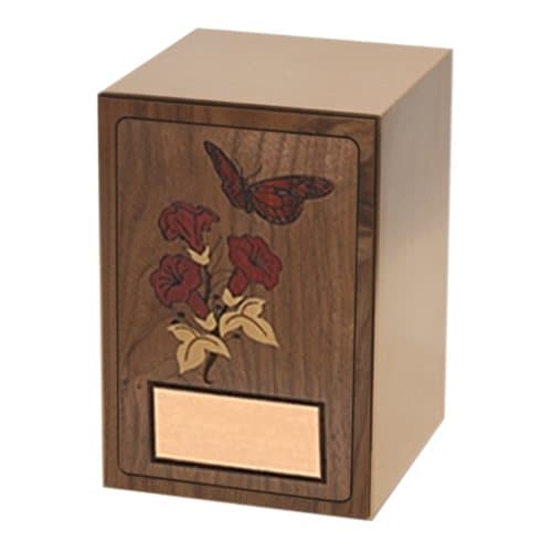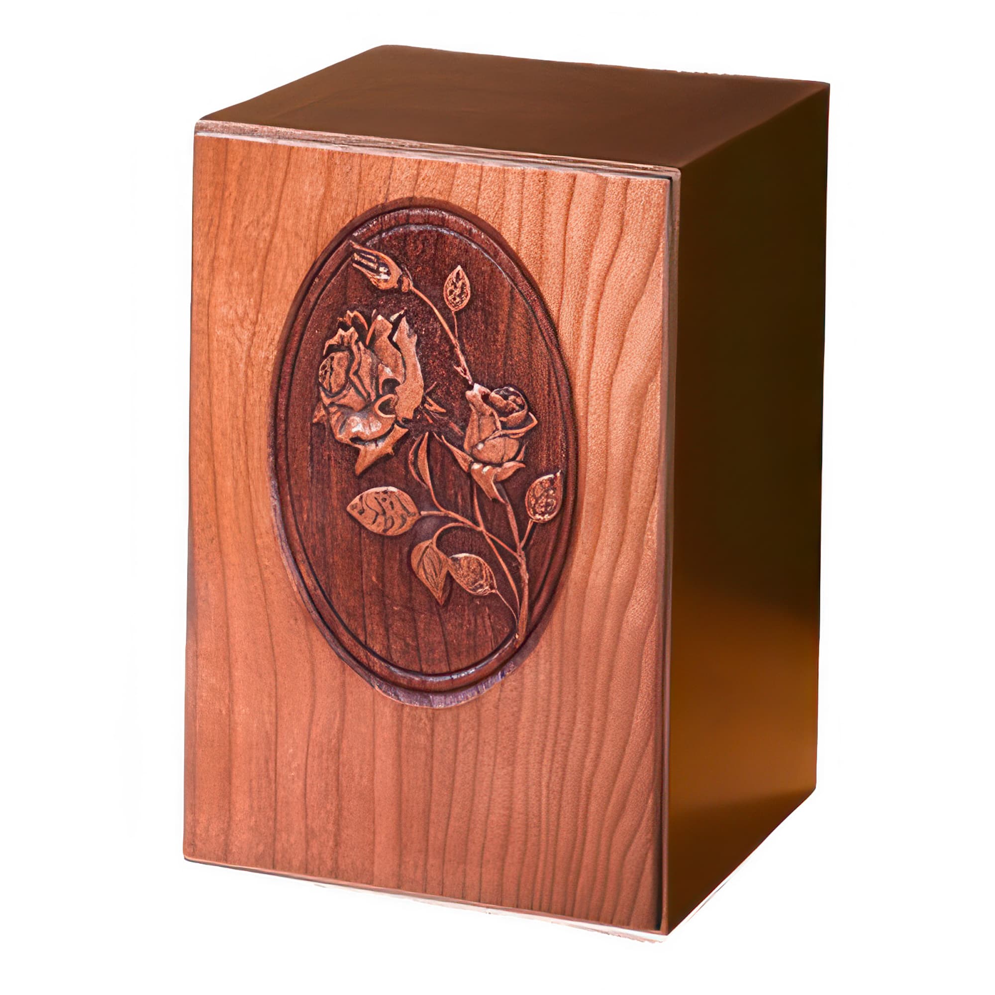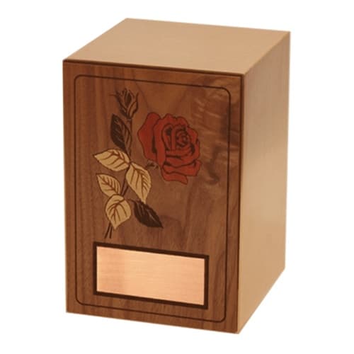 Carved Roses Wood Cremation Urn