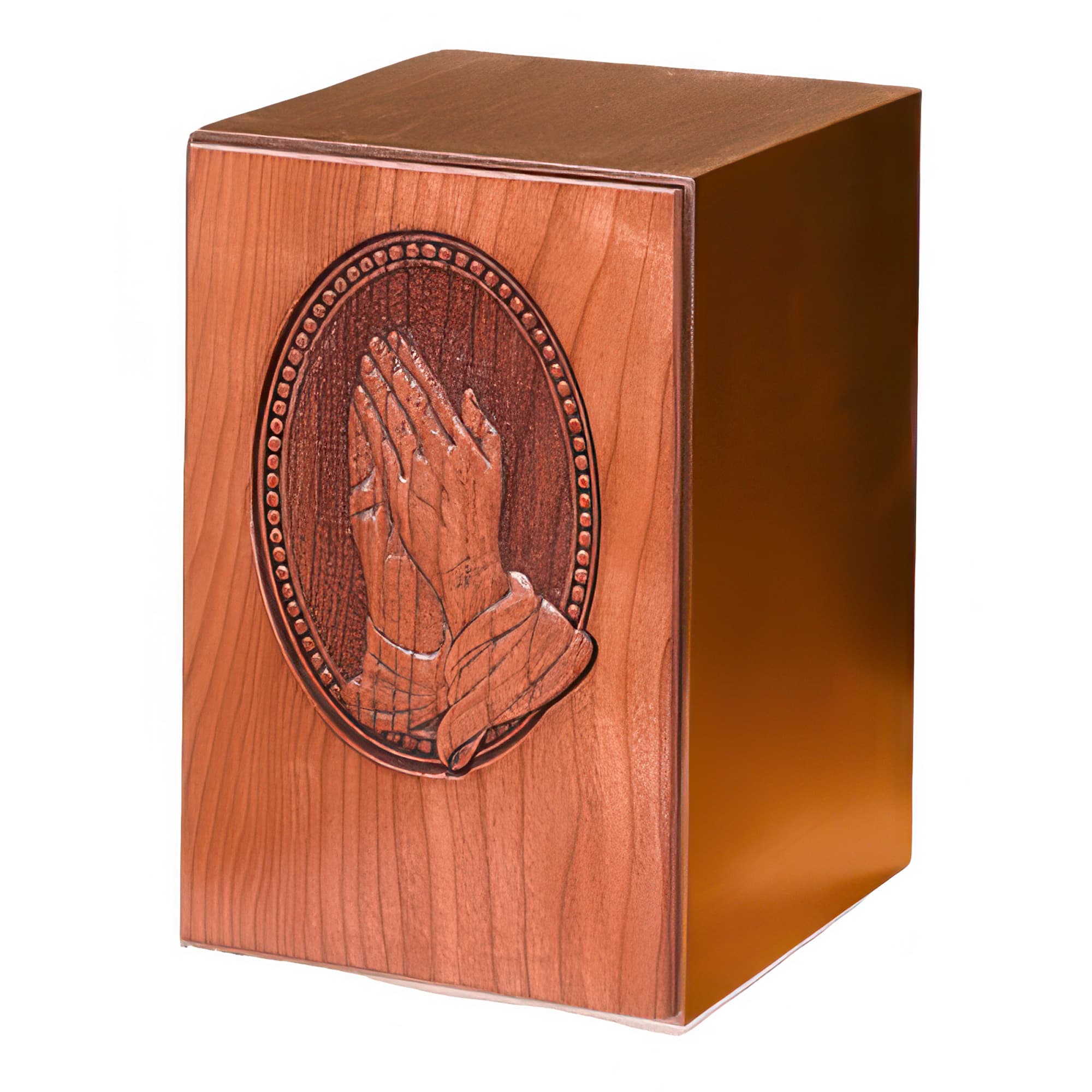 Carved Praying Hands Wood Cremation Urn