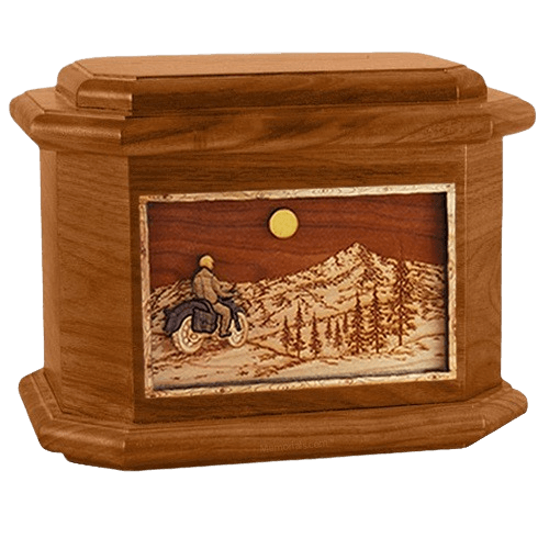 Motorcycle Mountains Oak Octagon Cremation Urn