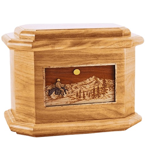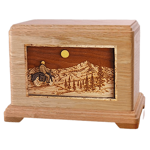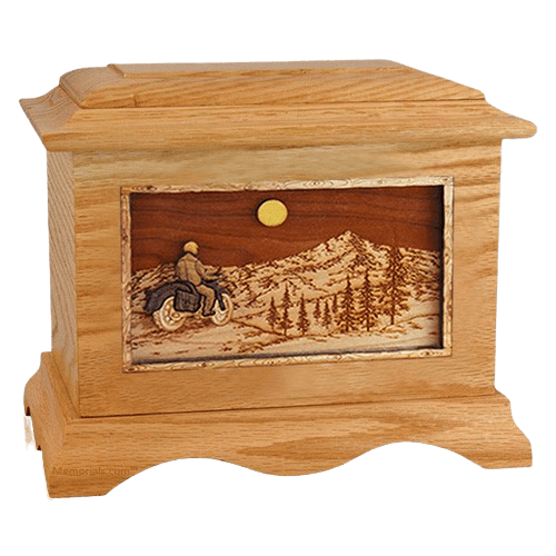 Motorcycle Mountains Oak Cremation Urn