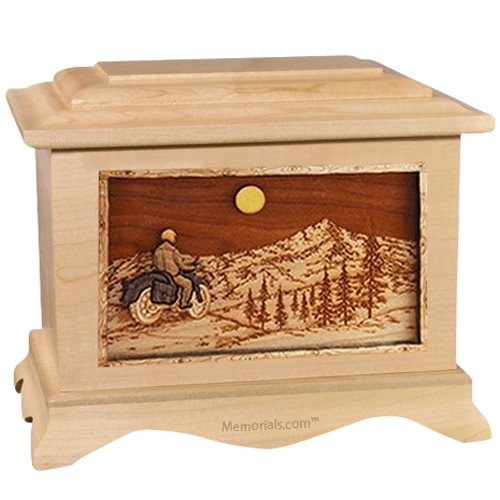 Motorcycle Mountains Maple Cremation Urn