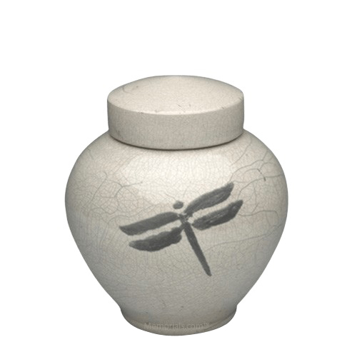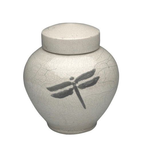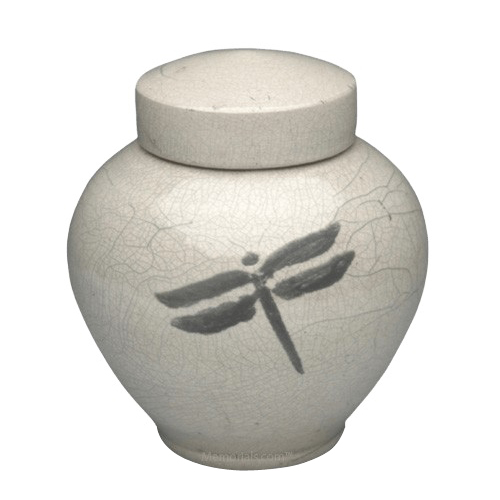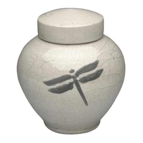 Dragonfly White Raku Small Cremation Urn