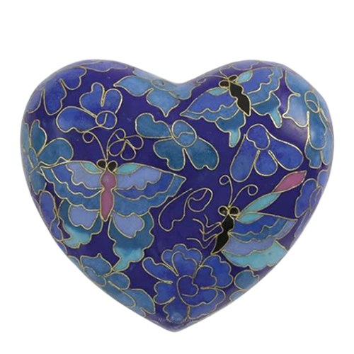Butterfly Blue Heart Cloissone Cremation Urn