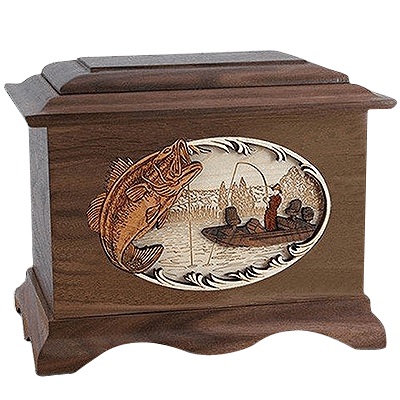 Boat Fishing Walnut Cremation Urn For Two