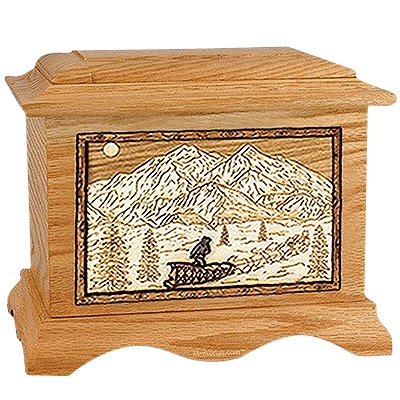 Dogsled Oak Cremation Urn for Two
