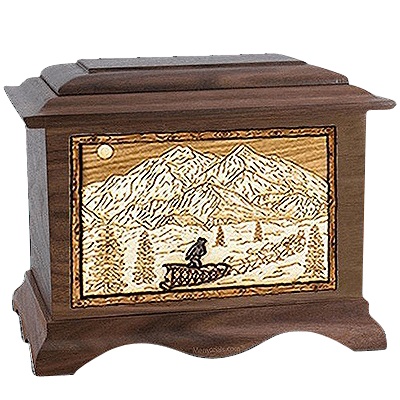 Dogsled Walnut Cremation Urn For Two