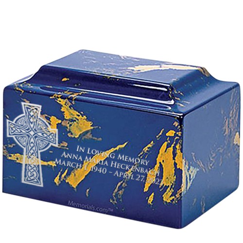 Celtic Cross Blue and Gold Marble Urn