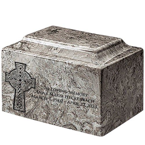 Celtic Cross Mist Grey Marble Urn
