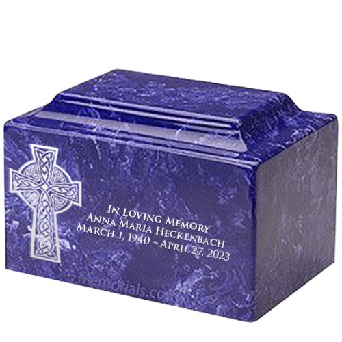 Celtic Cross Cobalt Marble Urn