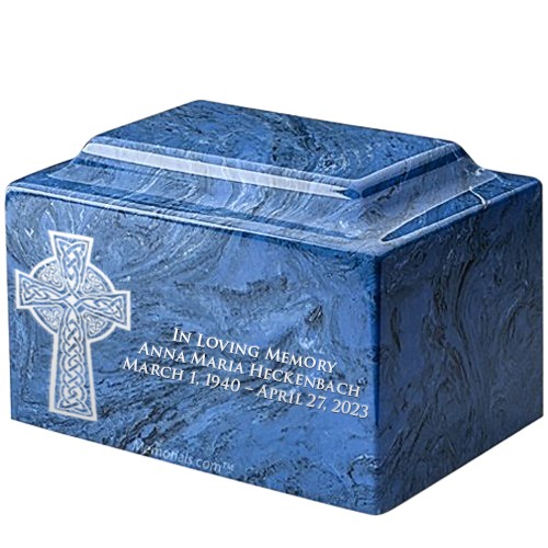 Celtic Cross Mystic Blue Marble Urn