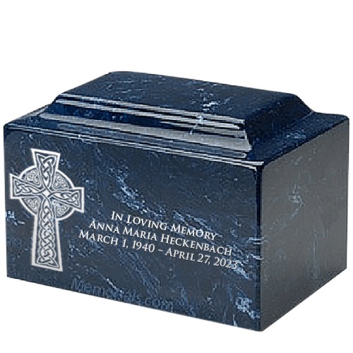 Celtic Cross Navy Marble Urn