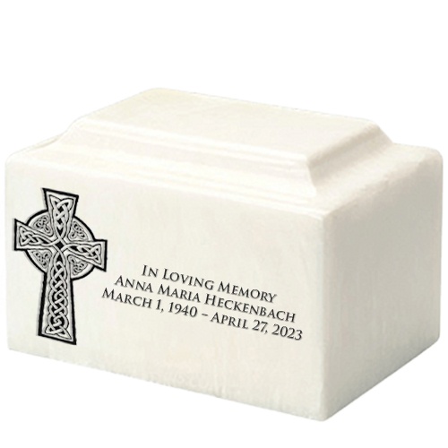 Celtic Cross White Marble Urn