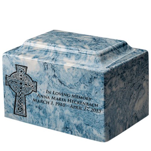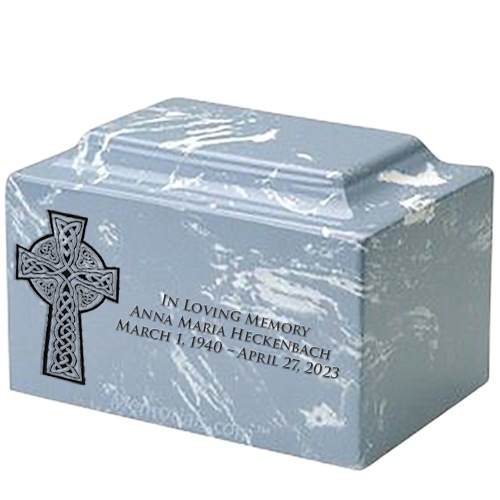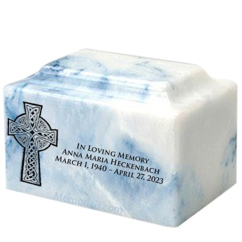 Celtic Cross Sky Blue Marble Urn