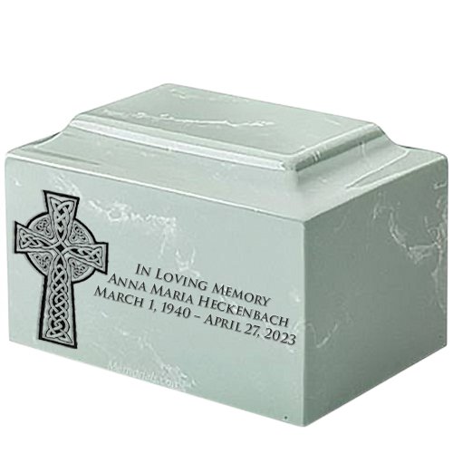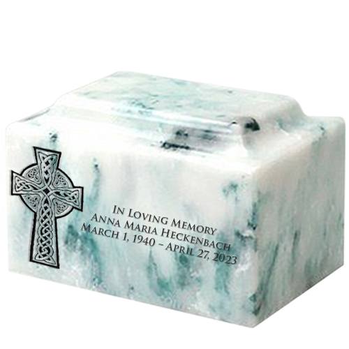 Celtic Cross Seafoam Green Marble Urn